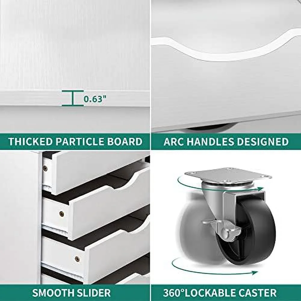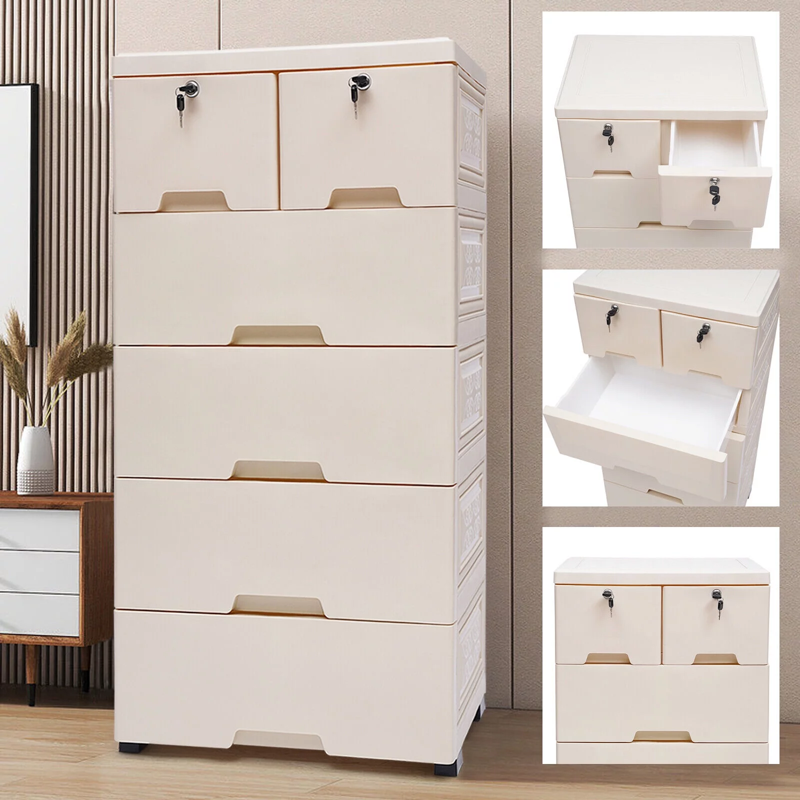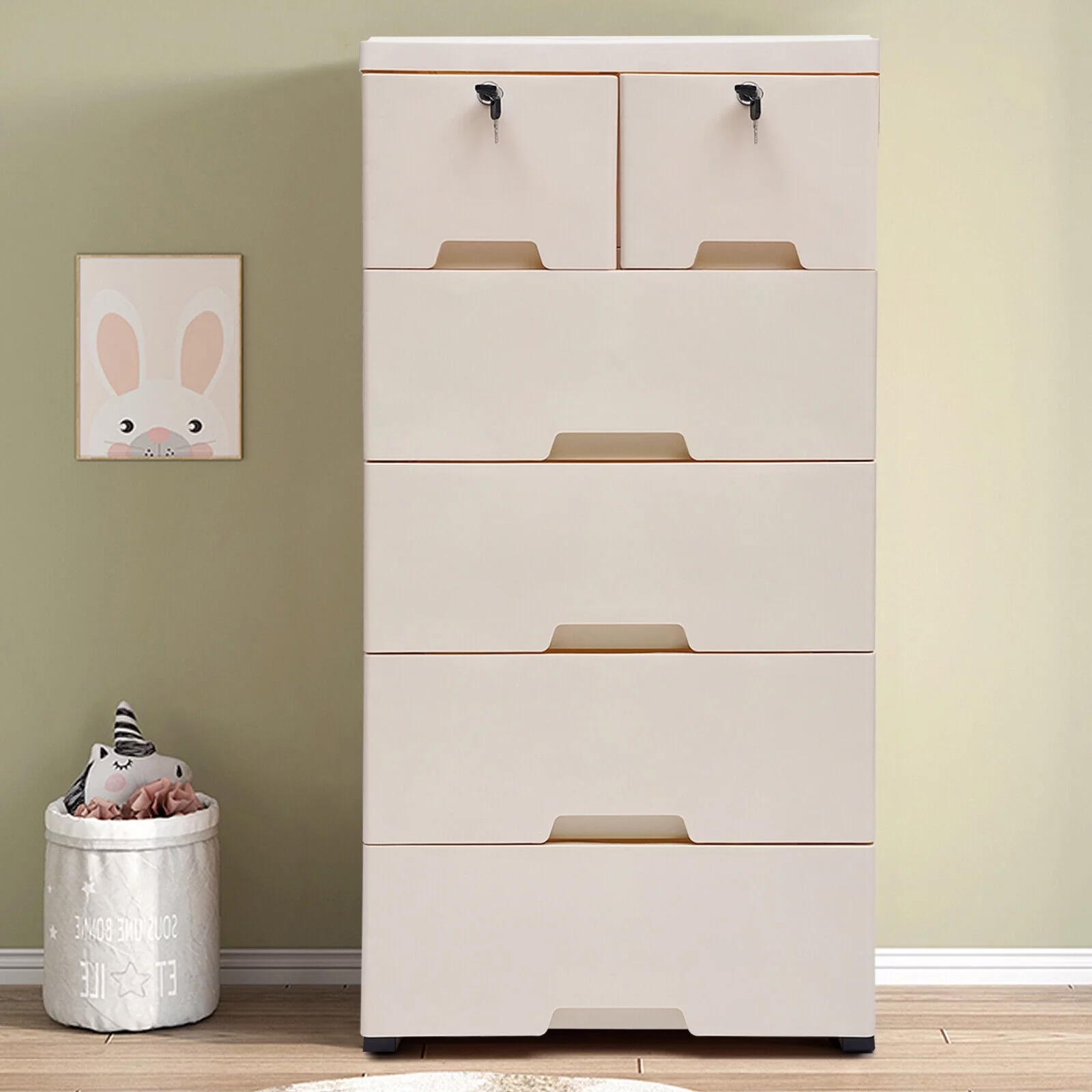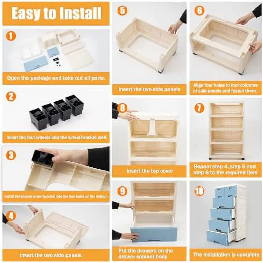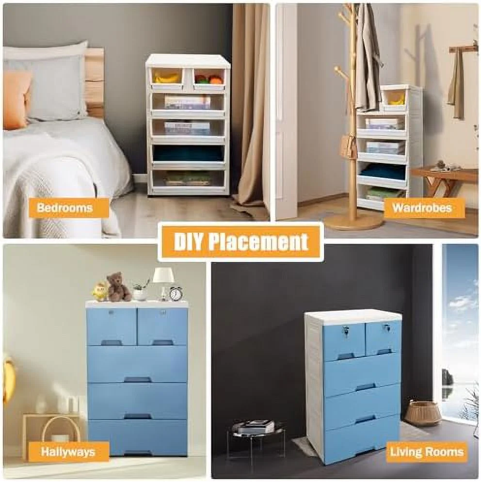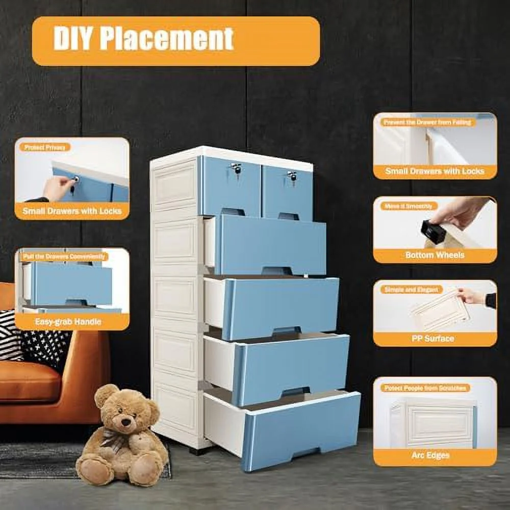 Wuzstar 6 Drawer Storage Cabinet Drawers Plastic Large-capacity Nightstand Chest Dresser W/Silent Rollers