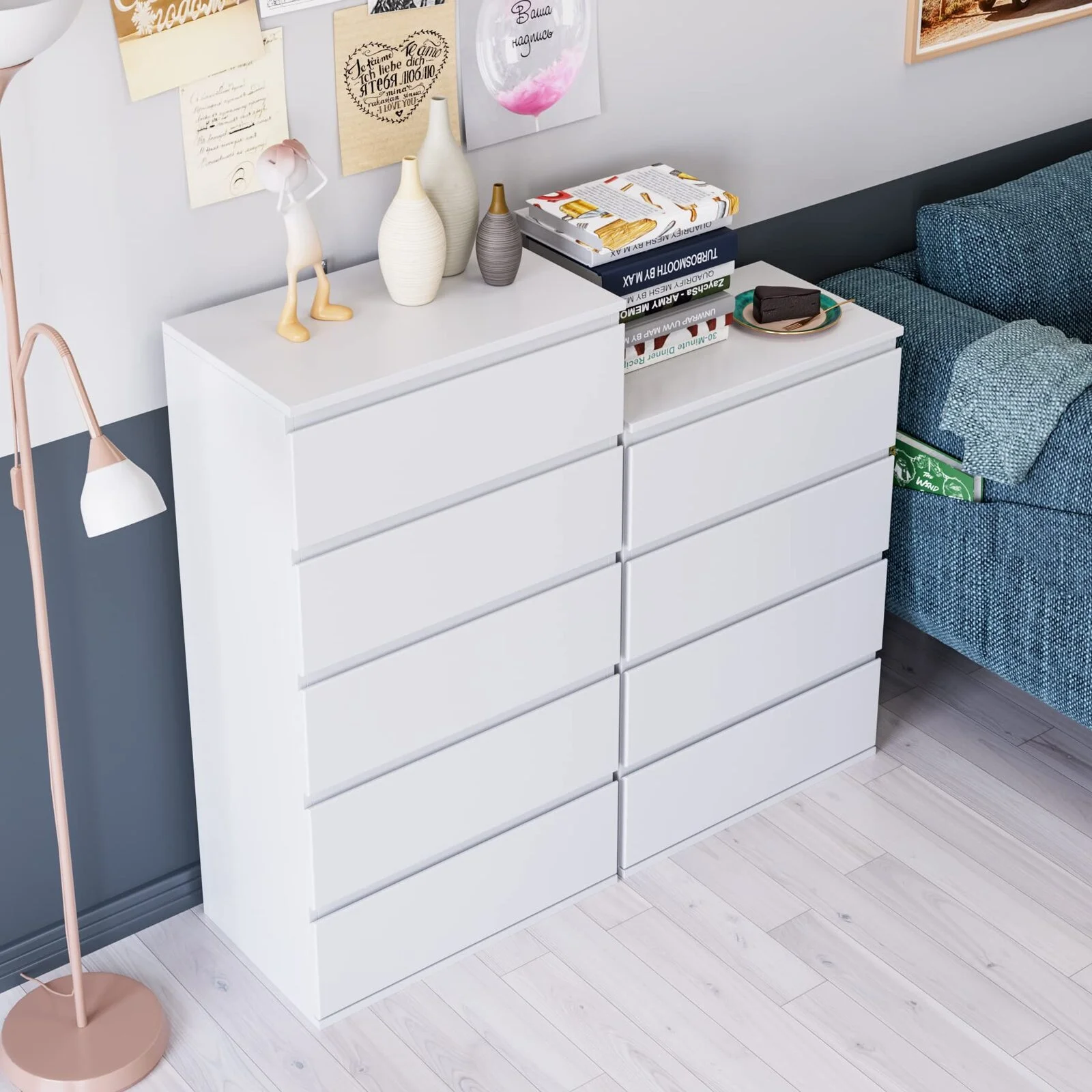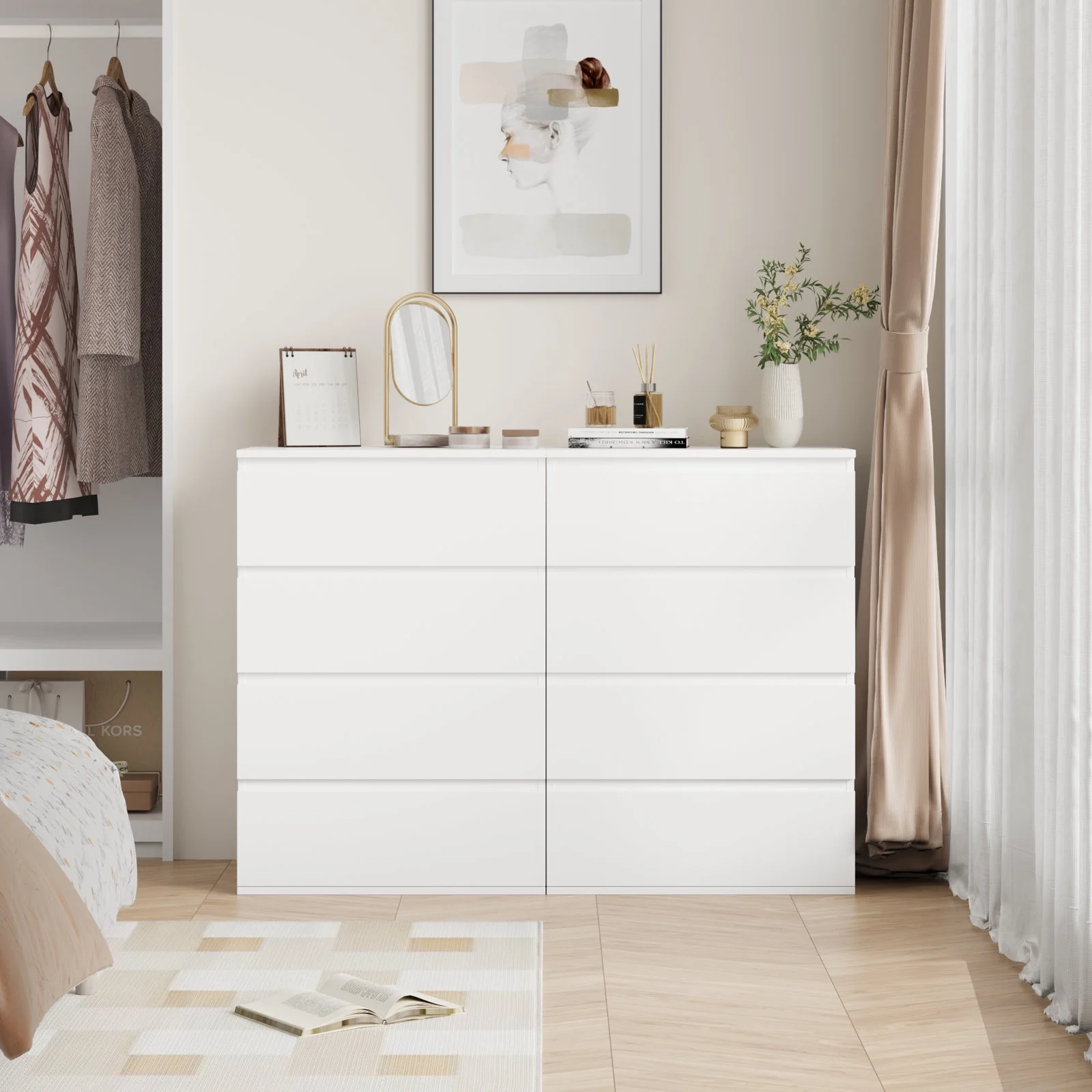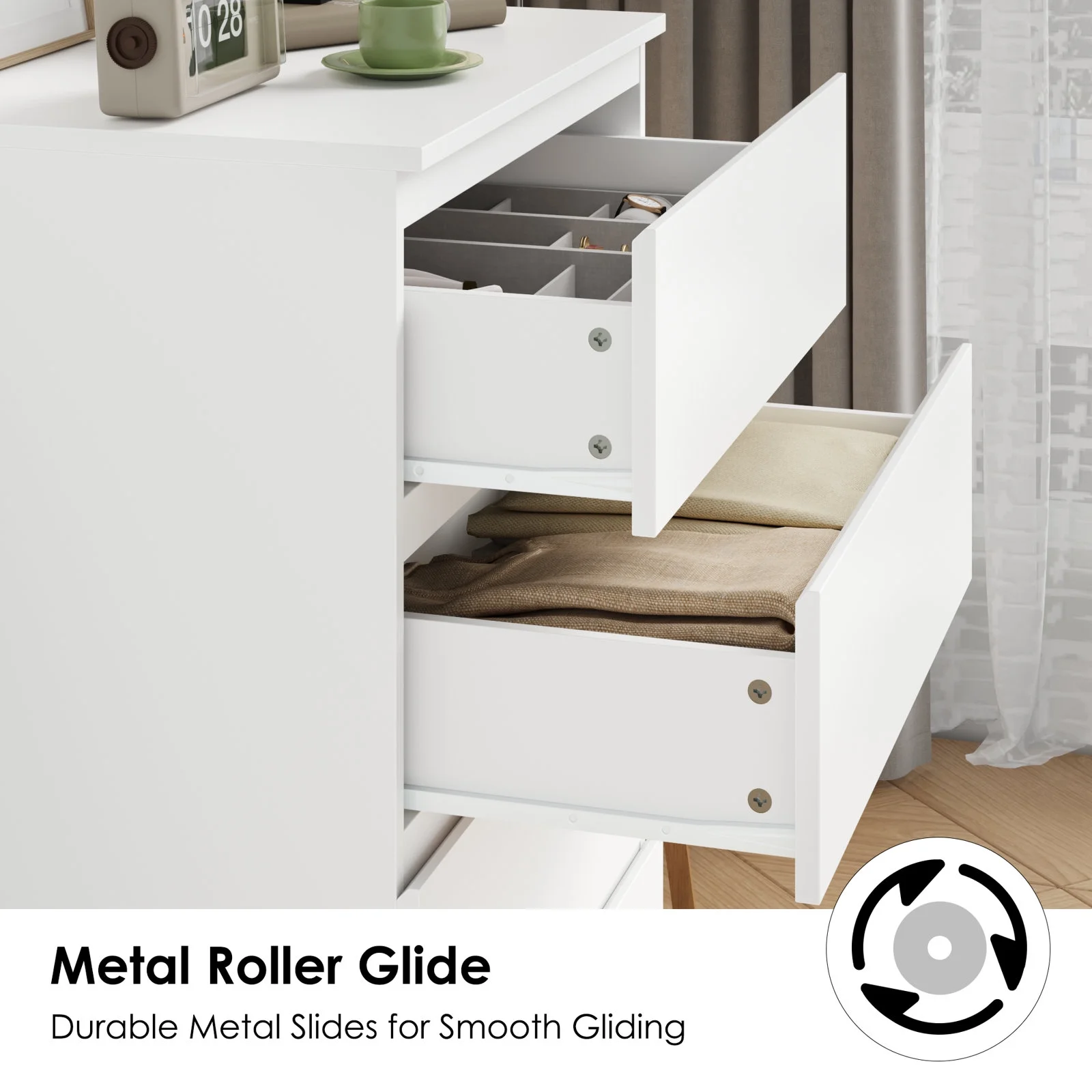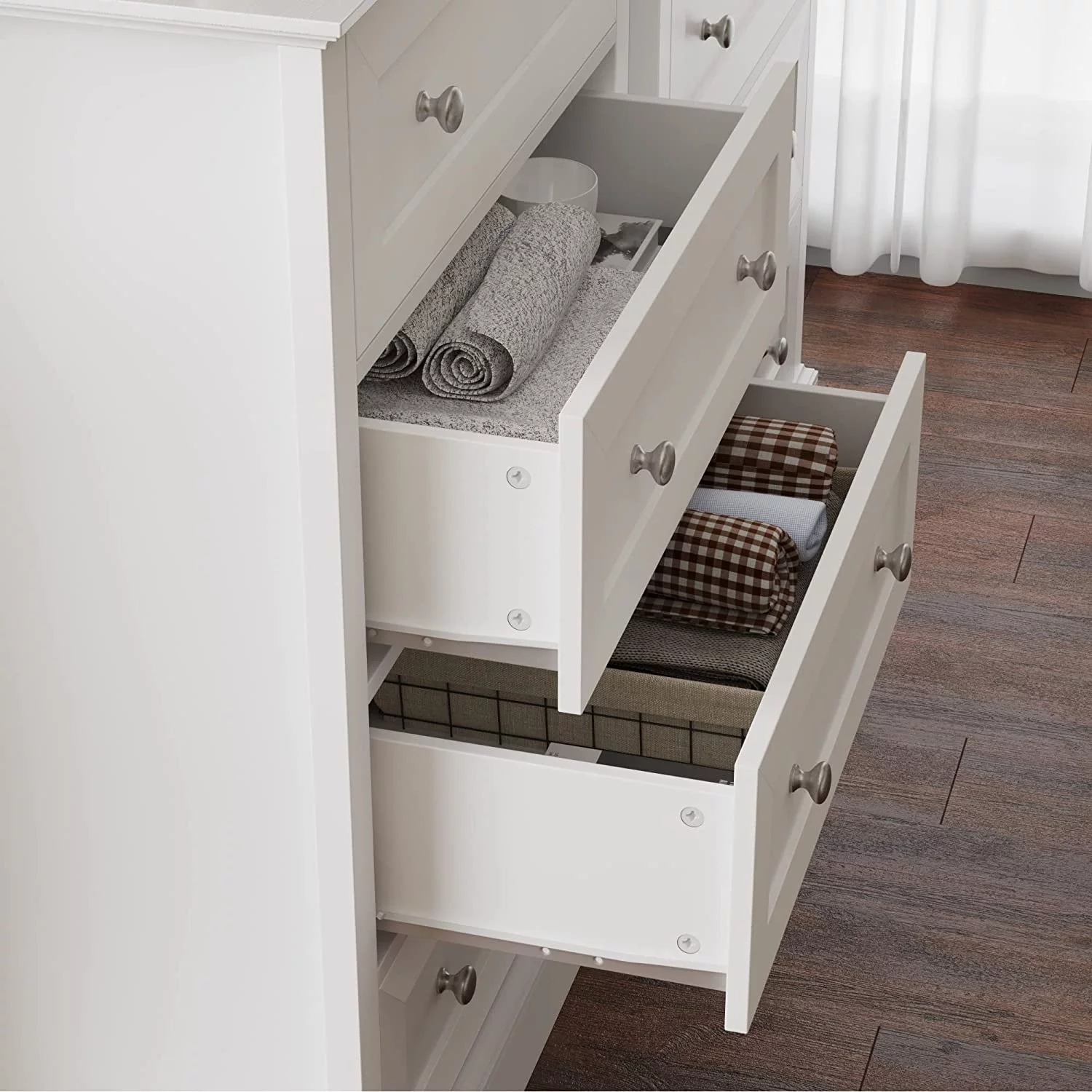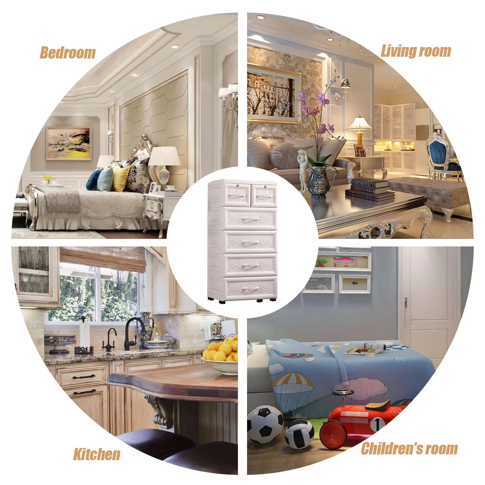 Wuzstar 6 Drawer Storage Cabinet Drawers Plastic Large-capacity Nightstand Chest Dresser W/Silent Rollers