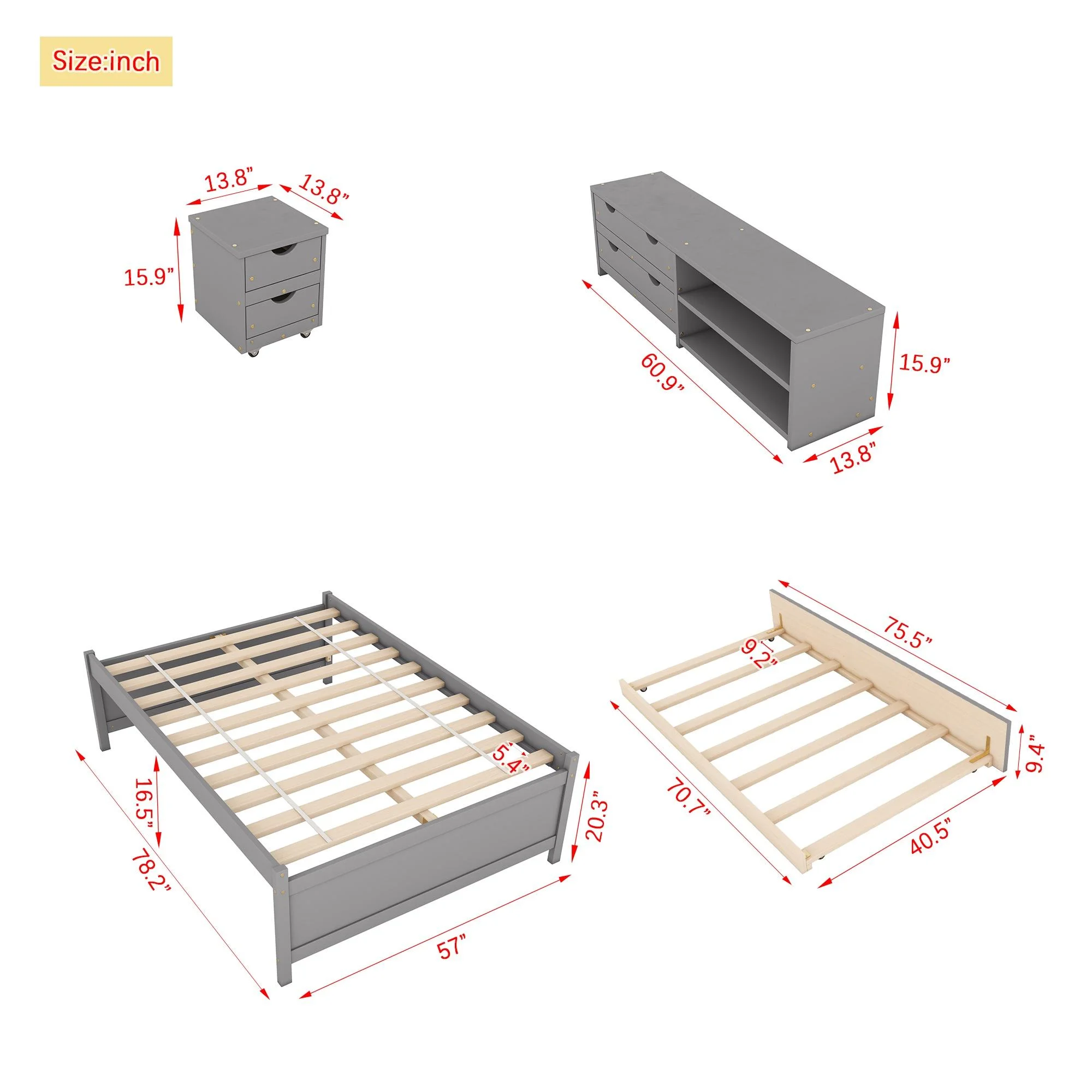 Home Square 3-Piece Set with Full Bed Armoire Wardrobe Cabinet and Nightstand