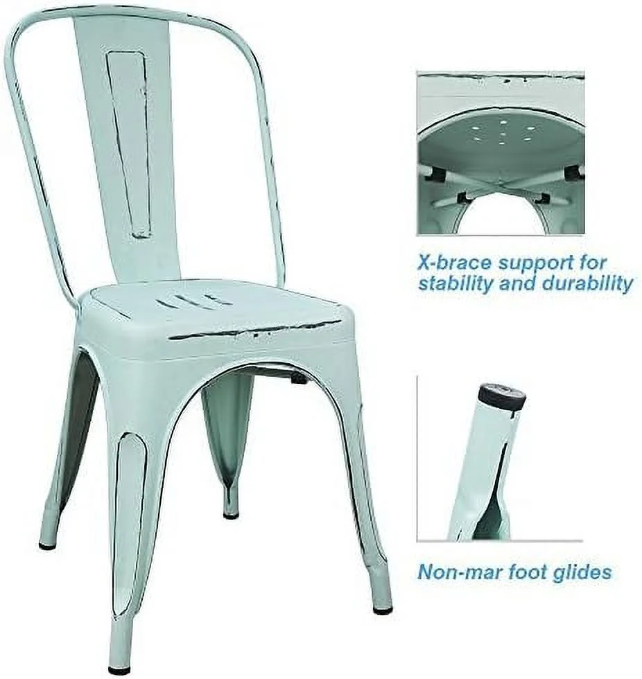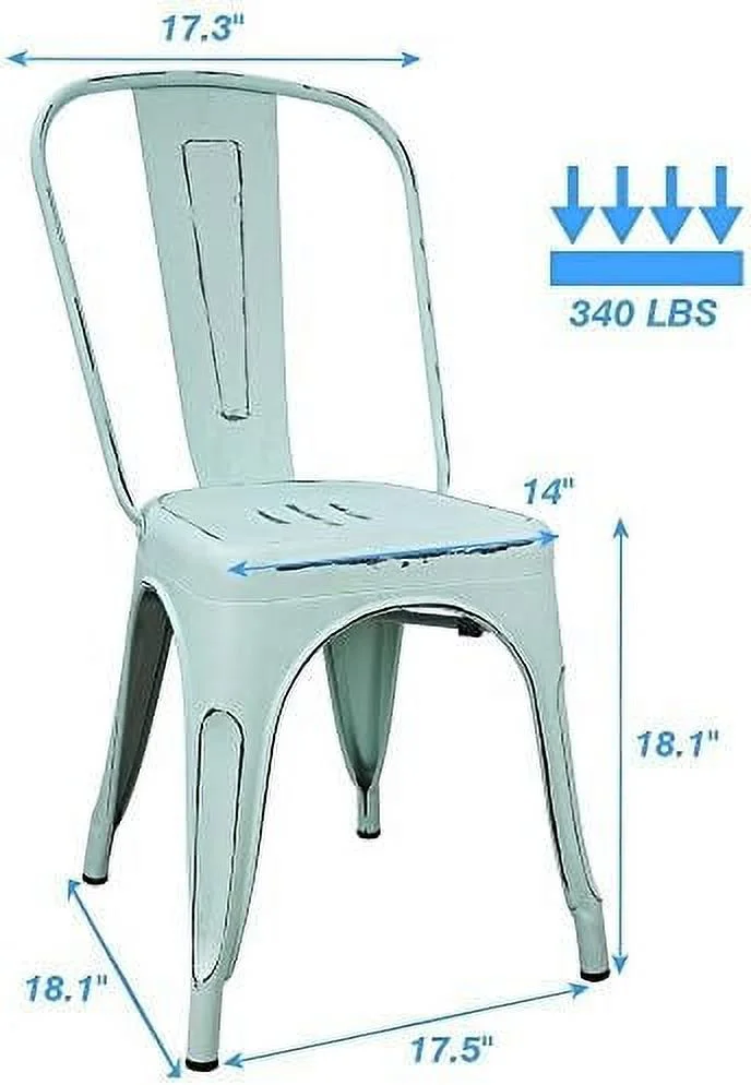 SJOLKMN Metal Indoor-Outdoor Chairs Distressed Style Kitchen Dining Chairs Stackable Side Chairs with Back Set of 4 (Silver)