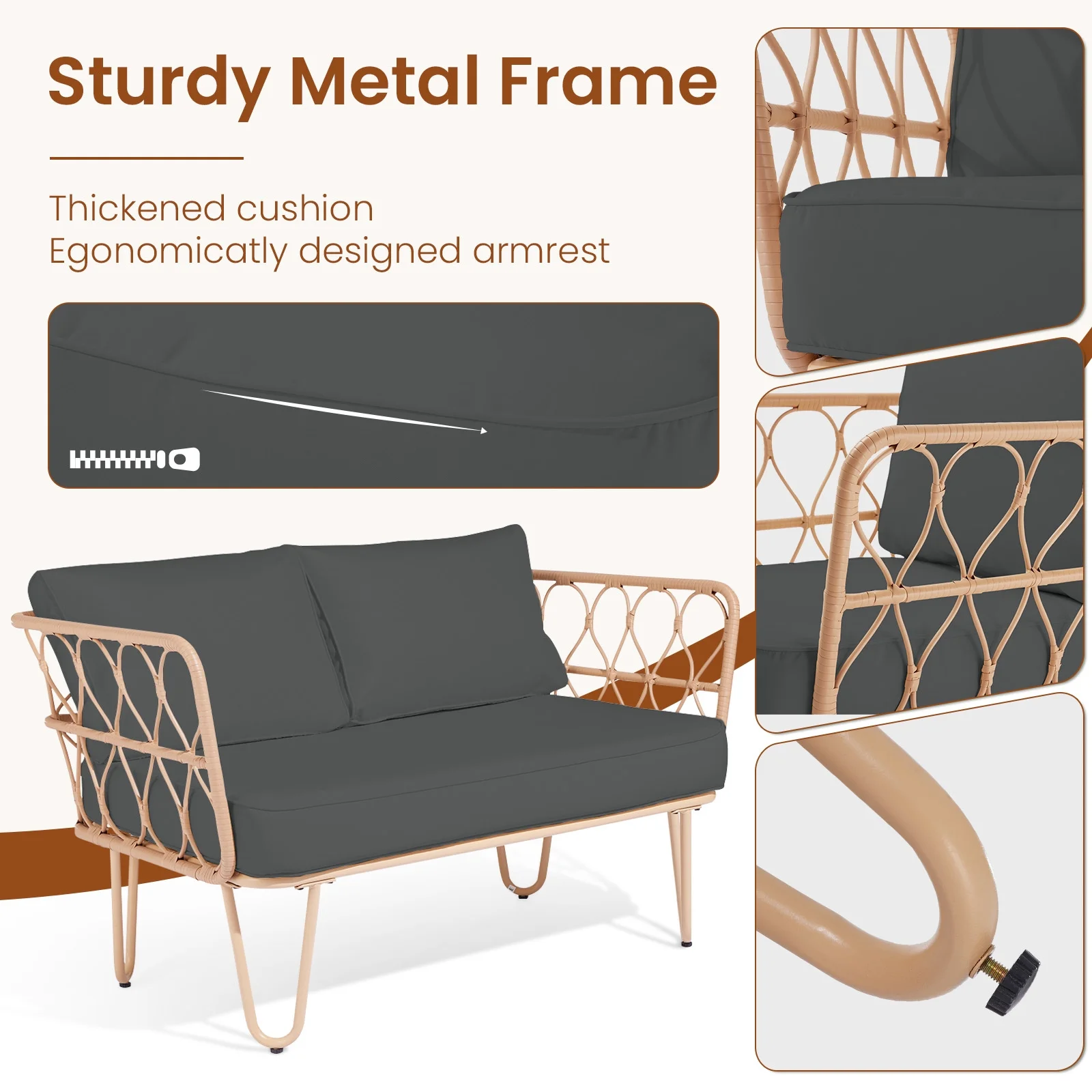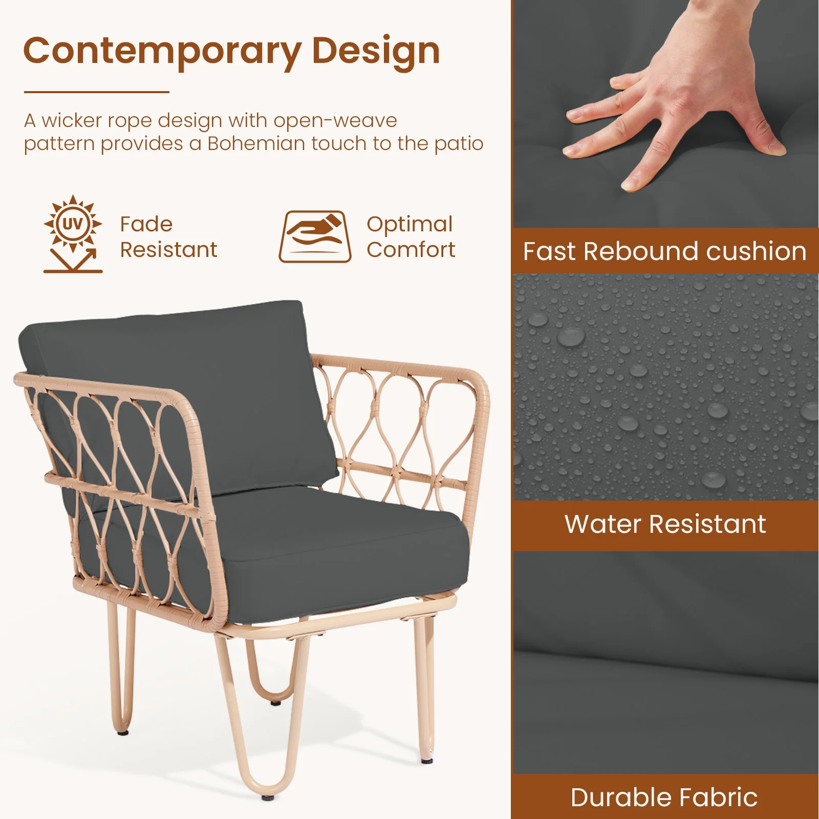 POCASSY 5 Piece Outdoor Conversation Furniture Set Wicker Sofa Seating Group with Cushions for Backyord, Garden, Pool
