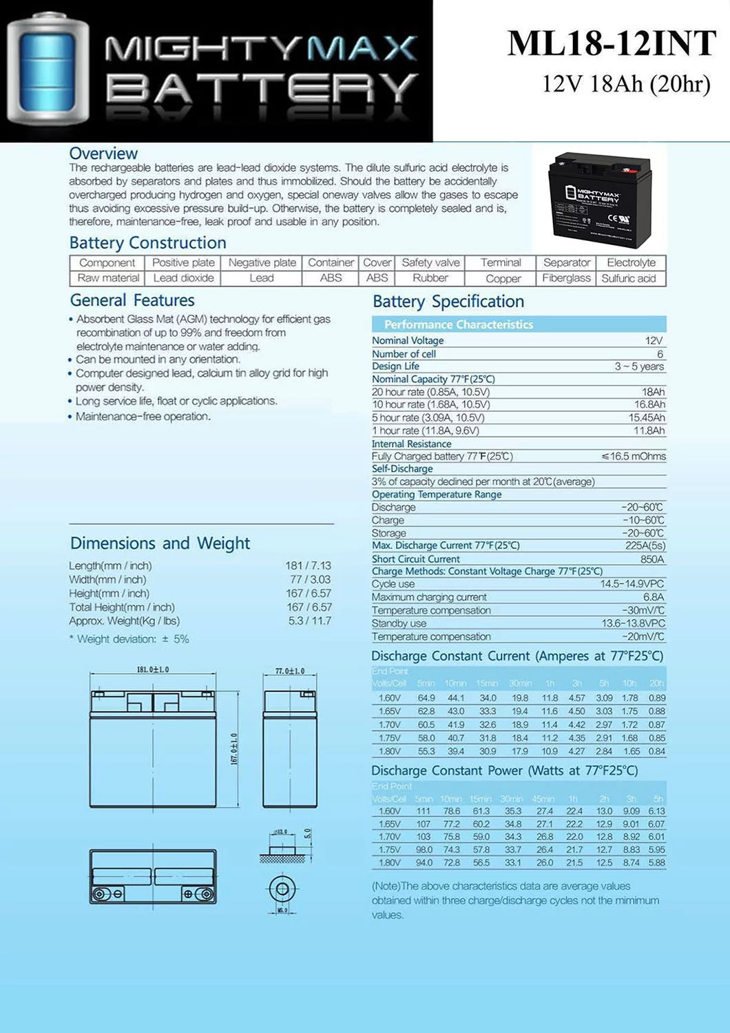 12V 18AH SLA INT Replacement Battery for DR Power Mower 10483 104837 - 2 Pack