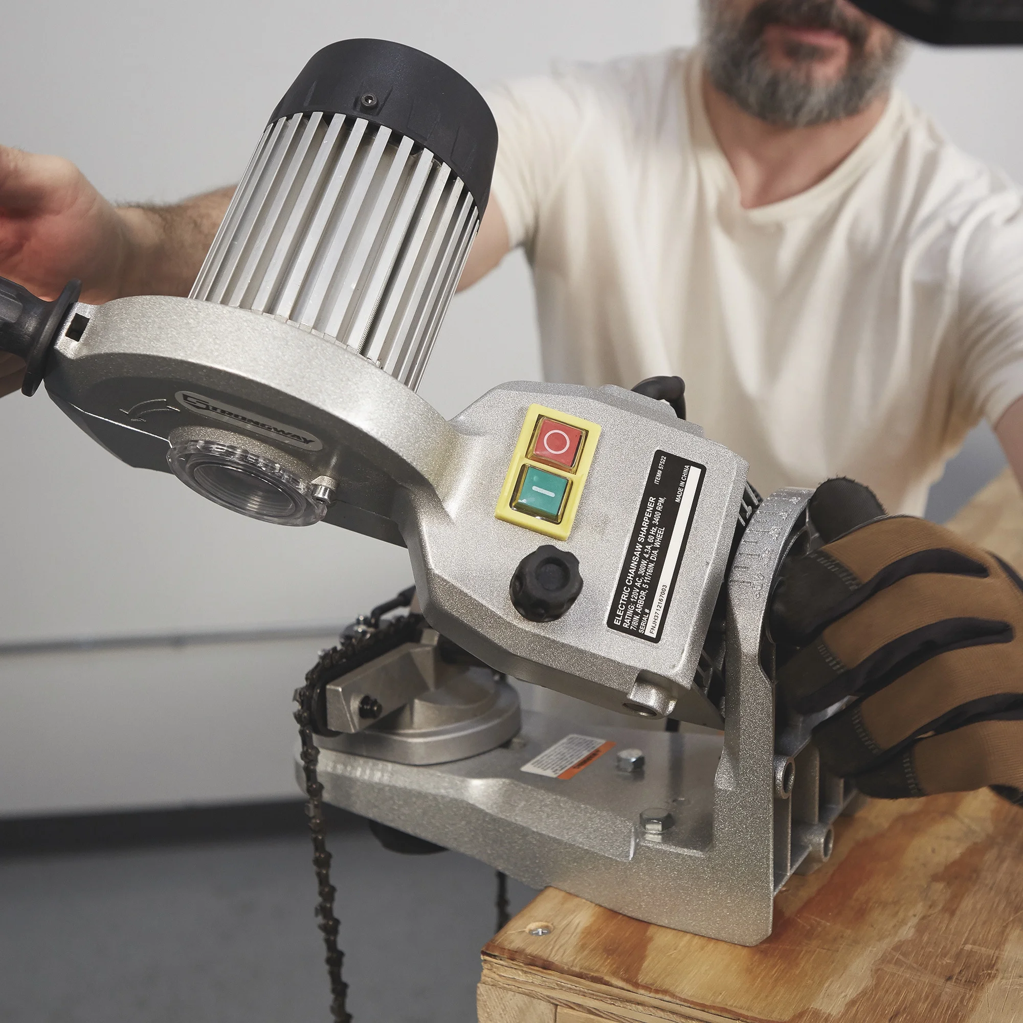 Strongway Electric Chainsaw Sharpener with Hydraulic Assist, 120V, 1/4in. to 3/4in. Pitch, 3,400 RPM