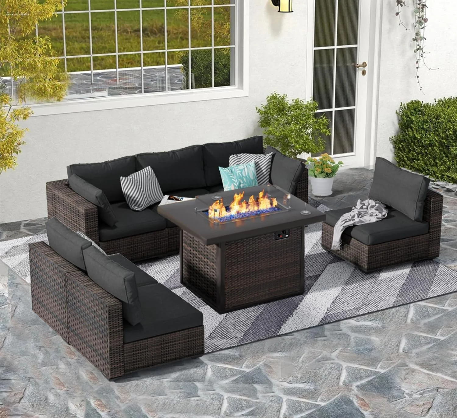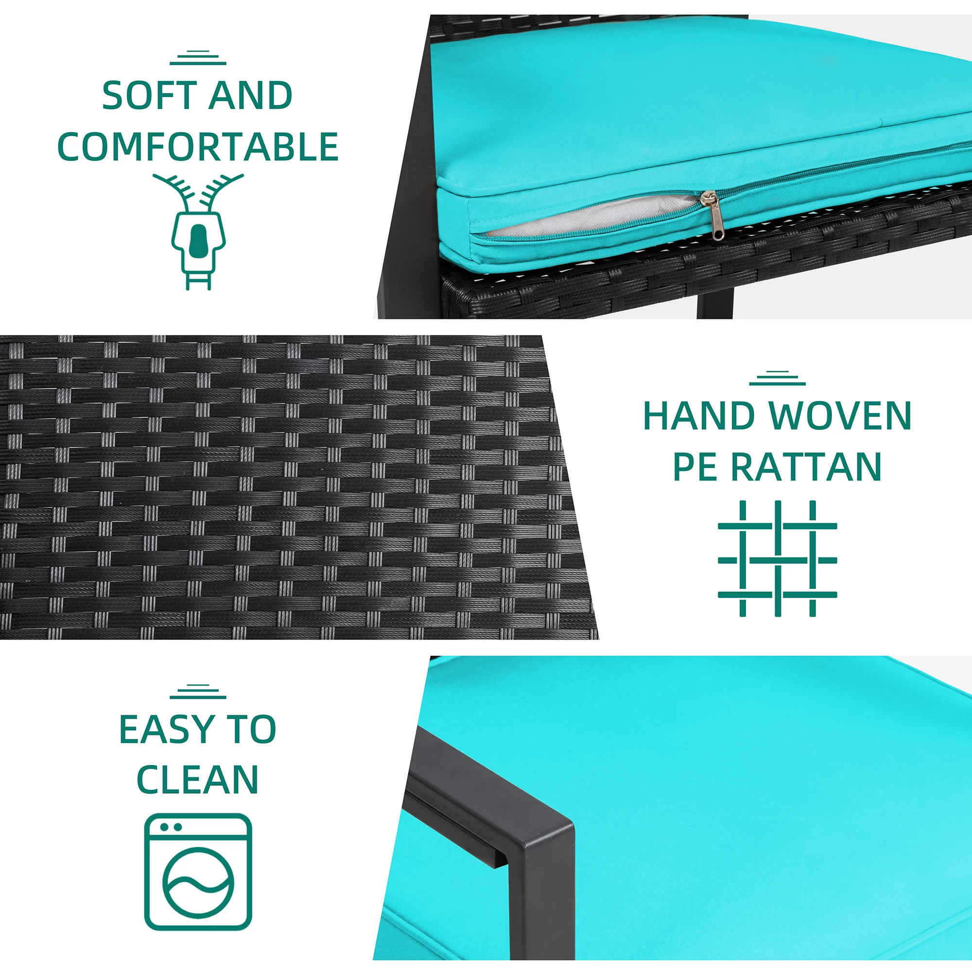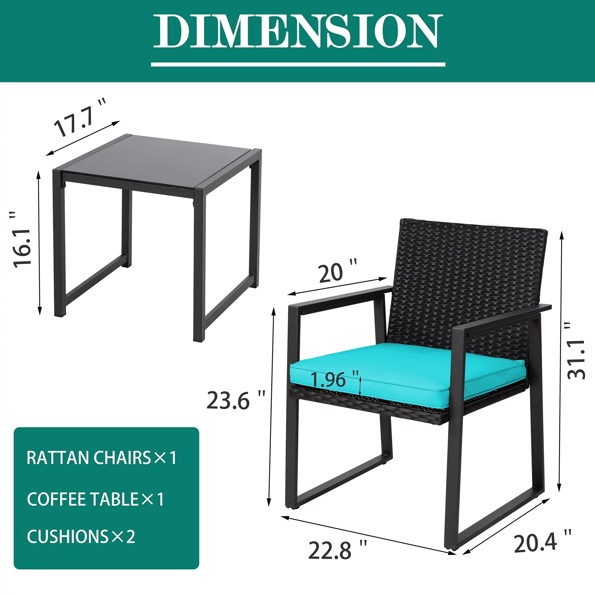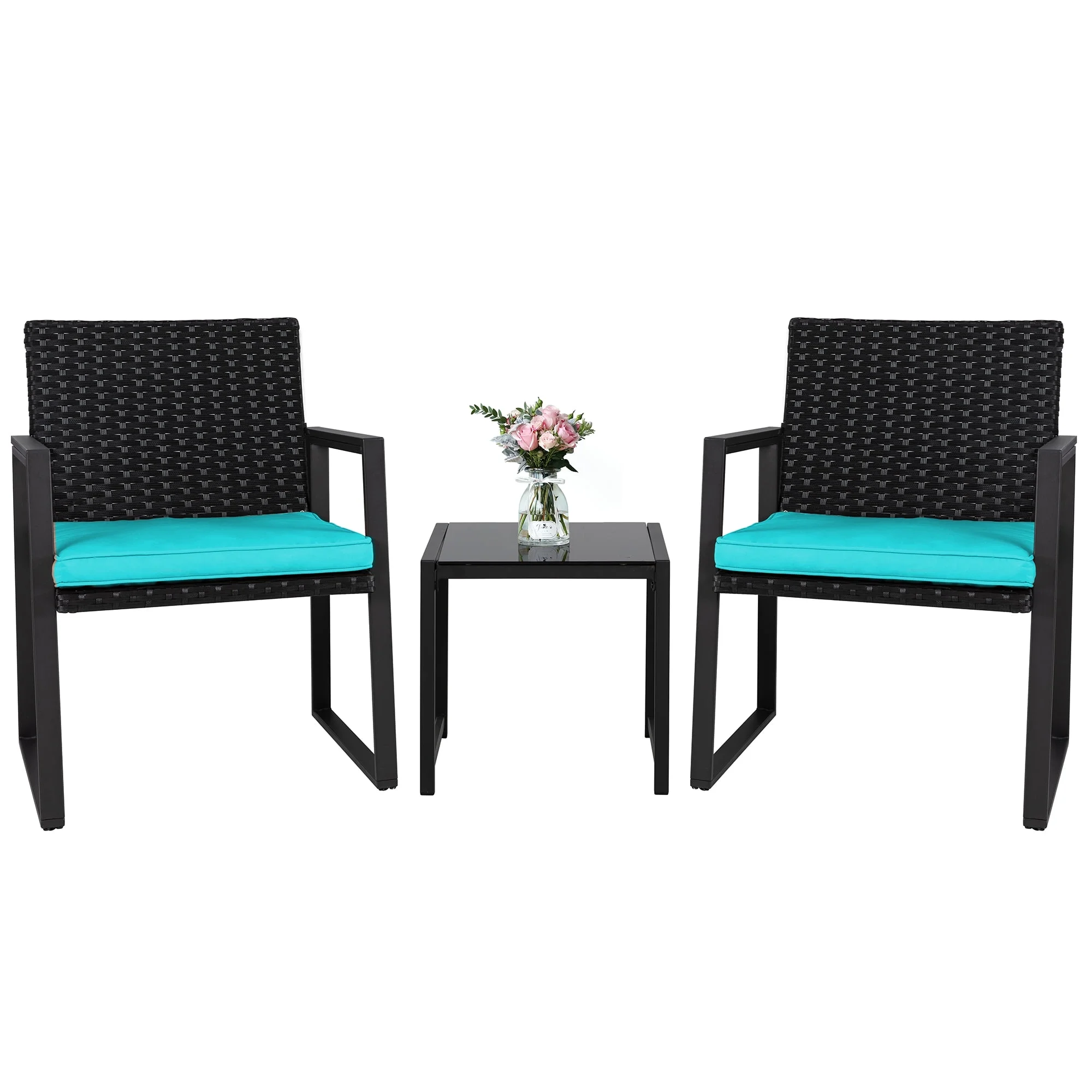 3 Piece Patio Bistro Sets, Outdoor Rattan Chairs & Black Wicker Furniture Conversation Set Blue
