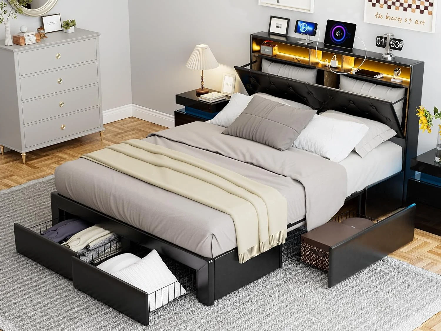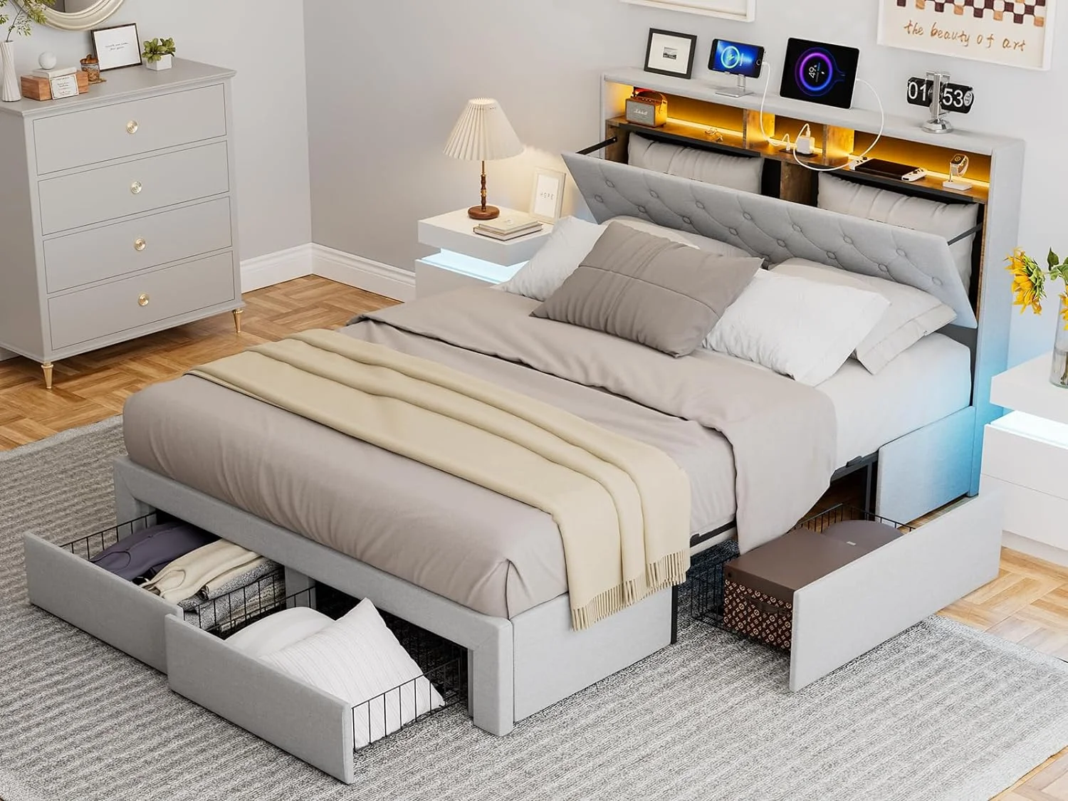 Bestar USA Claremont Wood Queen Murphy Bed with Closet Organizer in Gray