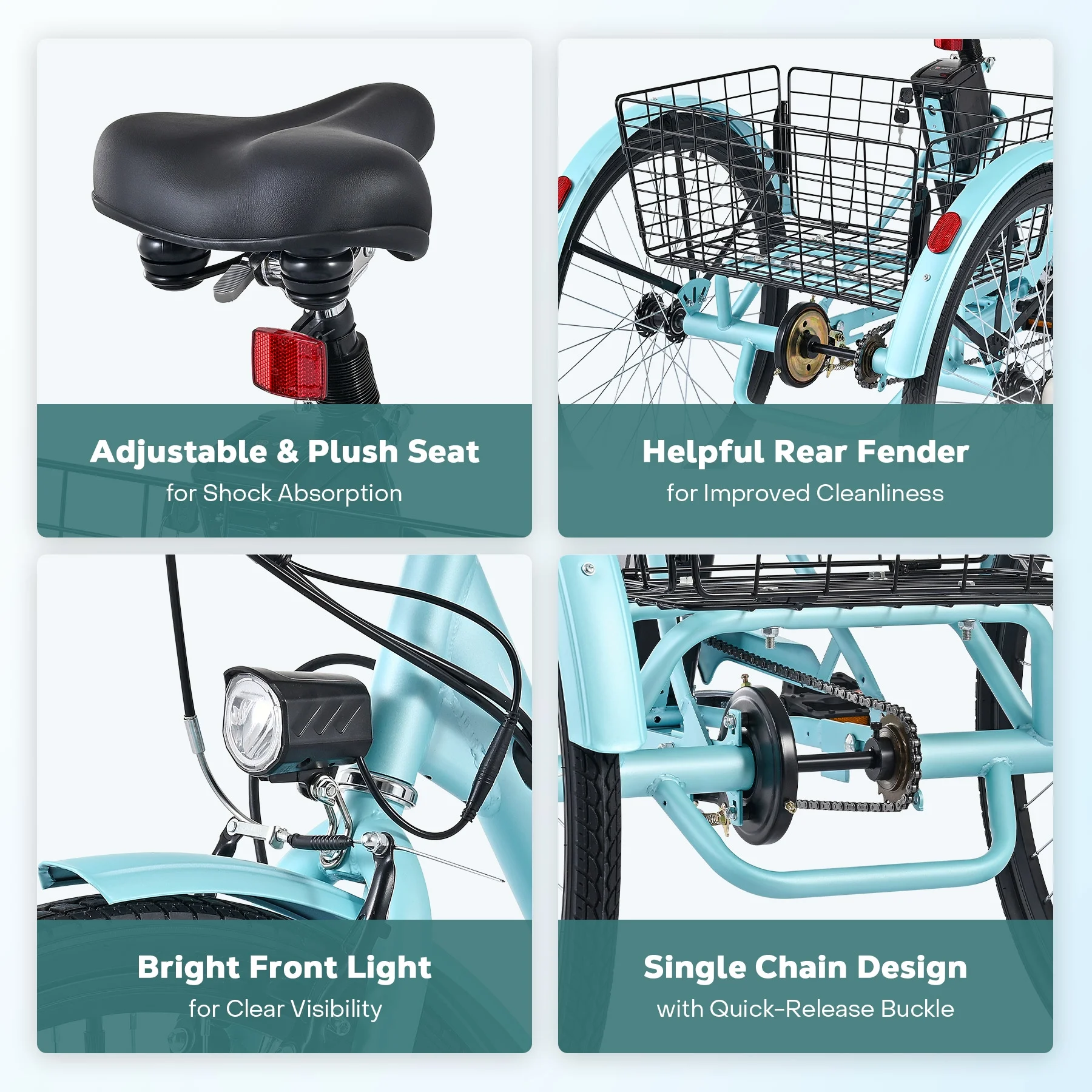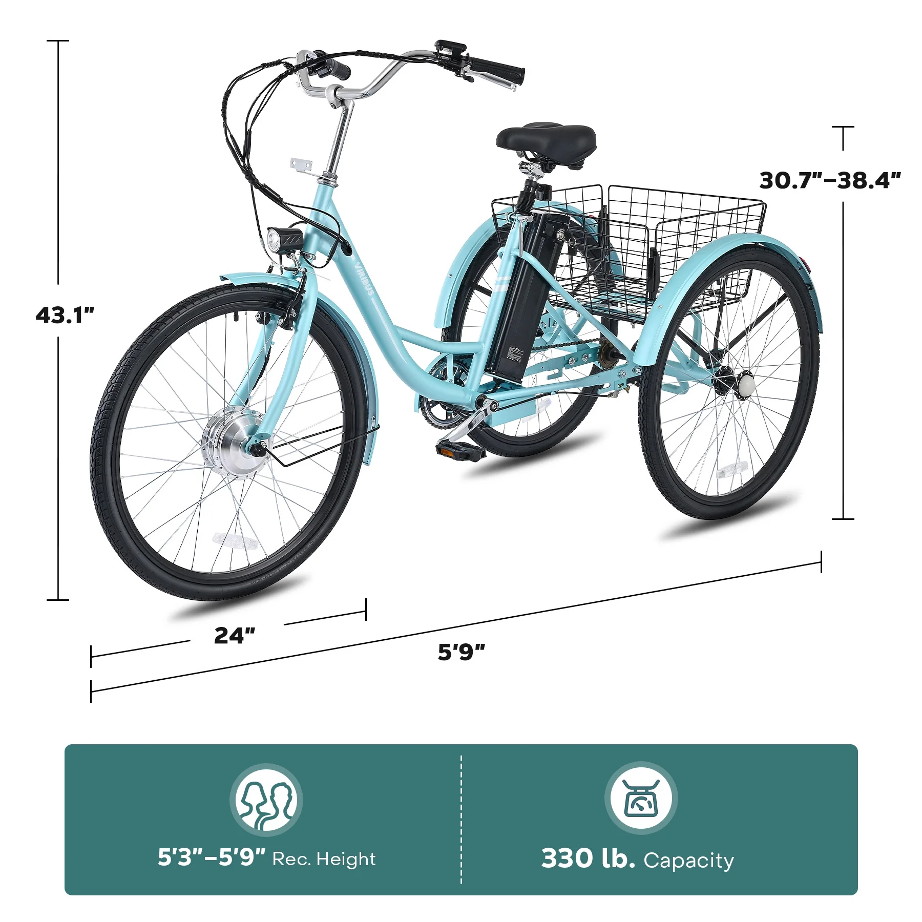 Viribus 24" Adult Electric Tricycle 250W Electric Trike with 36V 13Ah Battery UL 2271 Green