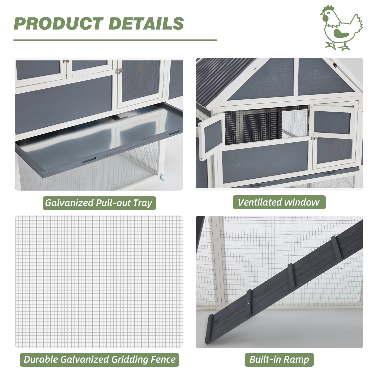 YODOLLA 84” Large Chicken Coop Outdoor Wooden Hen House Poultry Cage with 2 Nesting Boxes & Removable Tray,Gray