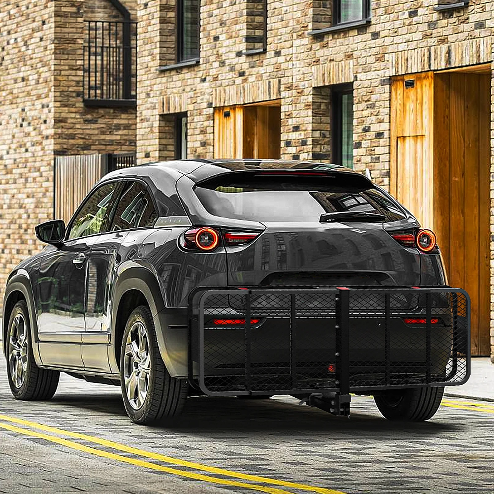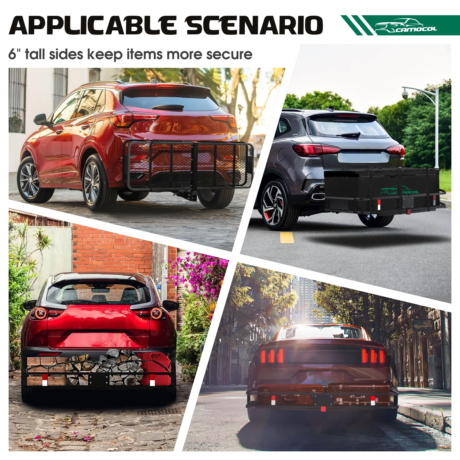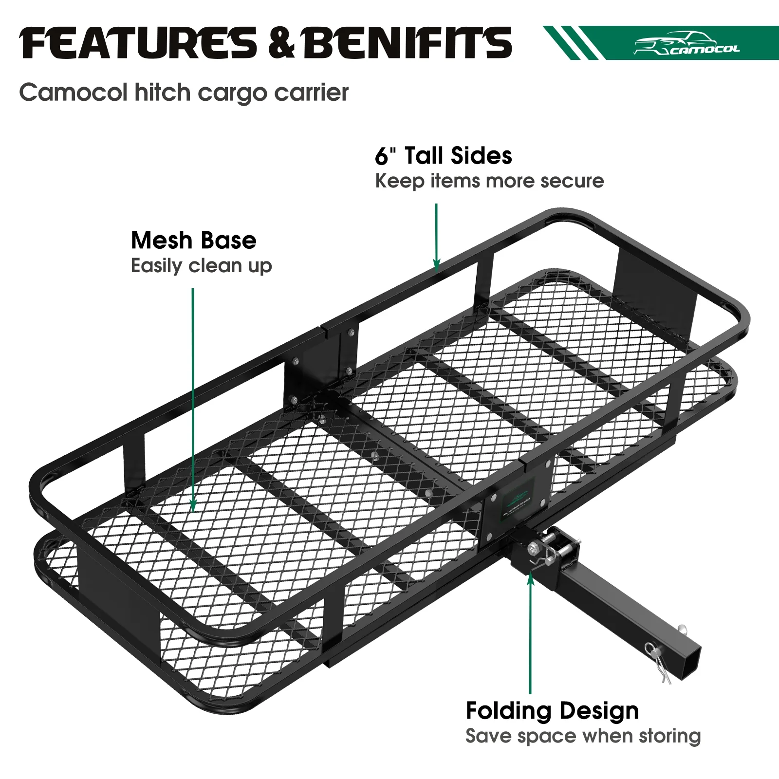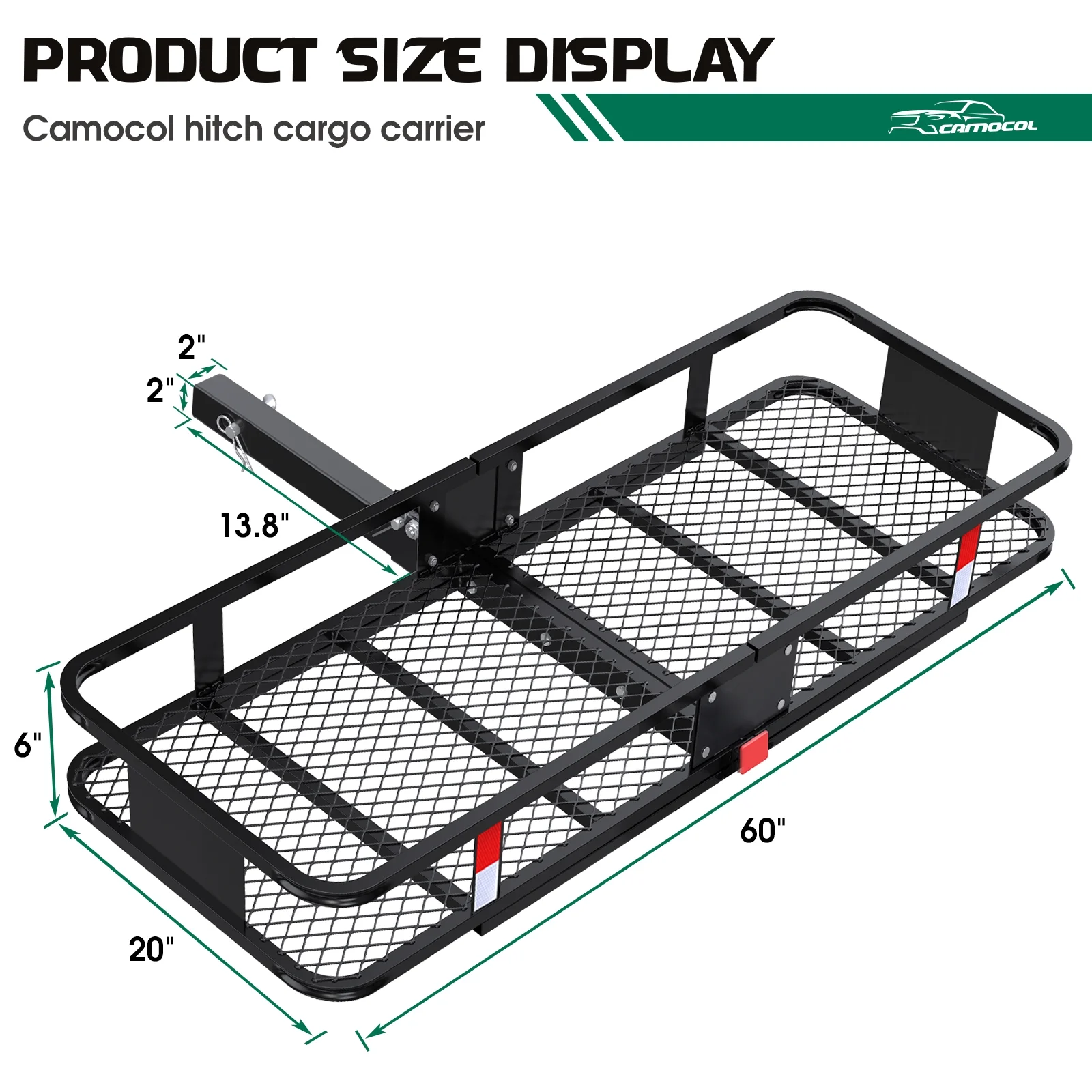 CAMOCOL 60" x 20" x 6" Trailer Hitch Rack Cargo Carrier Folding Hitch Mount Vehicle Cargo Basket 500lb Capacity