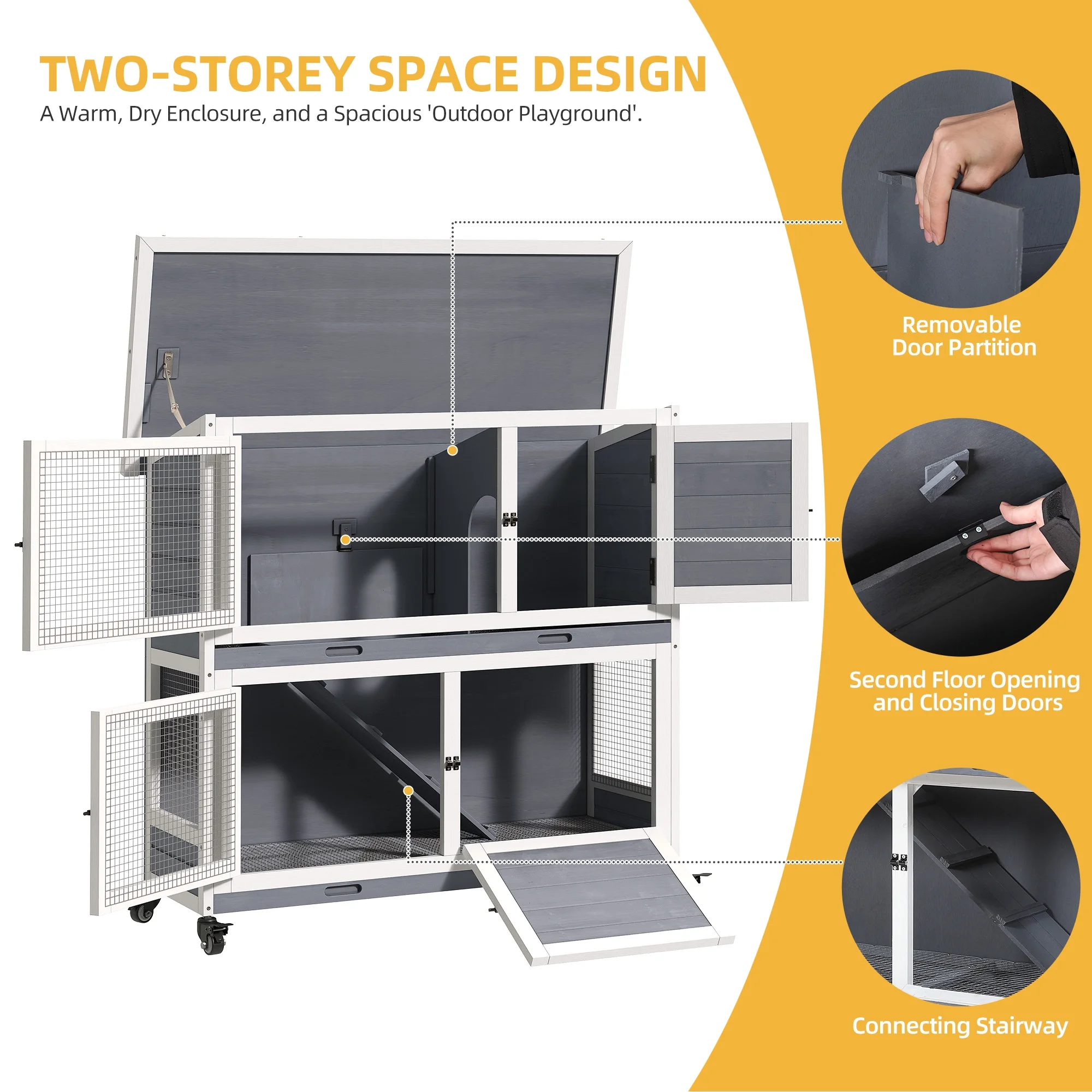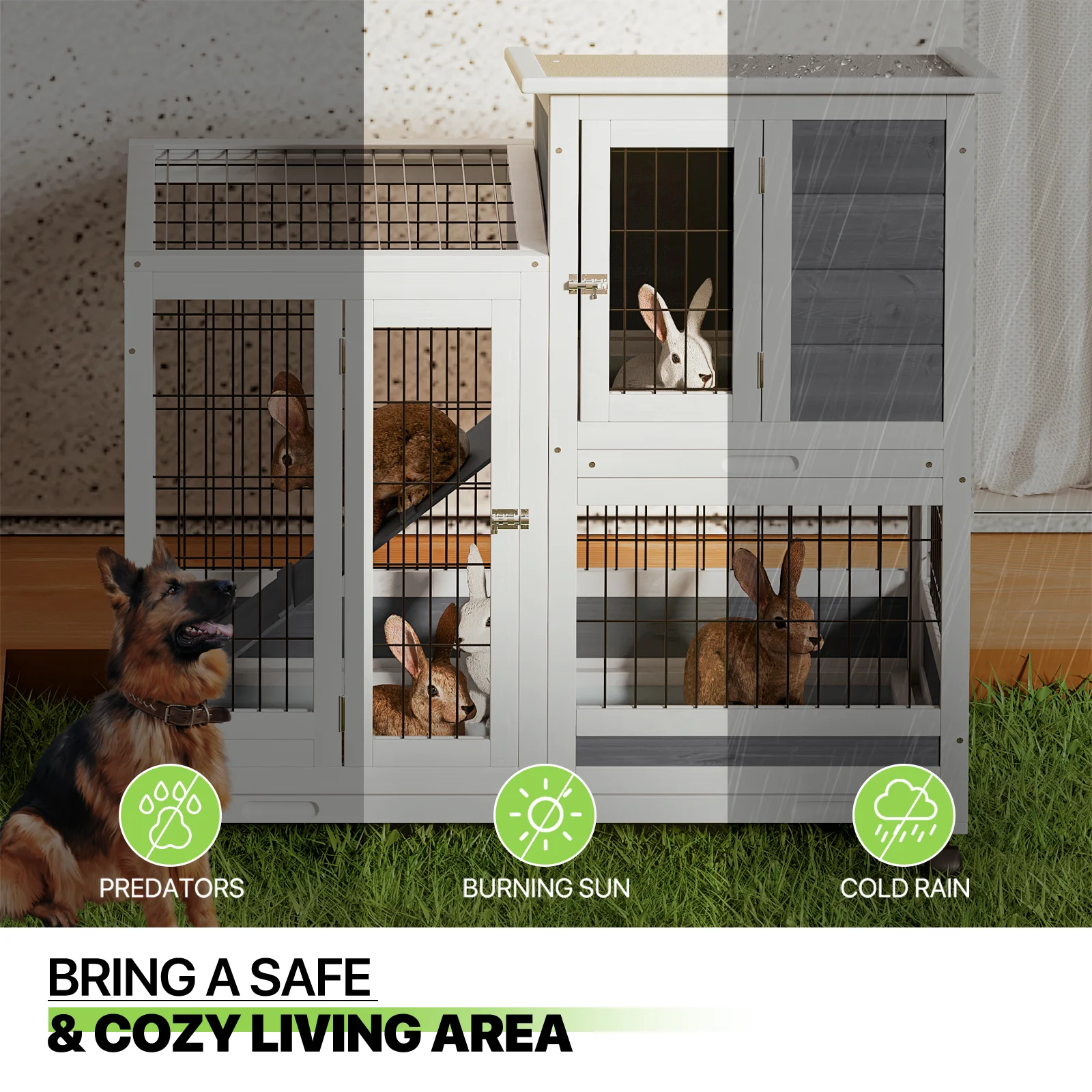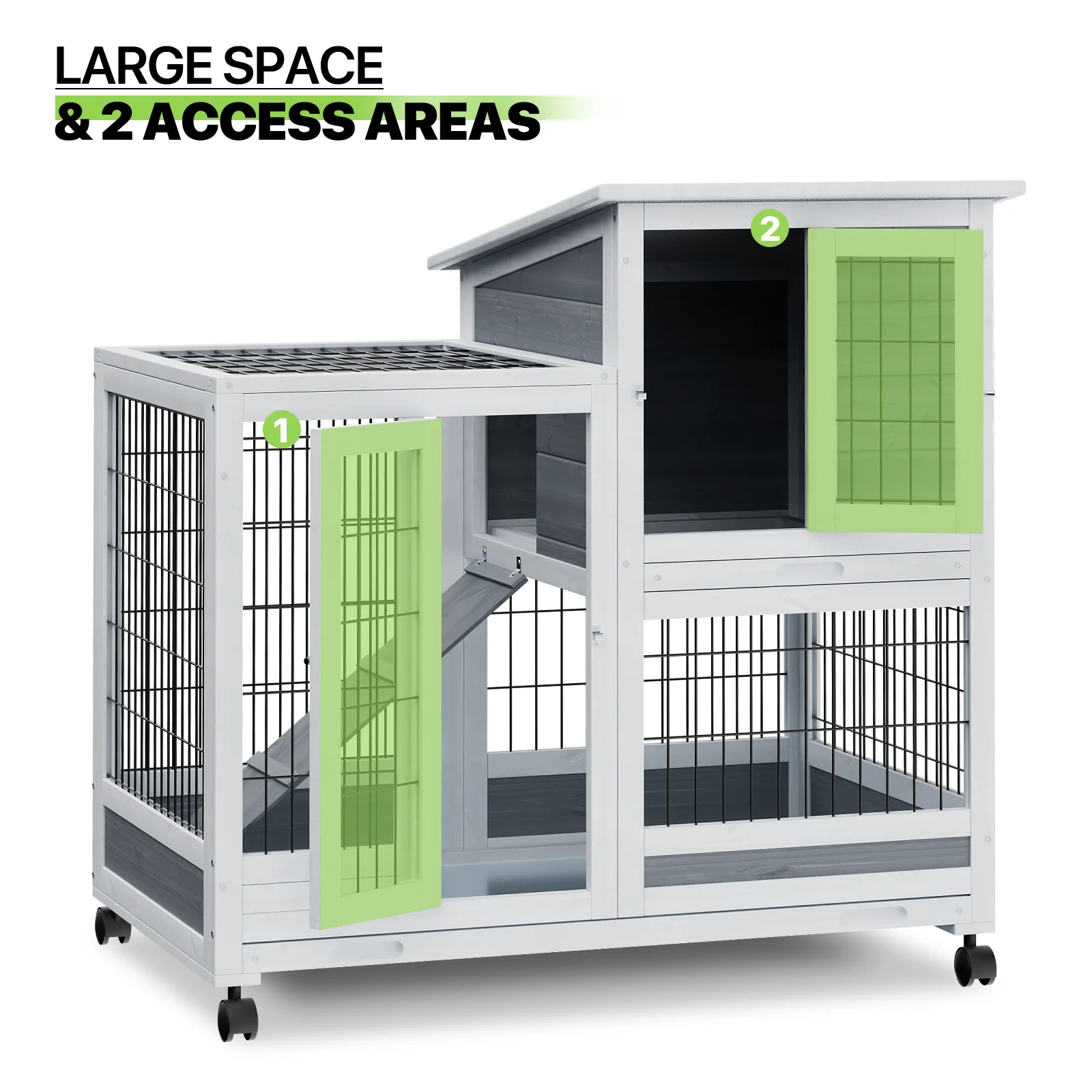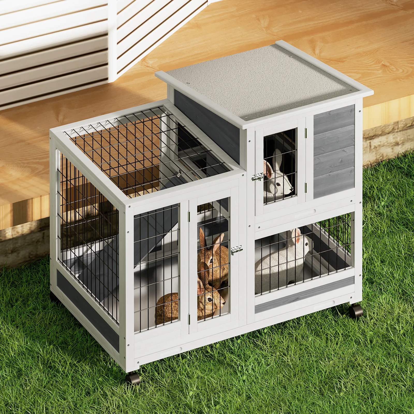 Dextrus Rabbit Hutch Bunny Cage Indoor Outdoor with Removable Tray and Wheels