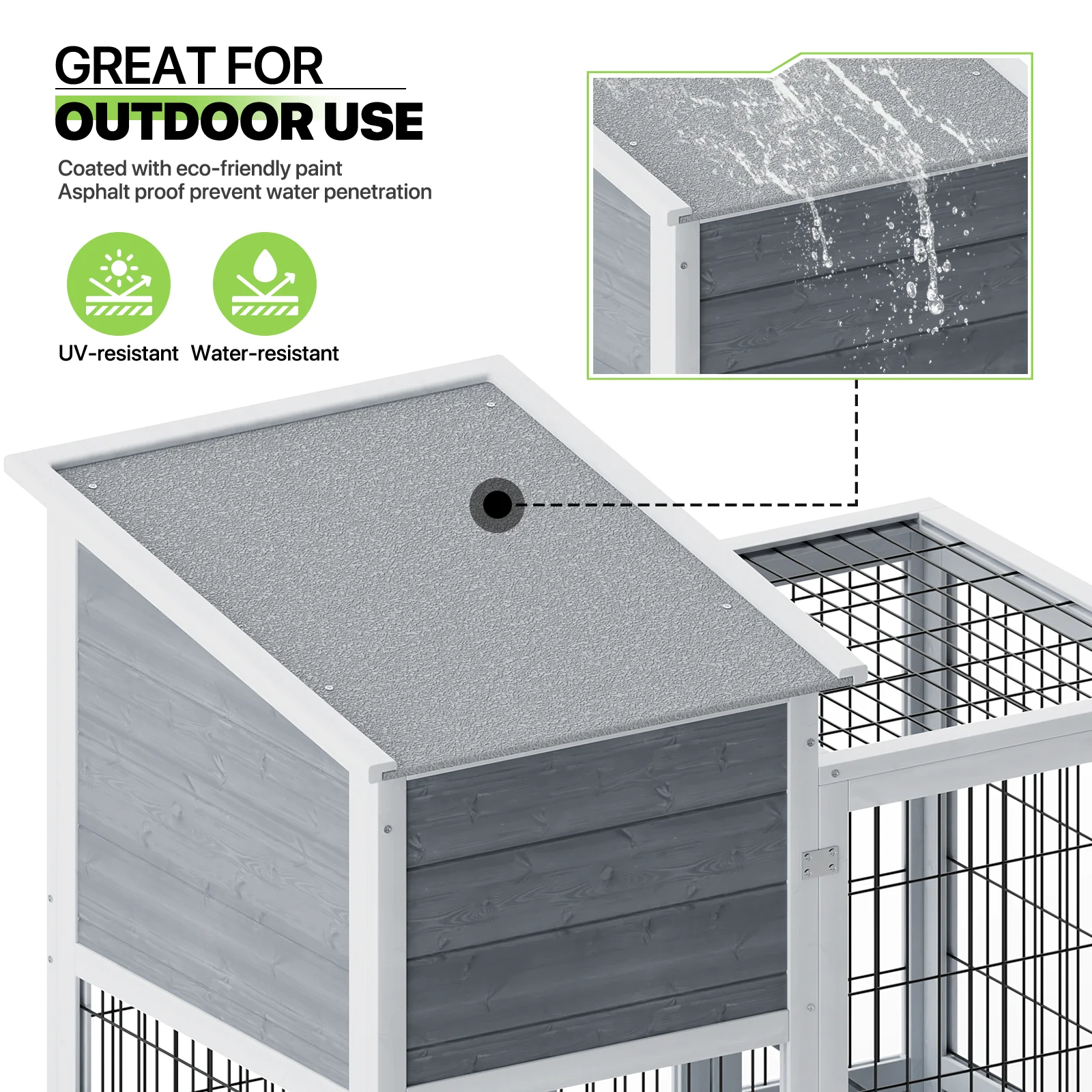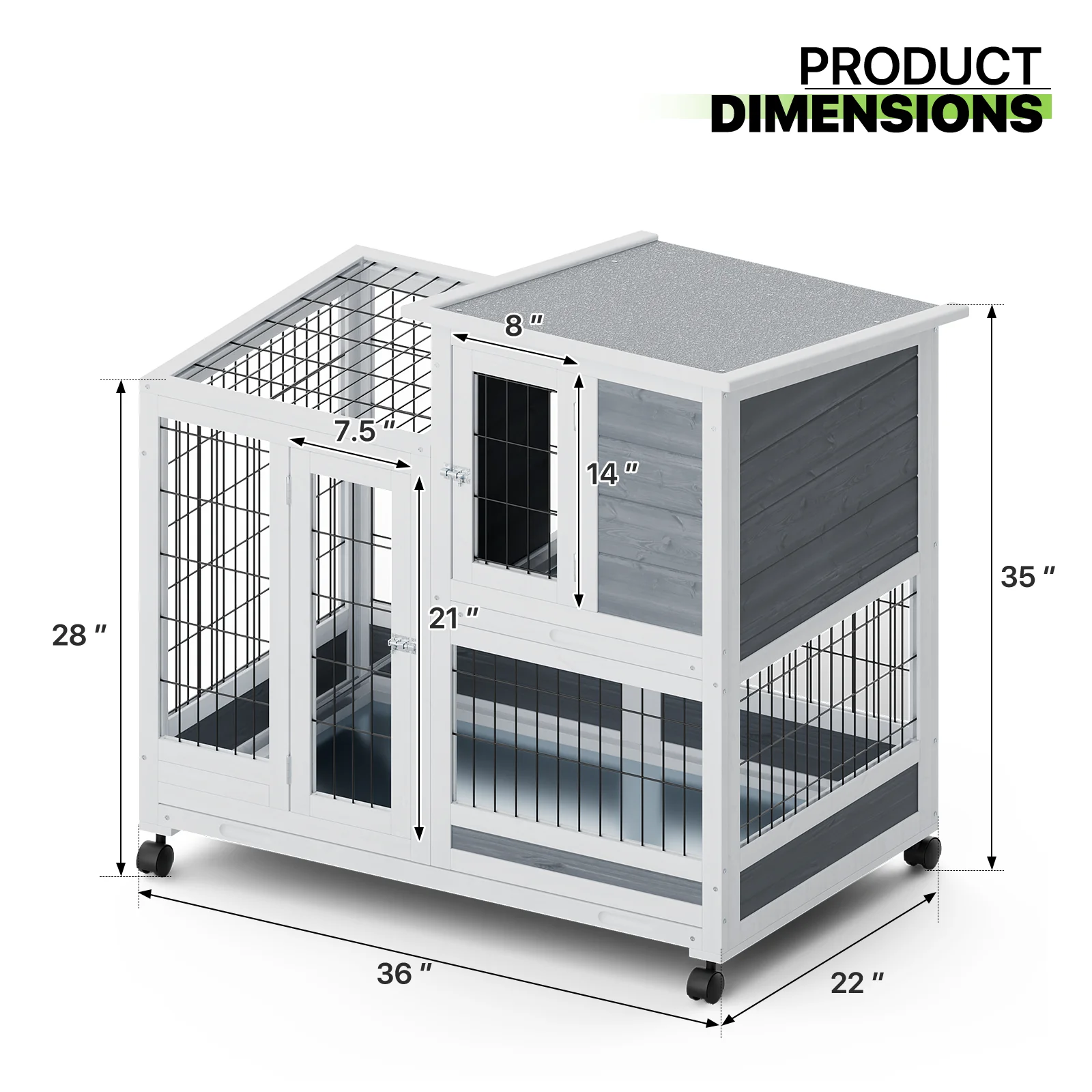 Magshion 36" Rabbit Hutch with Wheel, Safe & Cozy Wooden Bunny Cage for Small Animal with Anti-Slip Ramp, Gray