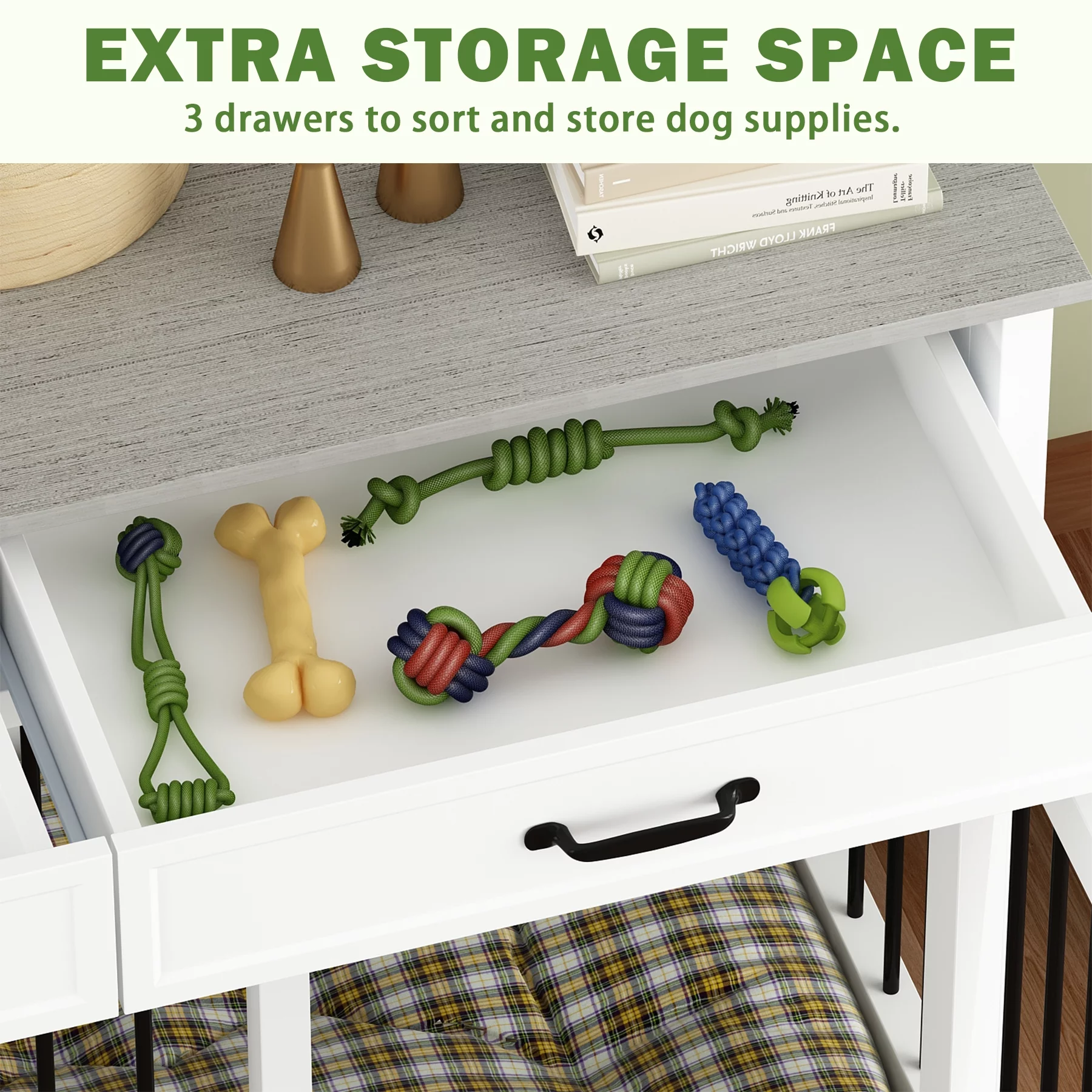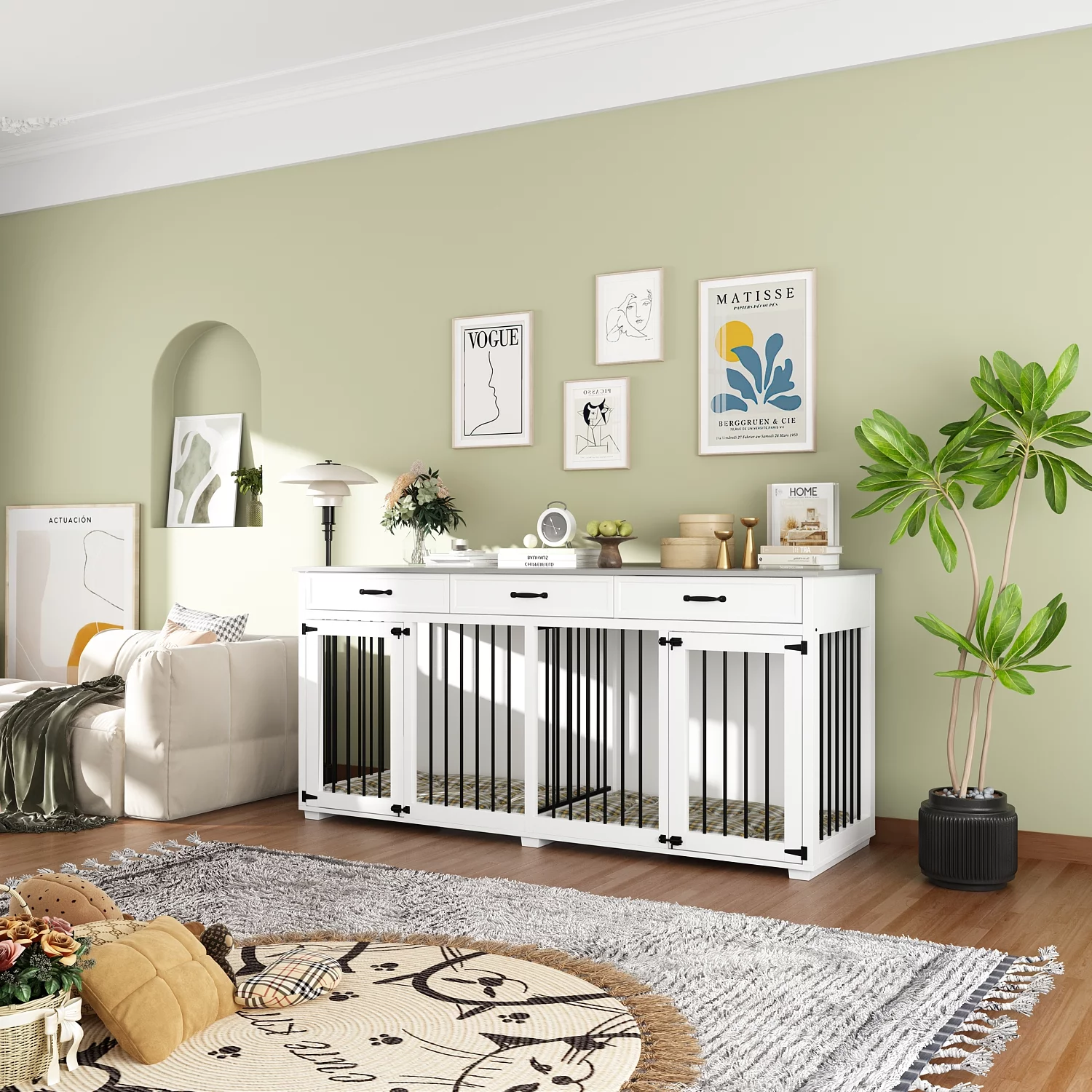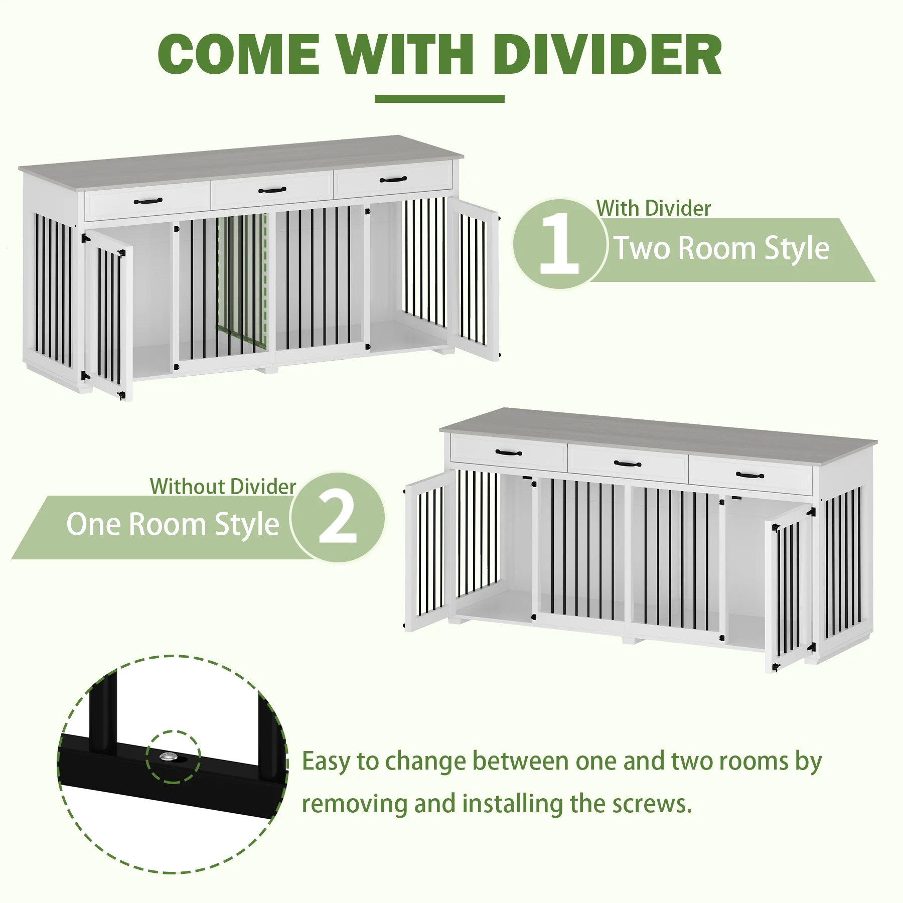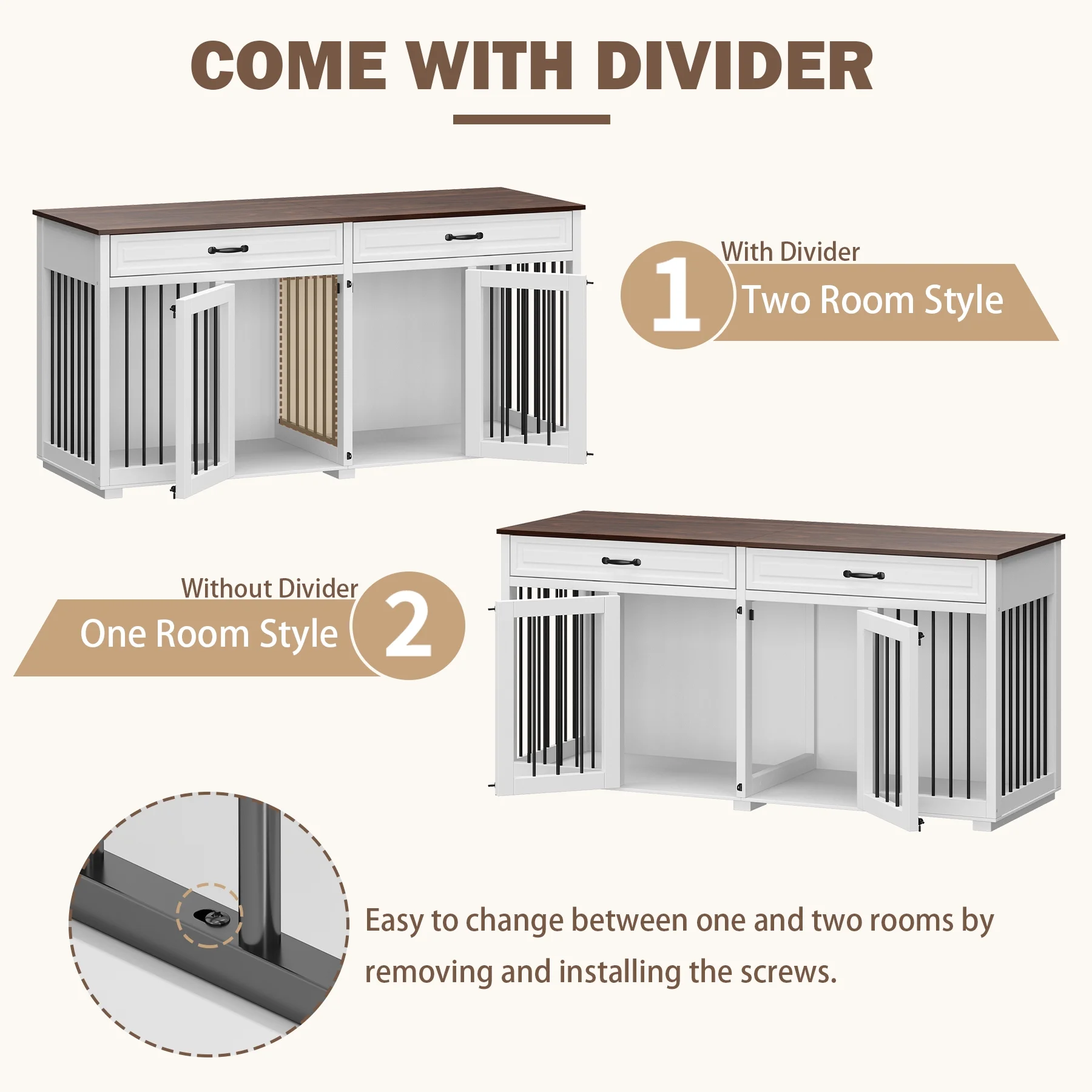 NARTRU 72.5" Large Double Dog Crate Kennel Furniture with 3 Drawers and Divider for Large Dog or 2 Medium Dogs Indoor