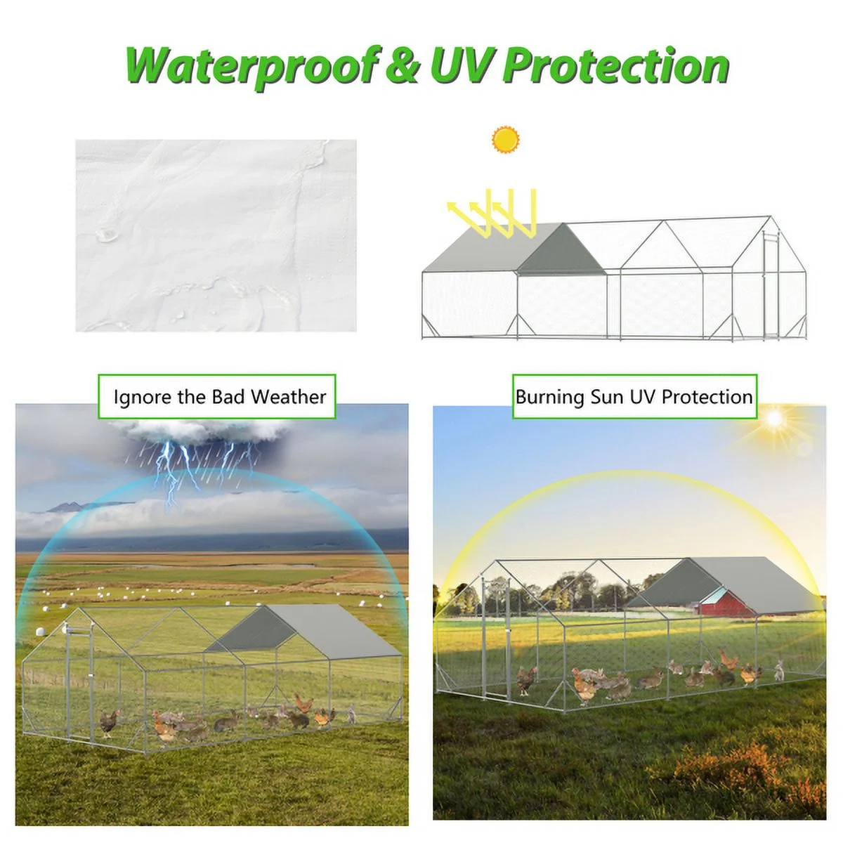 Large Metal Chicken Coop Run with Waterproof Cover - 20L x 10W x 6.56