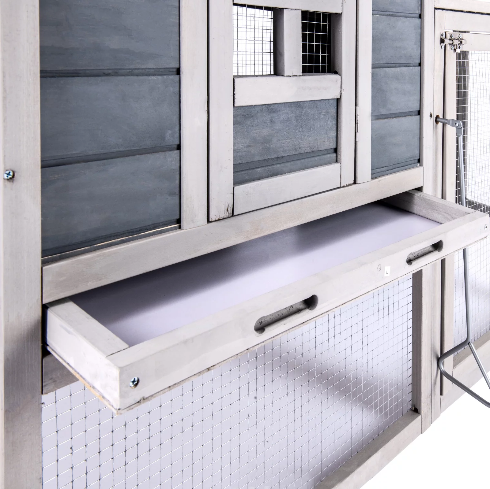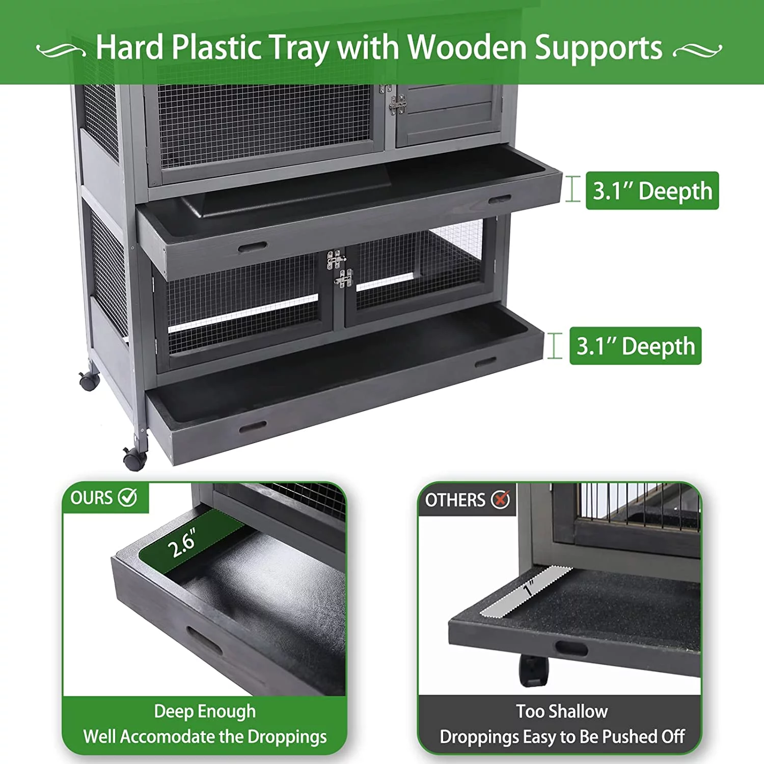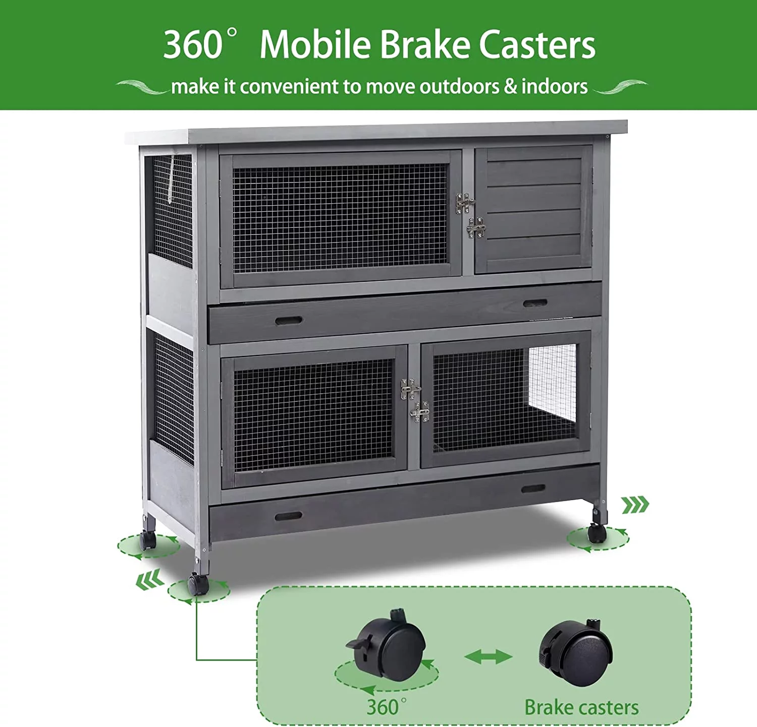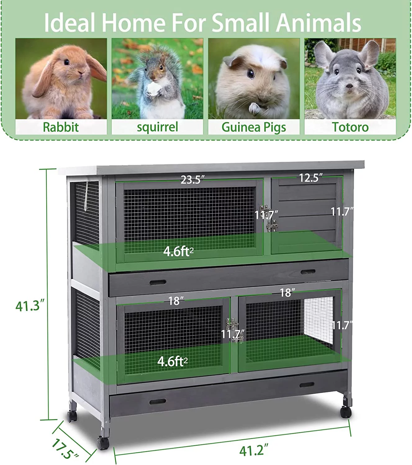 SYTHERS 44" Rabbit Hutch Outdoor Indoor Small Animals Pet House 2 Story Chicken Coop Guinea Pig Cage with Wheels