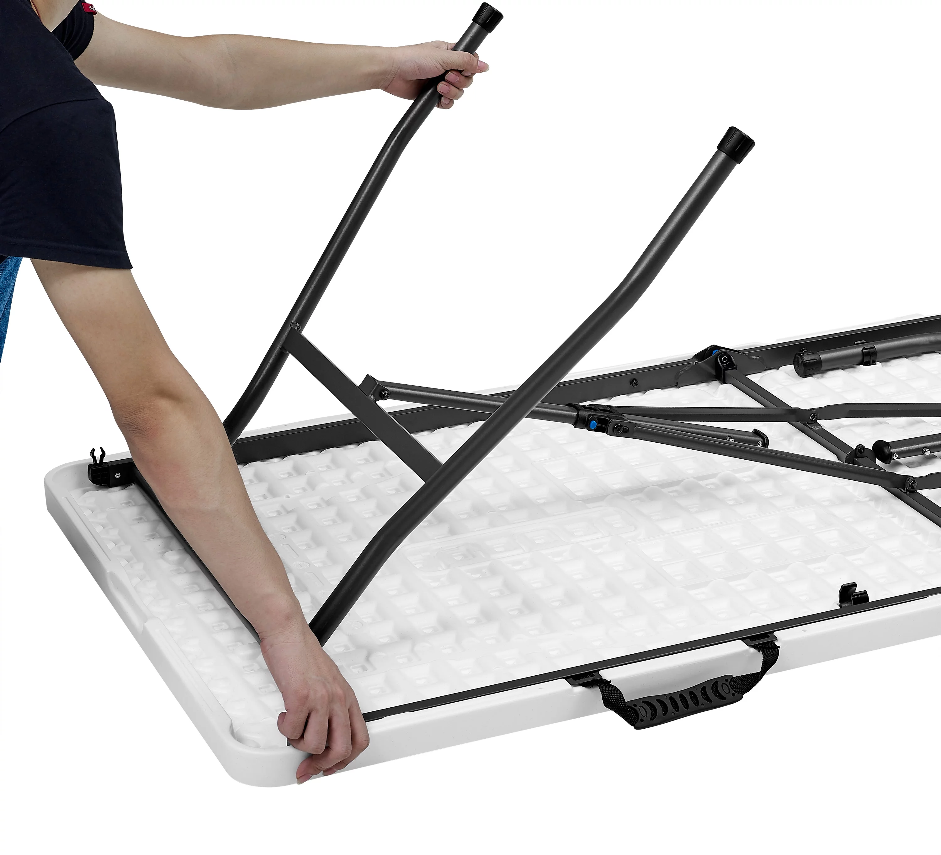 Mainstays 6 Foot Fold-in-Half Plastic Table, Indoor Outdoor, White Granite