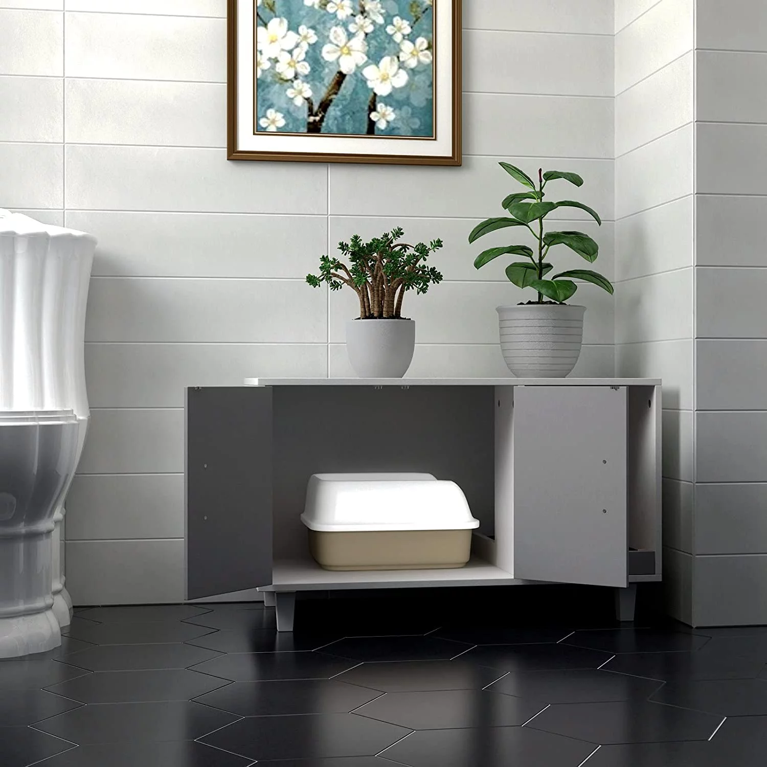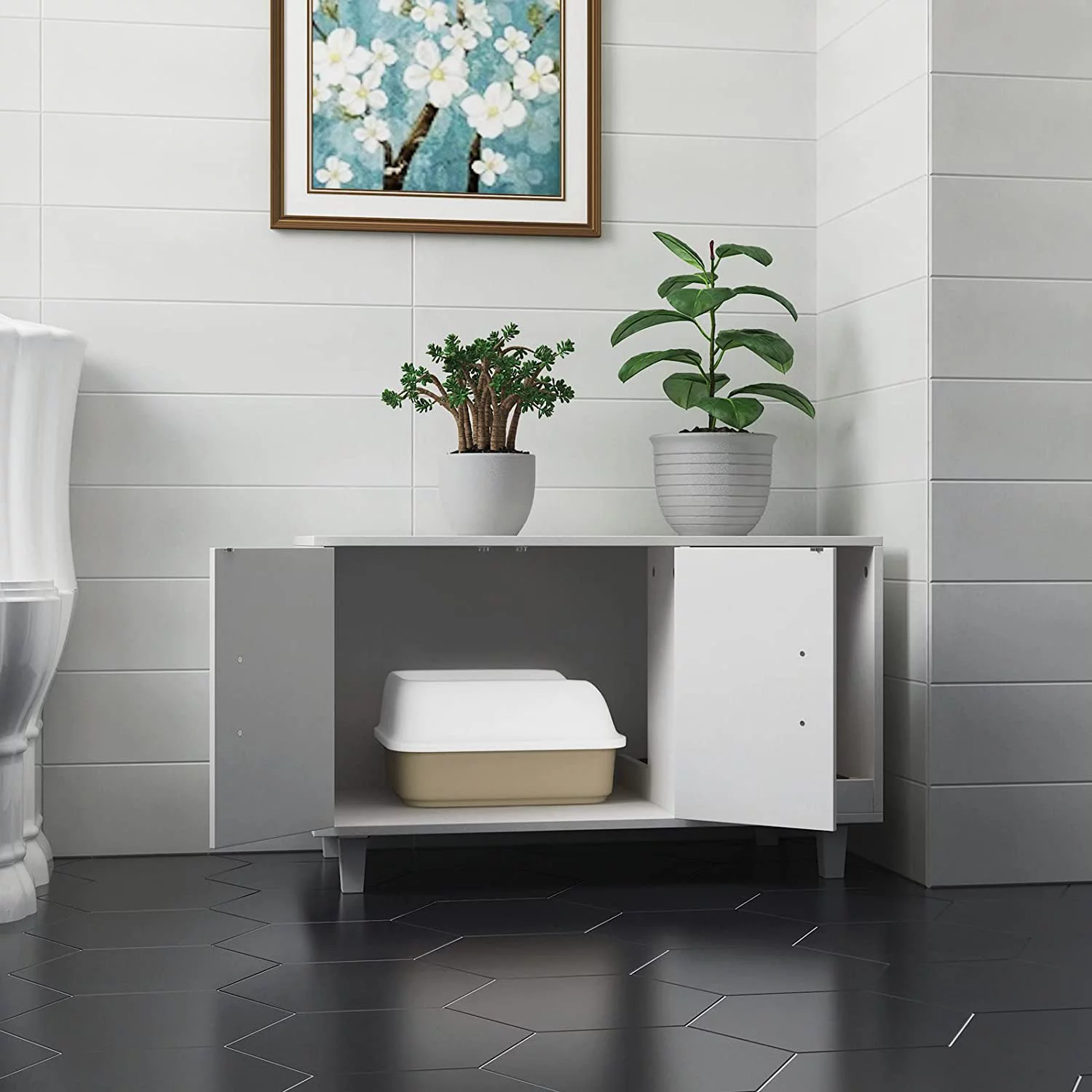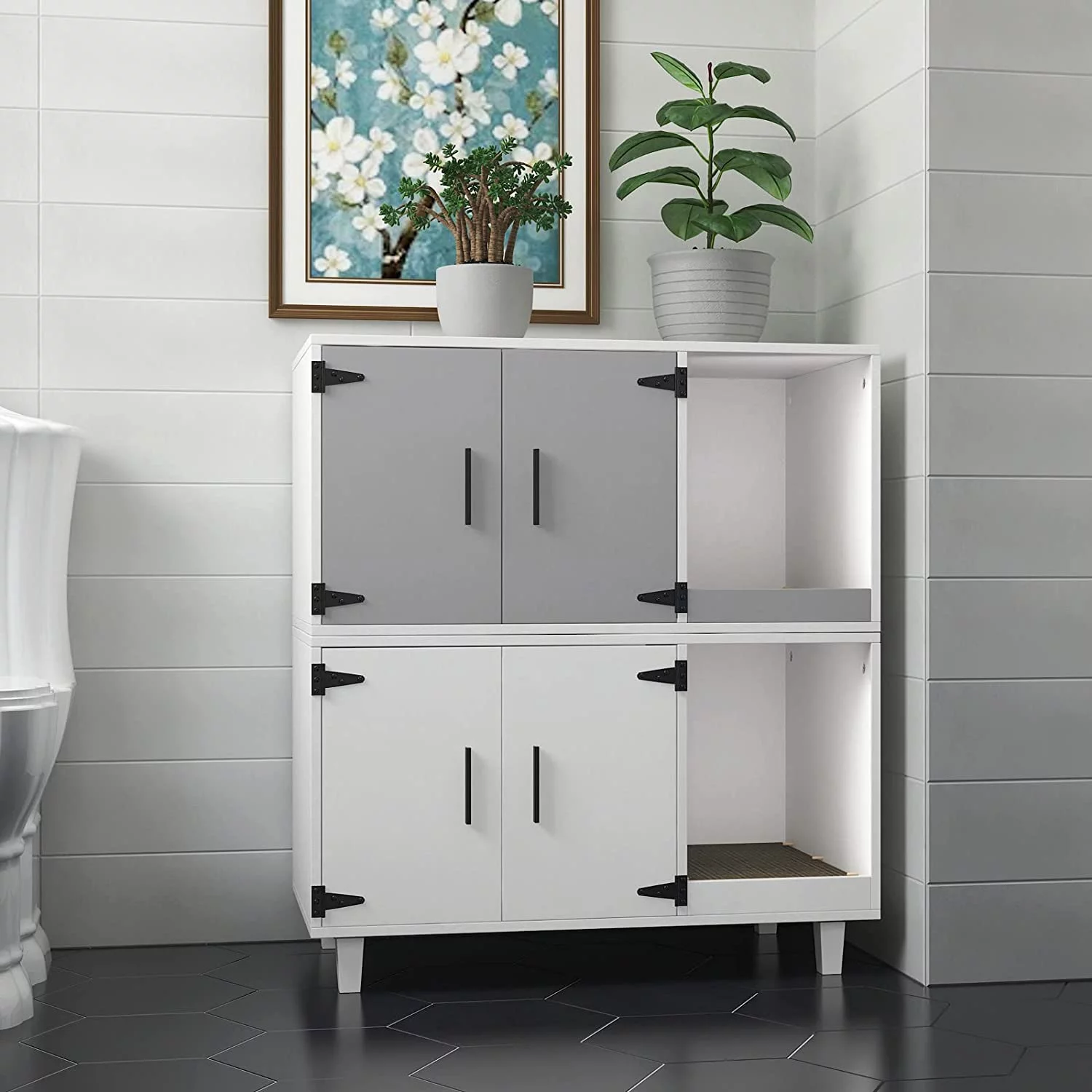 GDLF Pet Crate Cat Washroom Hidden Litter Box Enclosure as Table Nightstand with Scratch Pad,Stackable
