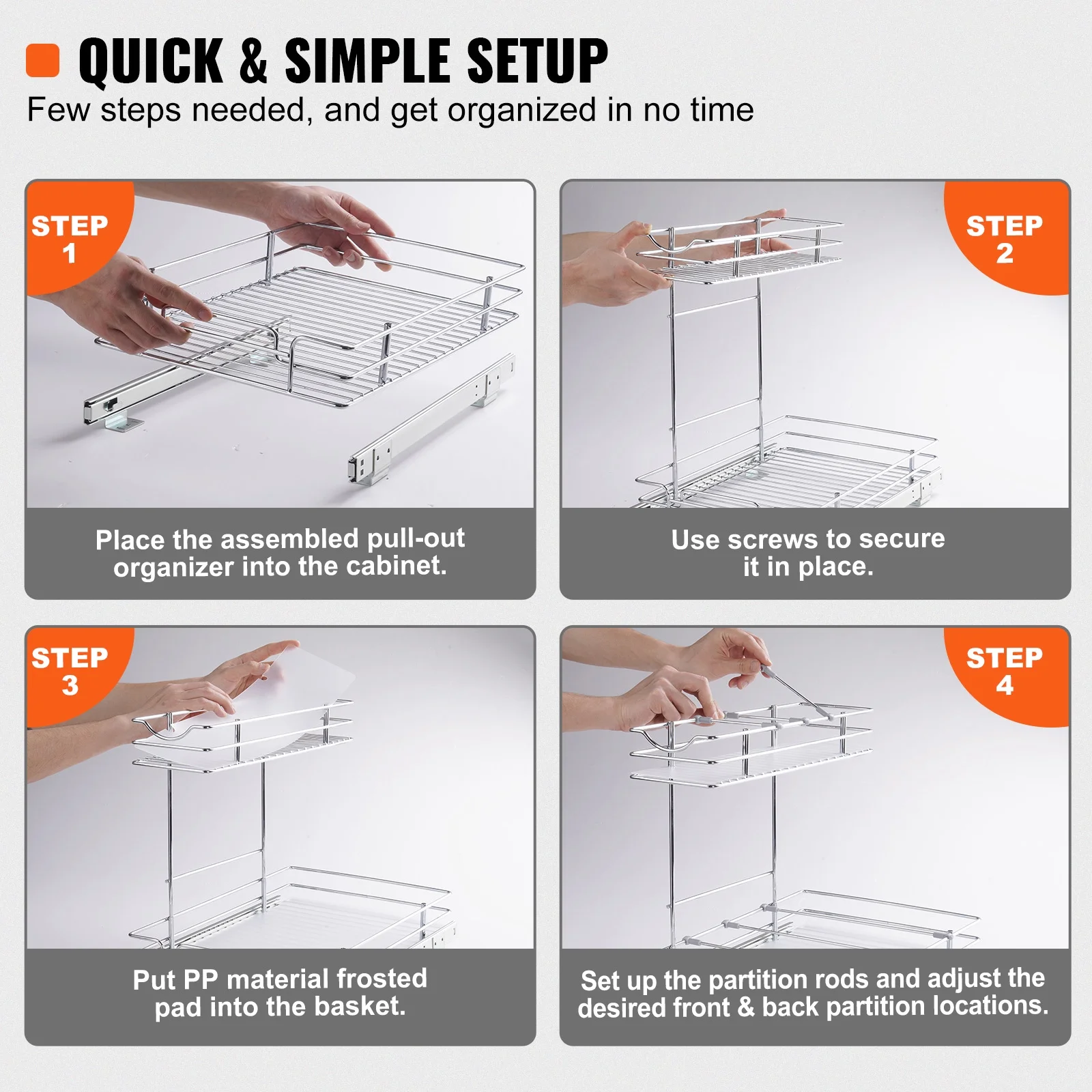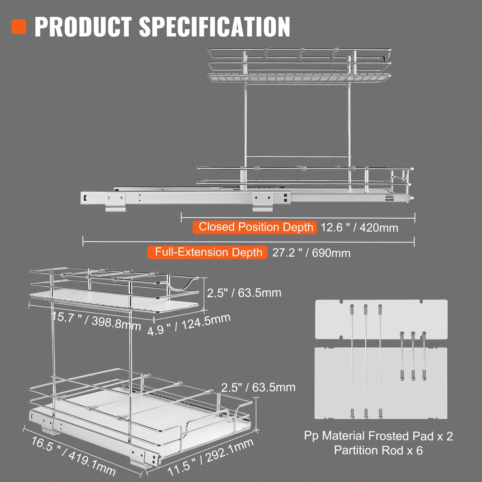 SKYSHALO 12x17 inch Drawer Basket 2-Tier Wire Pull Out Cabinet Under Sink Organizer