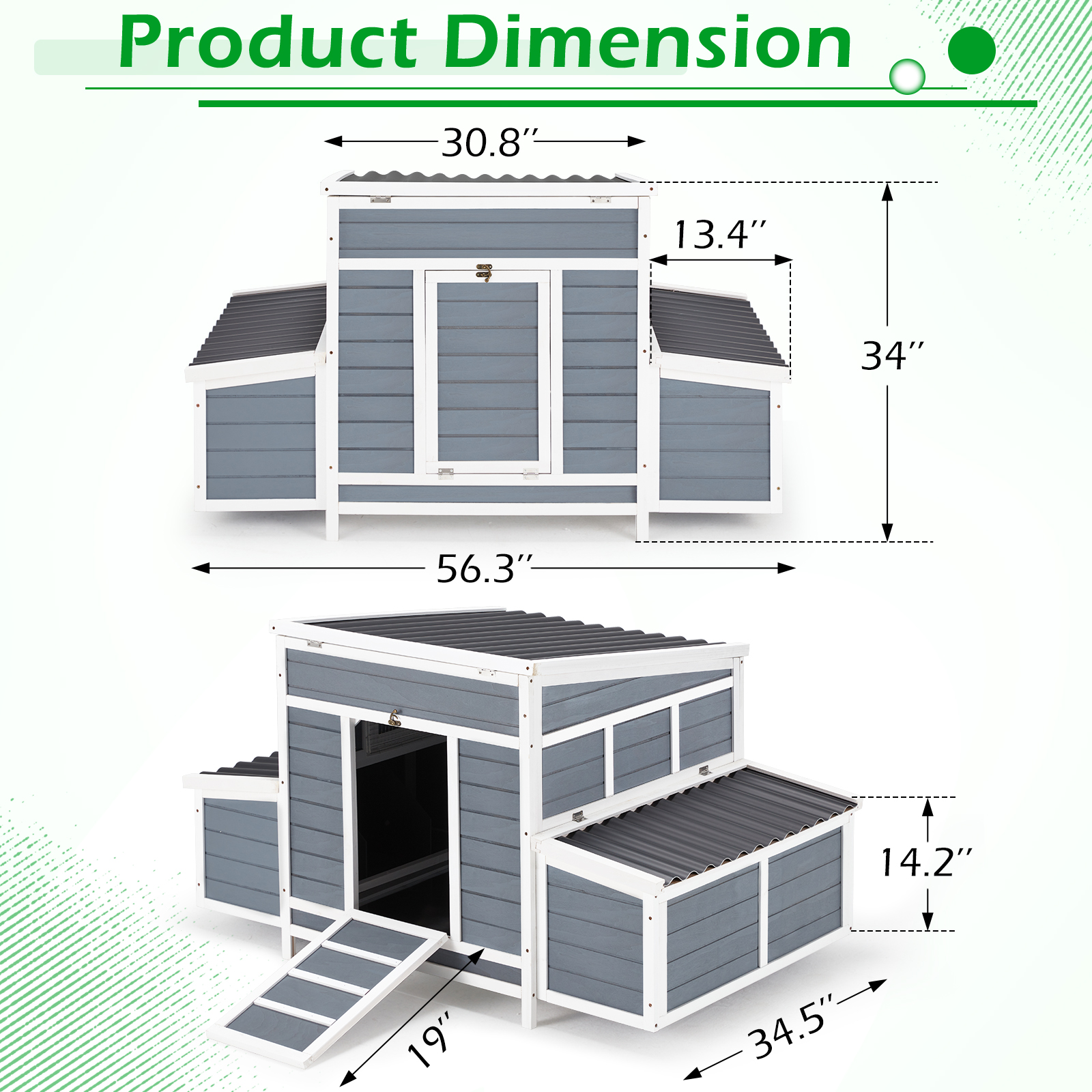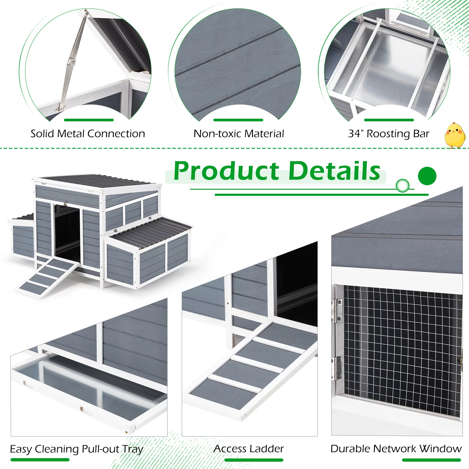 YODOLLA 123“ Large Wooden Chicken Coop with Run Wooden Hutch Poultry Cage Hen House with Nesting Boxes in Gray