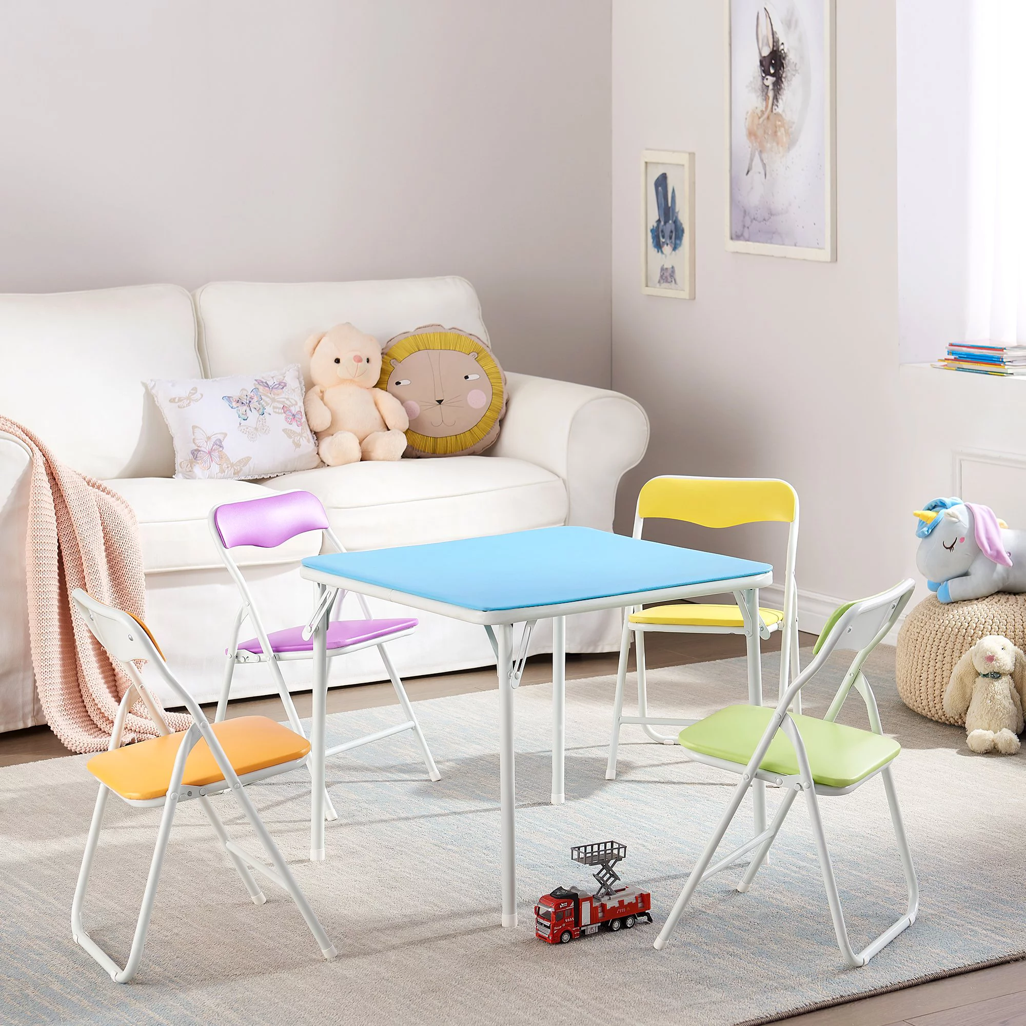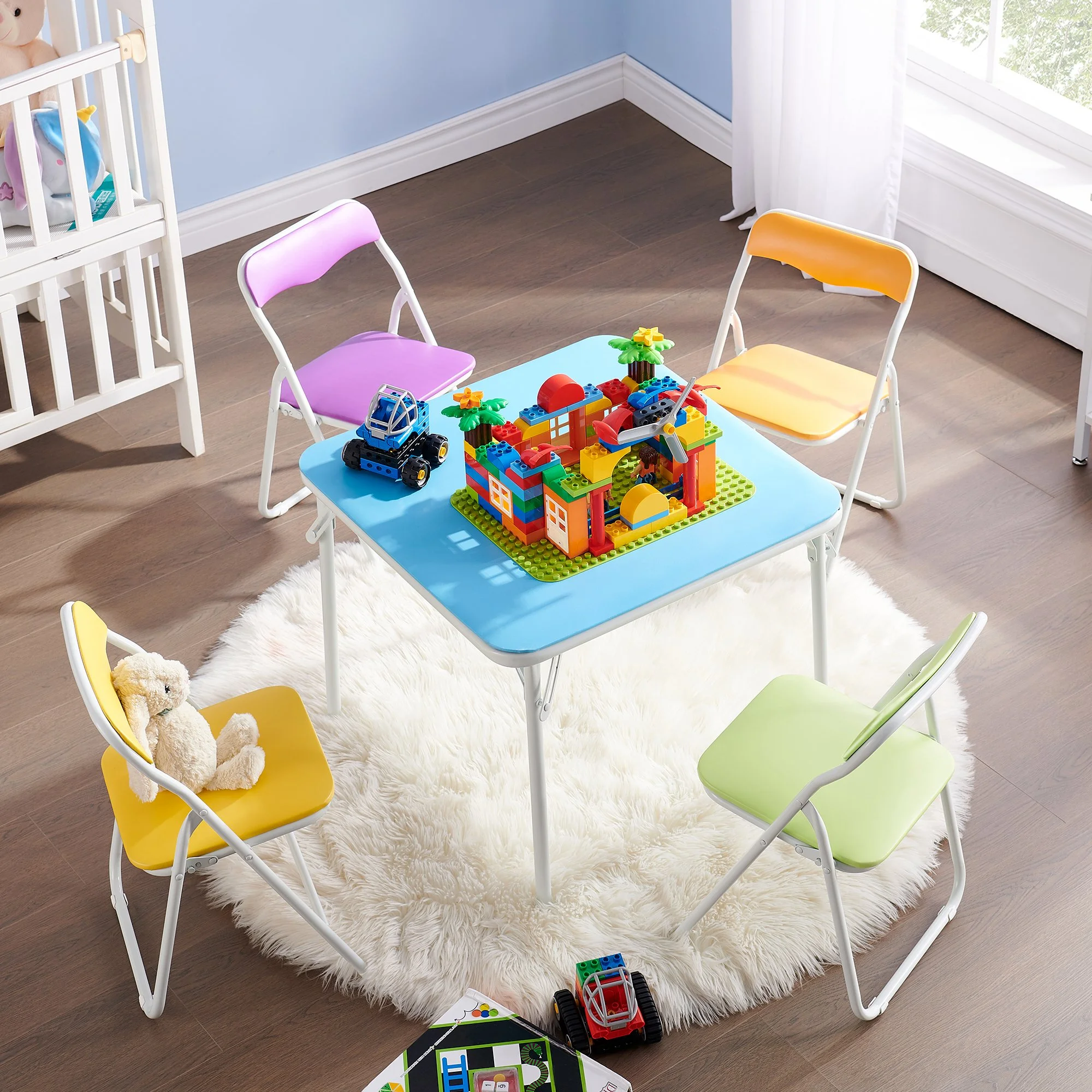 VECELO 5-piece Folding Table and Chair Set, Kids Colorful Activity Table with 4 Chairs