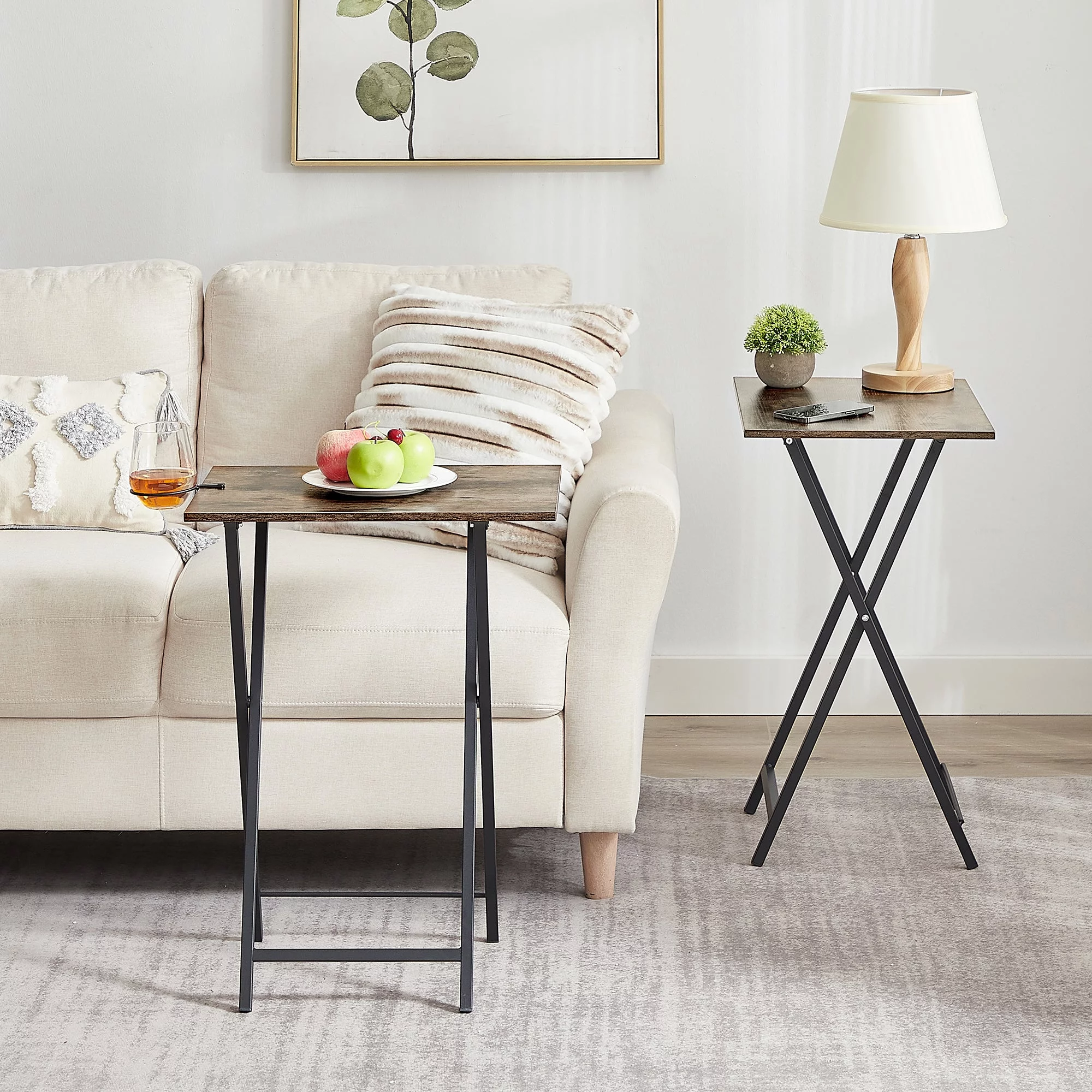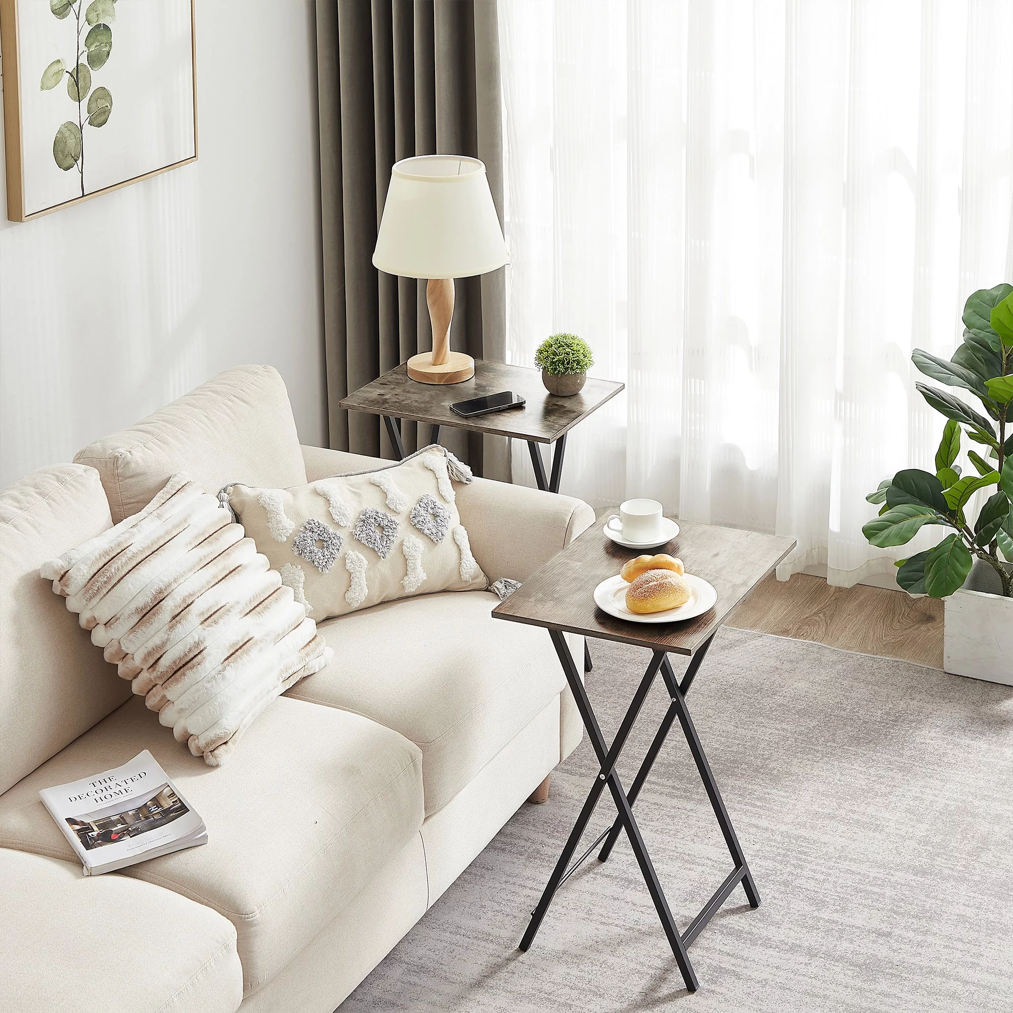 VECELO Folding TV Tray, Portable Dinner/Snack Table with Cup Holder, Set of 2, Gray