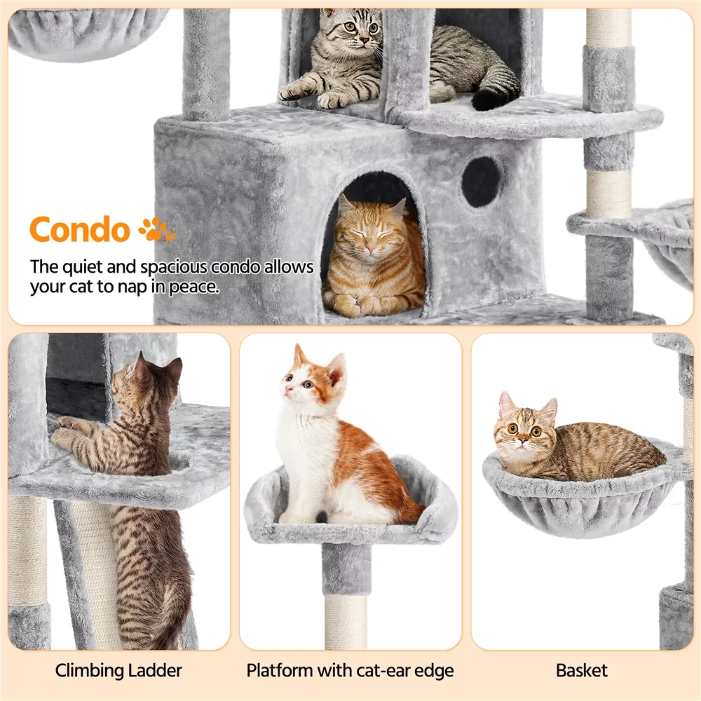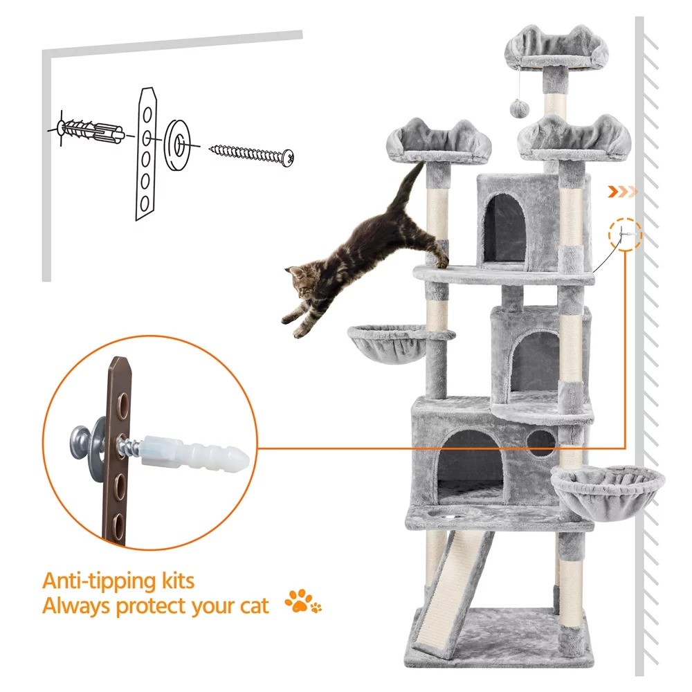 SmileMart 76.5"H Large Cat Tree Tower with 3 Condos Cozy Perches Dangling Ball, Light Gray