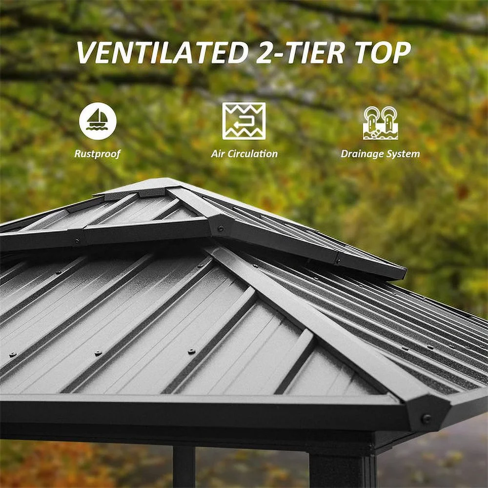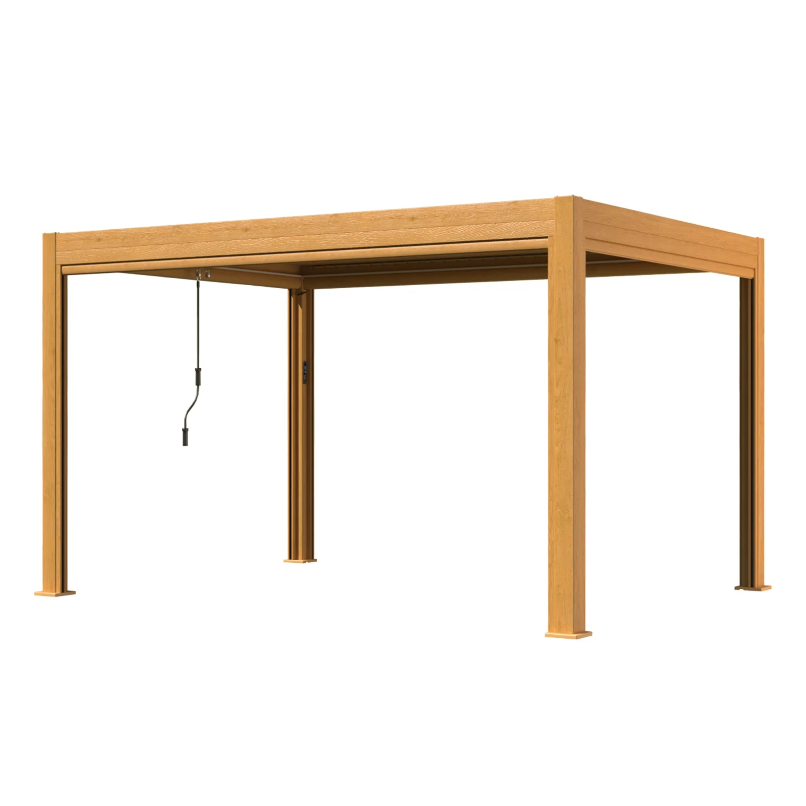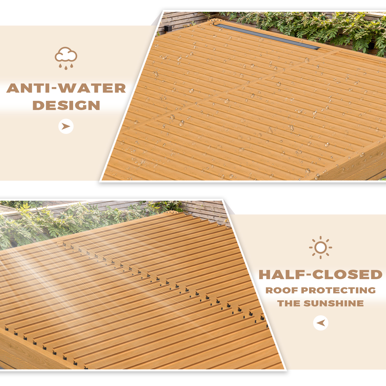 Richryce 10 ft. x 13 ft. Outdoor Louvered Pergola, Patio Pergola with with Auto Adjustable Aluminum Rainproof Roof, Wood