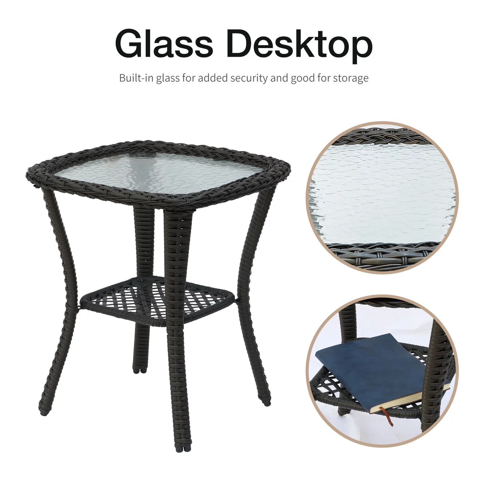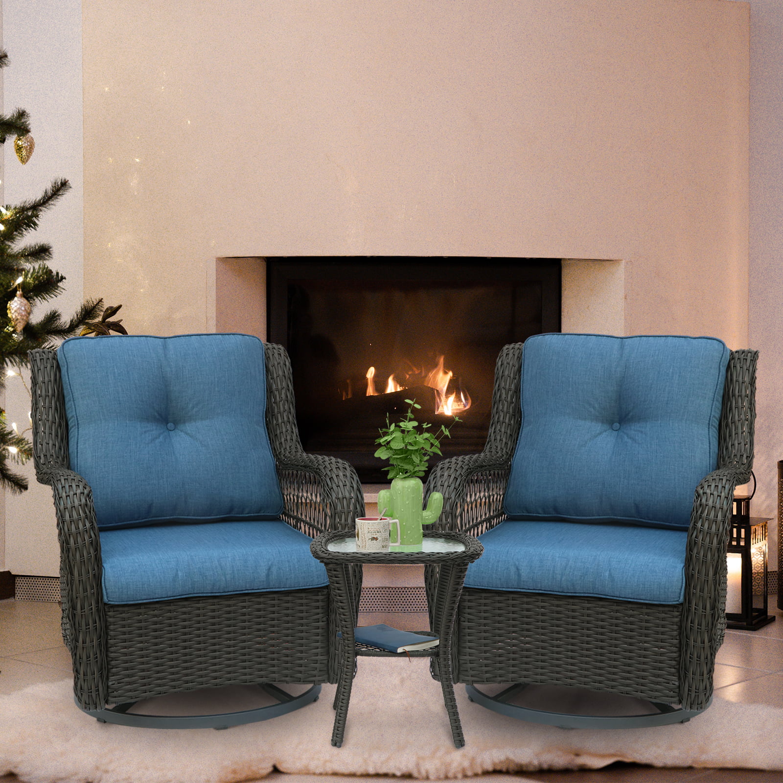 EURO SAKURA 3 PCS Outdoor Wicker Swivel Rocker Patio Set,360 Degree Swivel Rocking Rattan Chairs Patio Wicker Bistro Sets