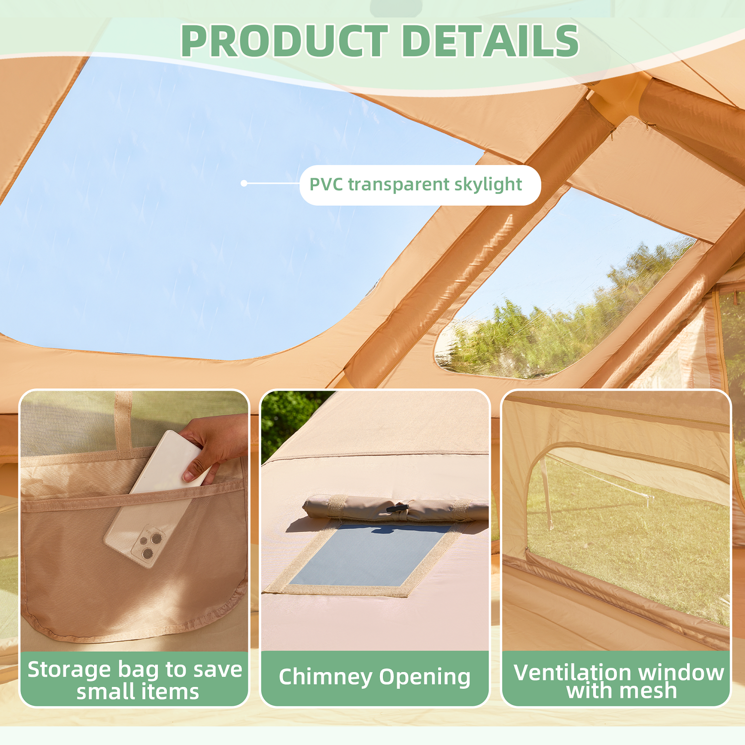 Richryce 13'x10' Inflatable Camping Tent, 130 SFT Air Tent, Glamping Tents, Outdoor Cabin Tent with Pump, Carrying Bag