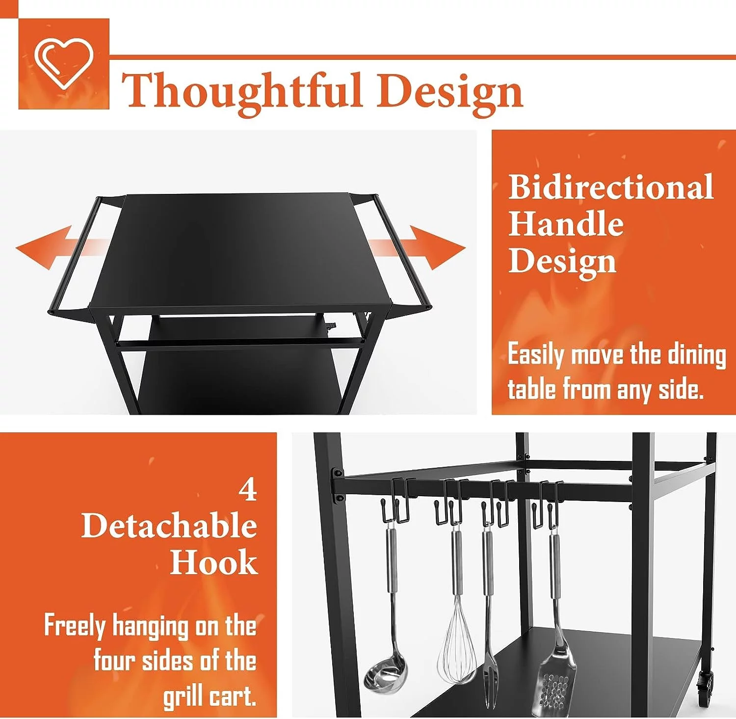 RAXSINYER Movable Grill Table, Double-Shelf Outdoor BBQ Grill Cart, Rolling Kitchen Dining Cart, Black