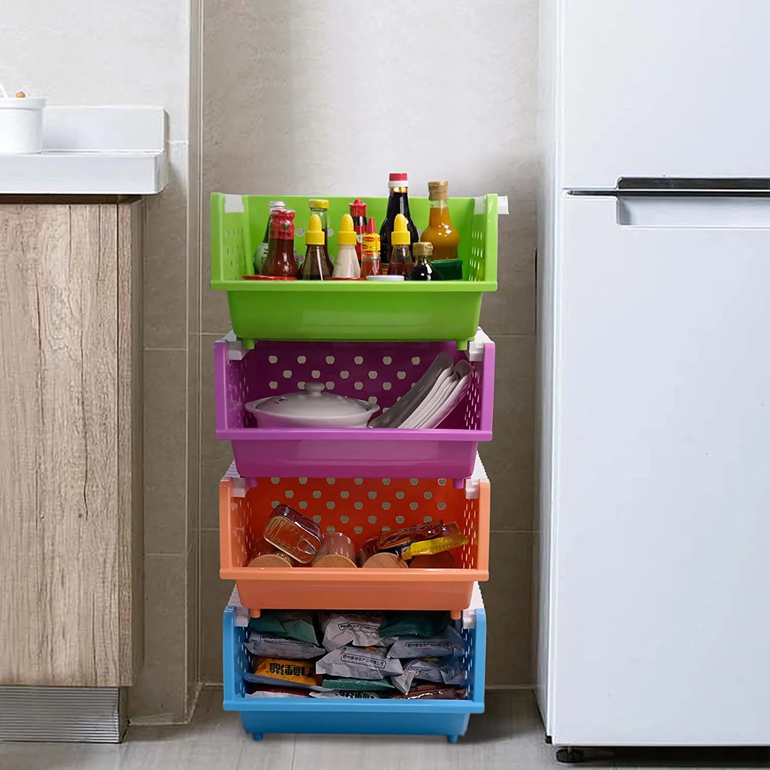 BSL 4-Pack Plastic Stacking Storage Basket, Stackable Organizer Bin, Gray