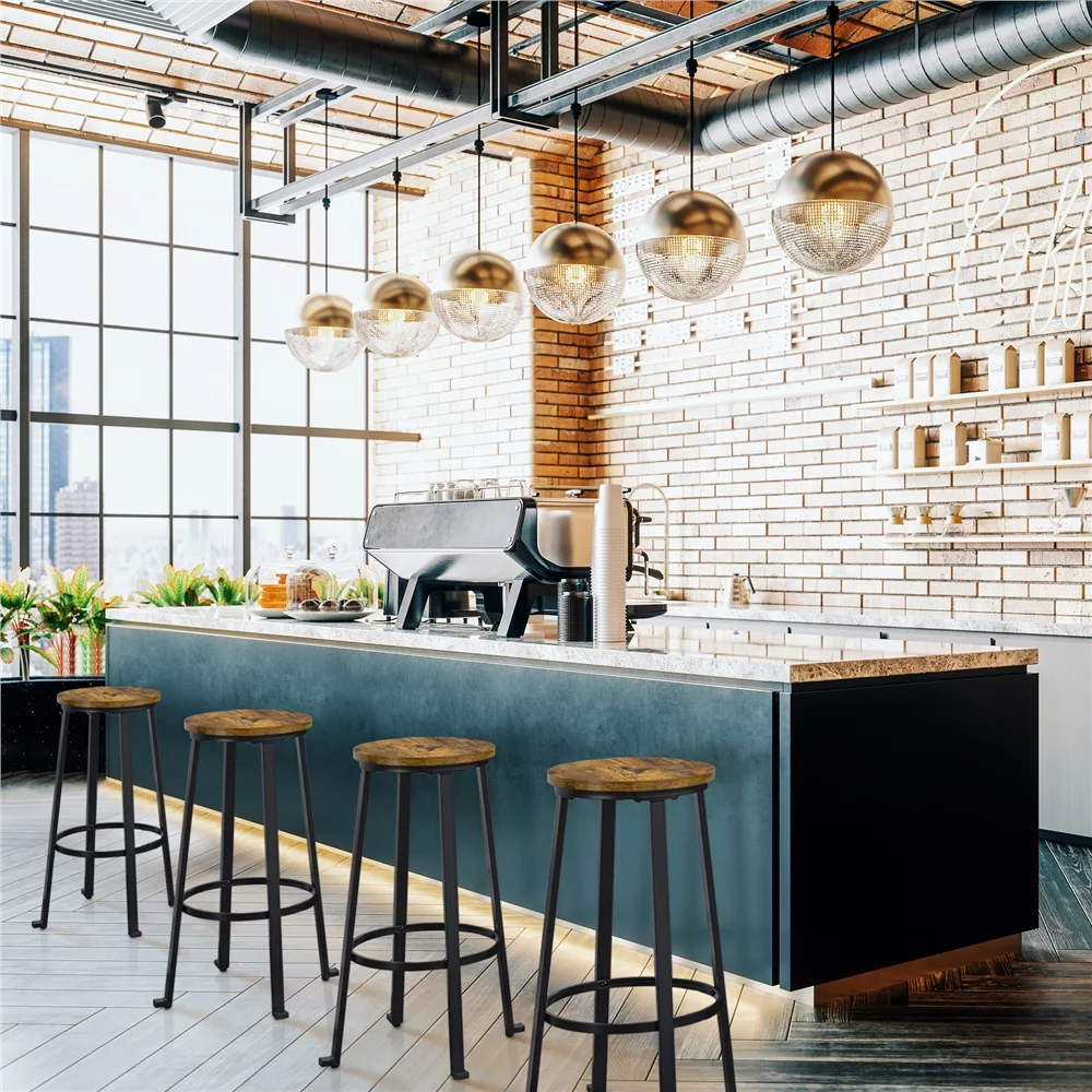 Yaheetech 2pcs 29.5'' H Pub Height Stools Bar Stools with Metal Frame and Round Top, Rustic Brown