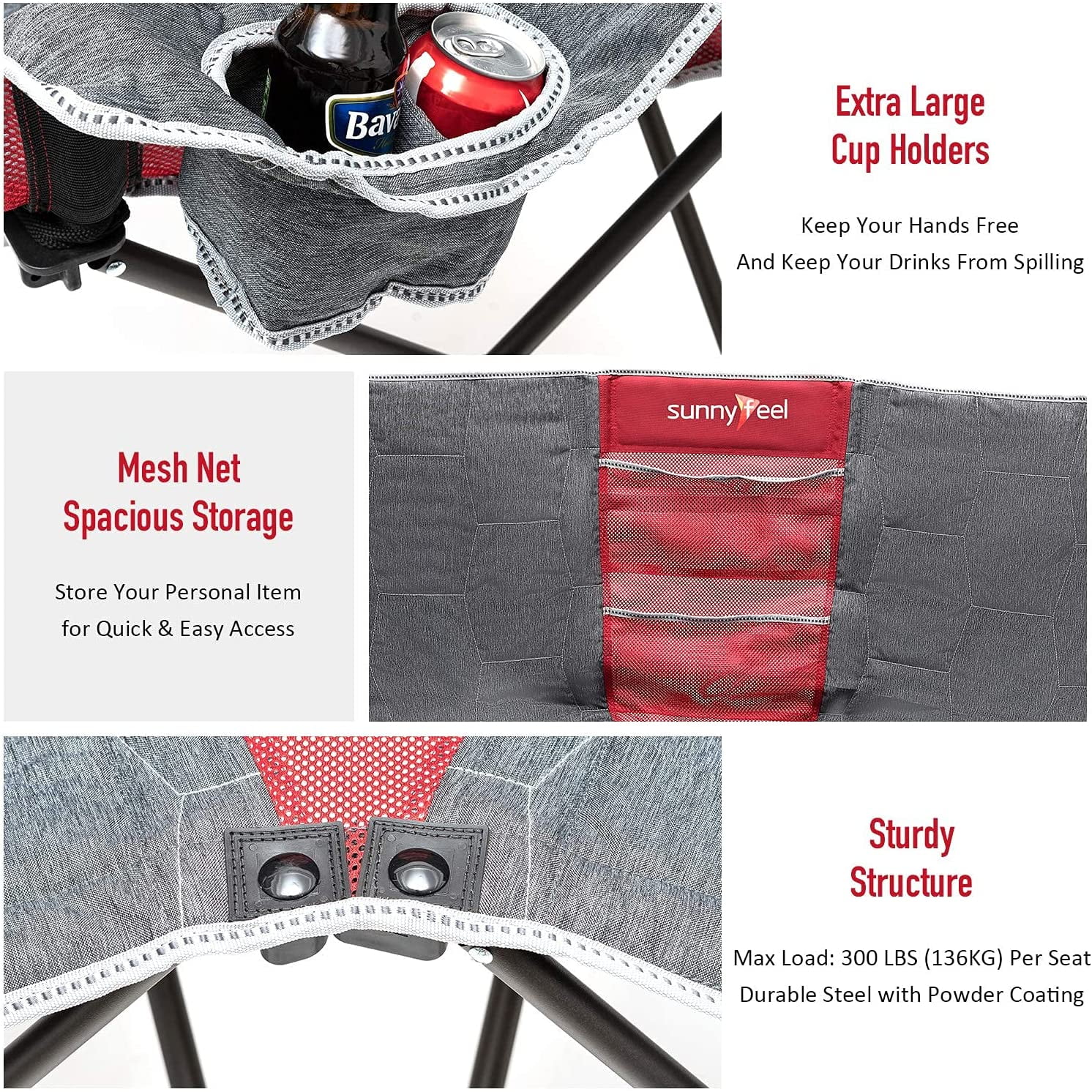 SunnyFeel Double Camping Chair Folding Loveseat Oversized for 2 Person (Gray)