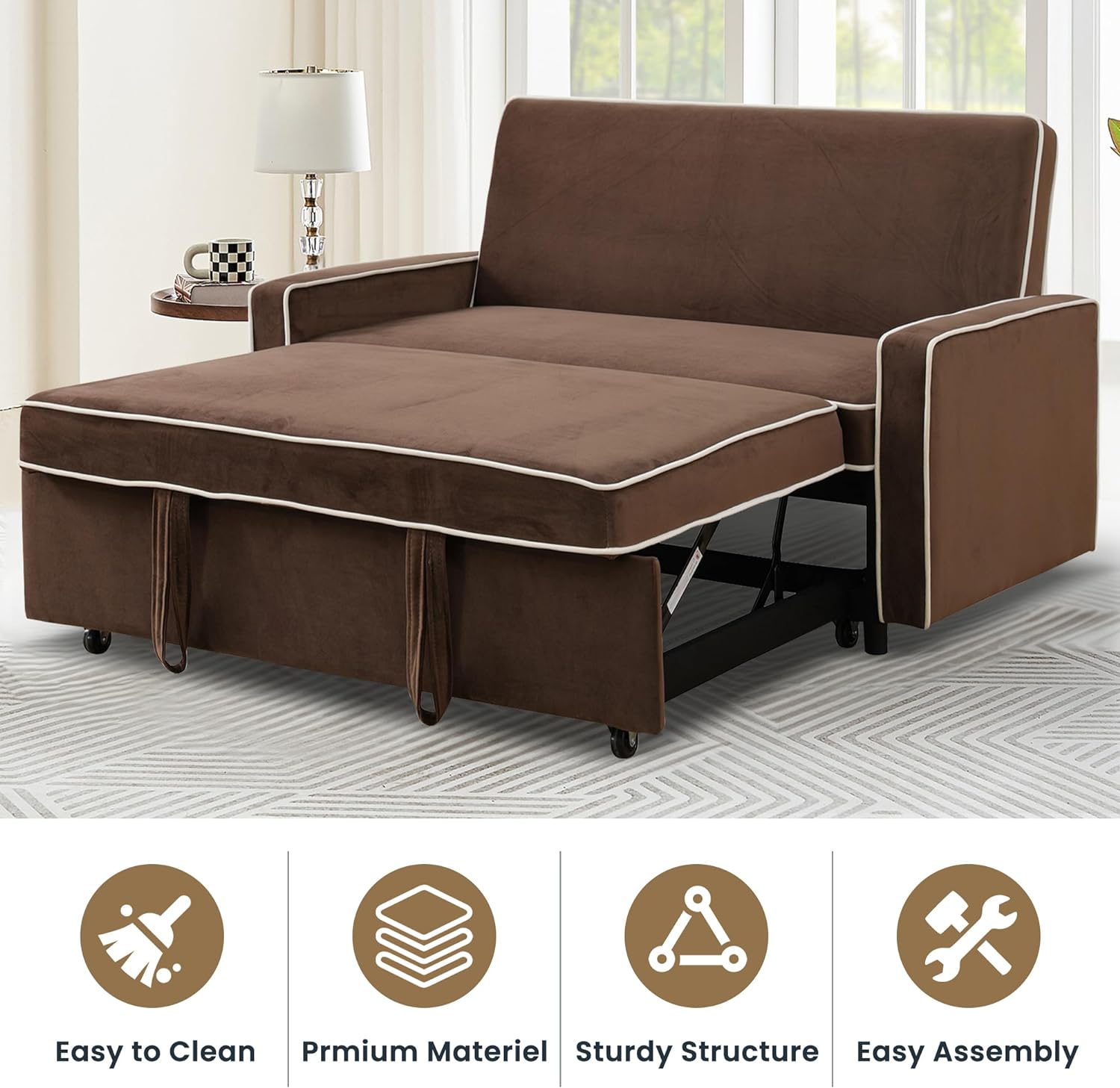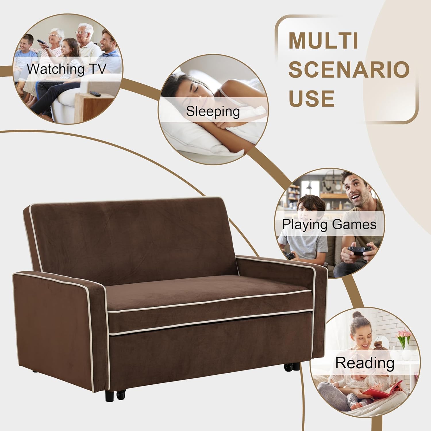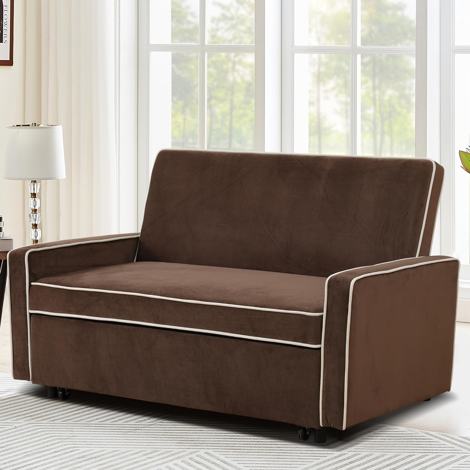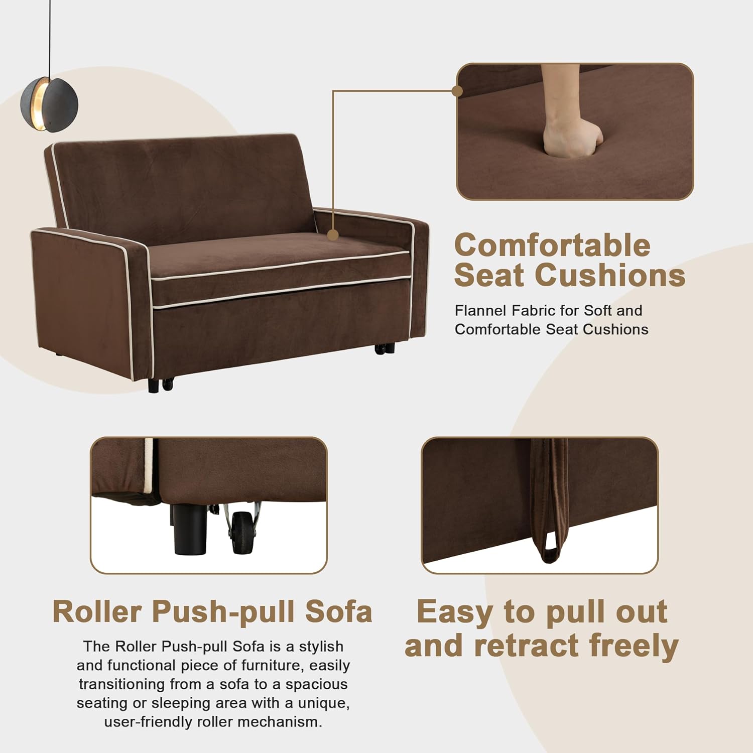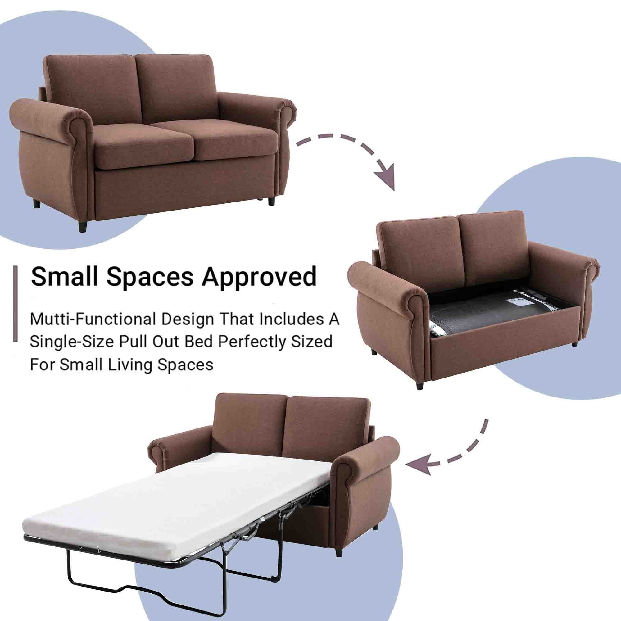 57.5" Pull Out Sofa Bed, Loveseat Sleeper with Twin Size Memory Mattress, Pull Out Couch Bed for Living Room Spaces, Brown