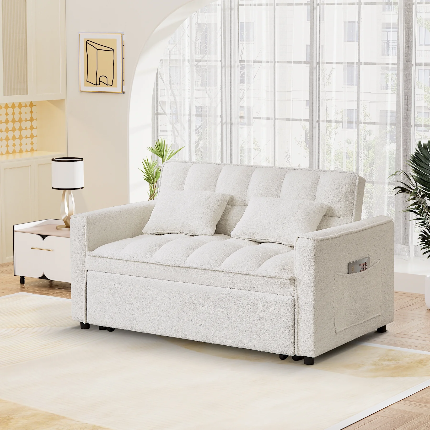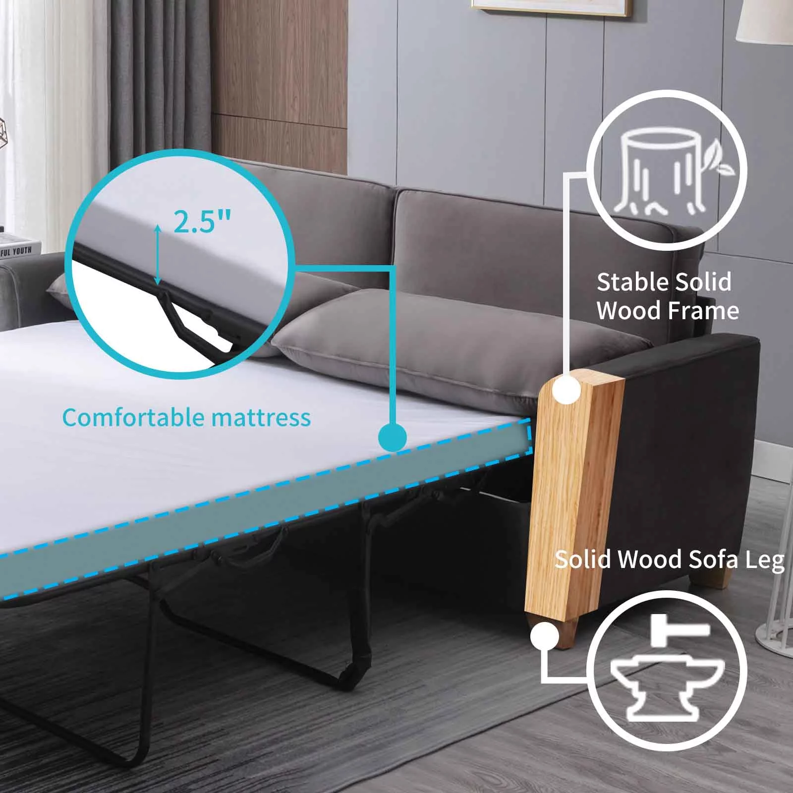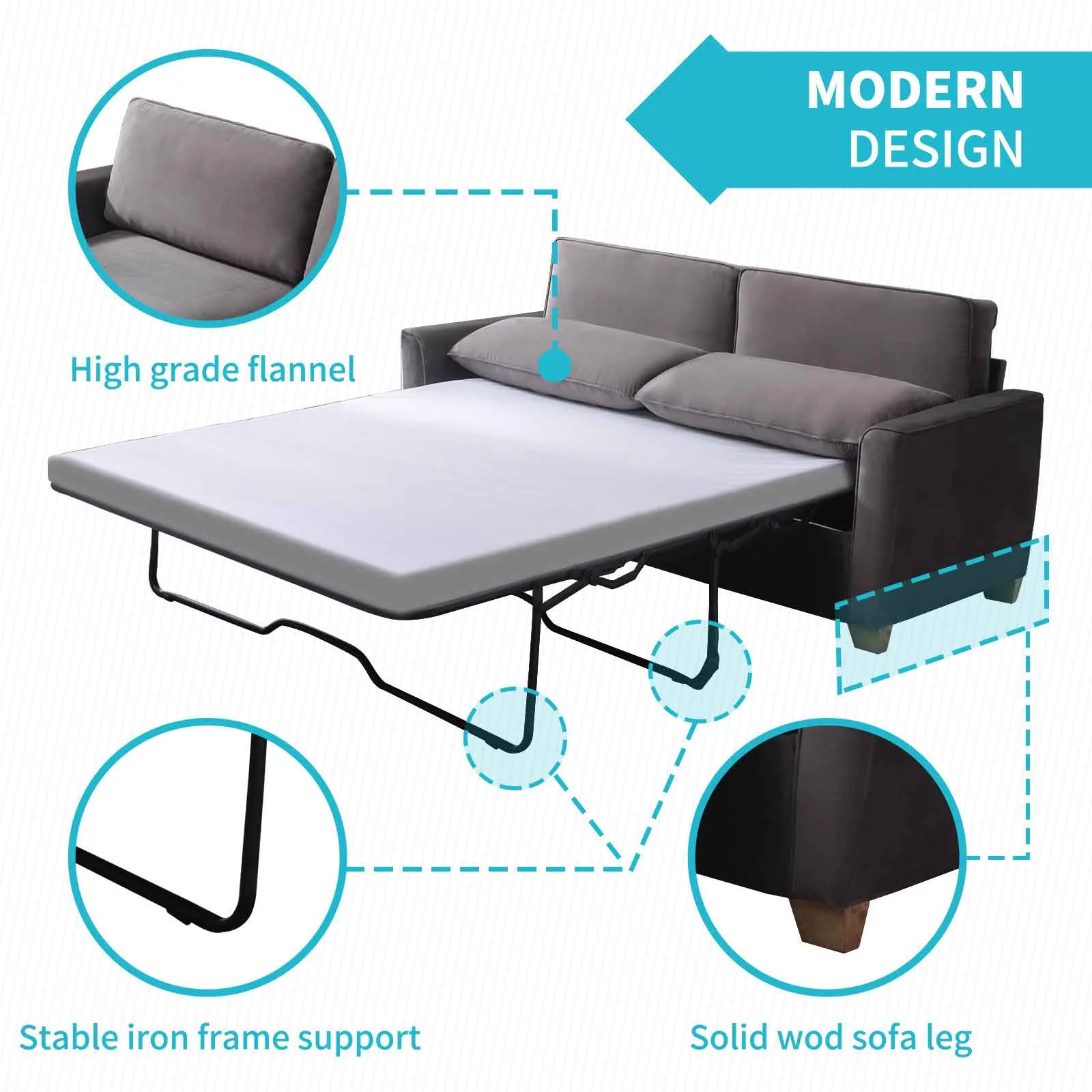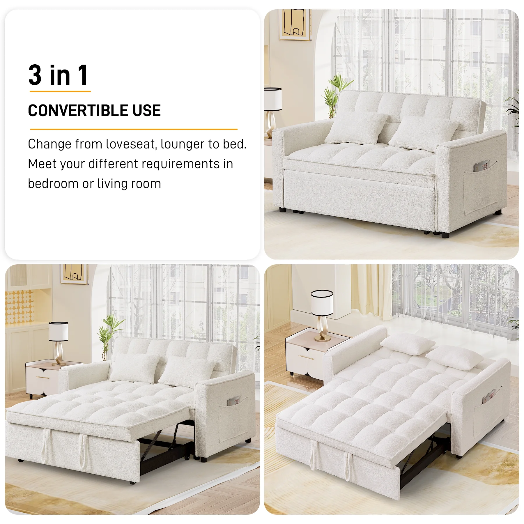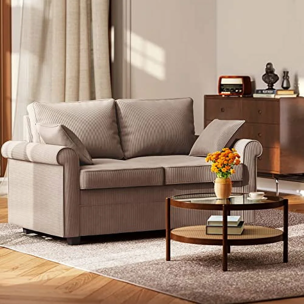 57.5" Pull Out Sofa Bed, Loveseat Sleeper with Twin Size Memory Mattress, Pull Out Couch Bed for Living Room Spaces, Brown