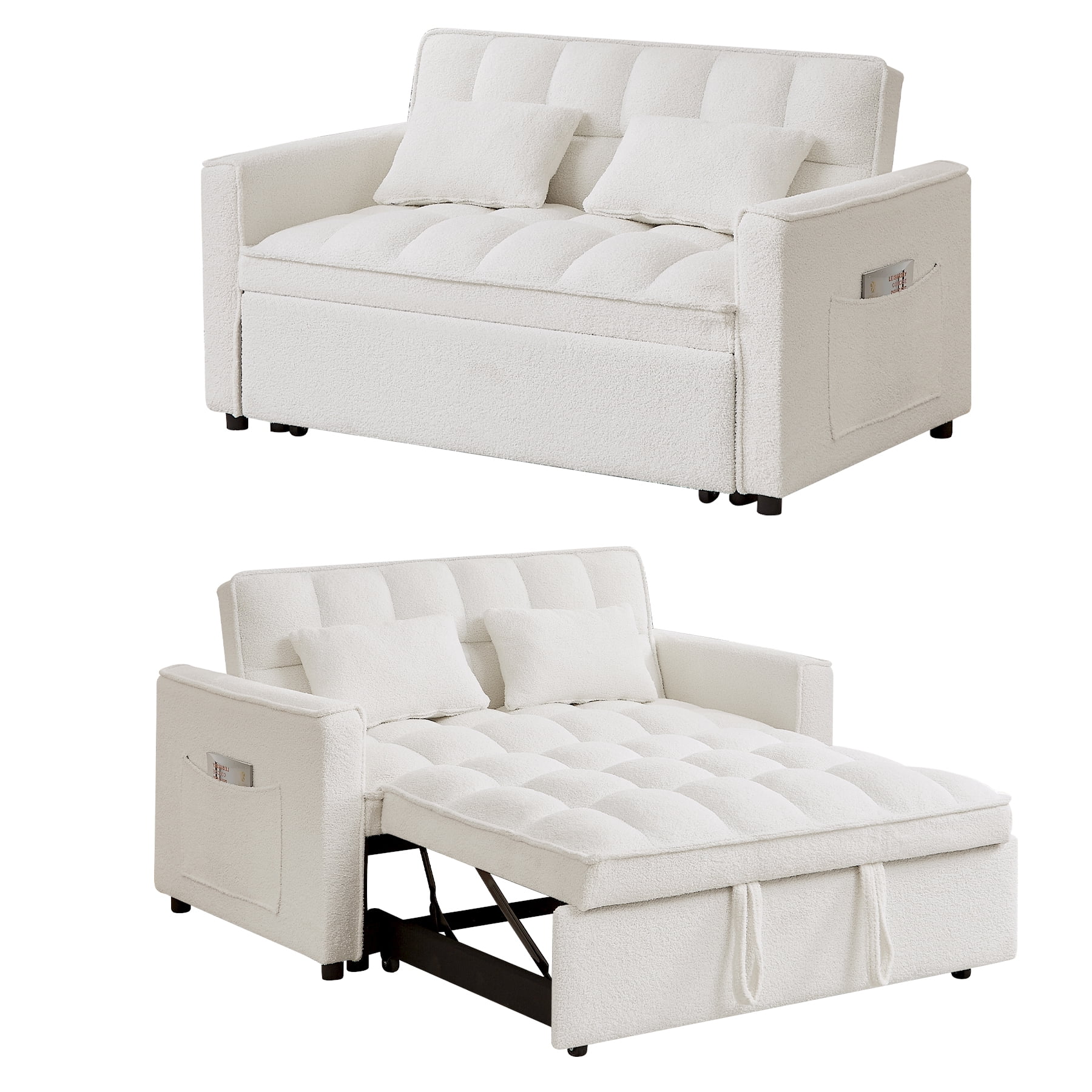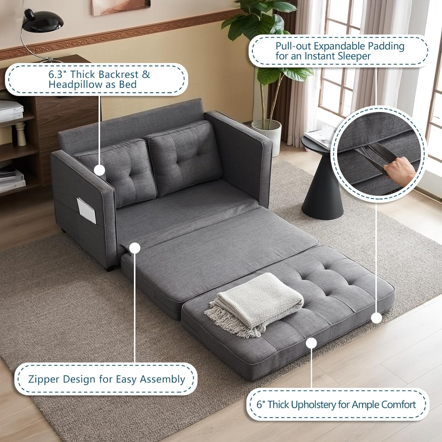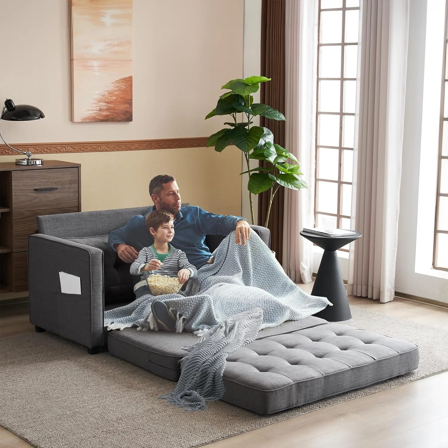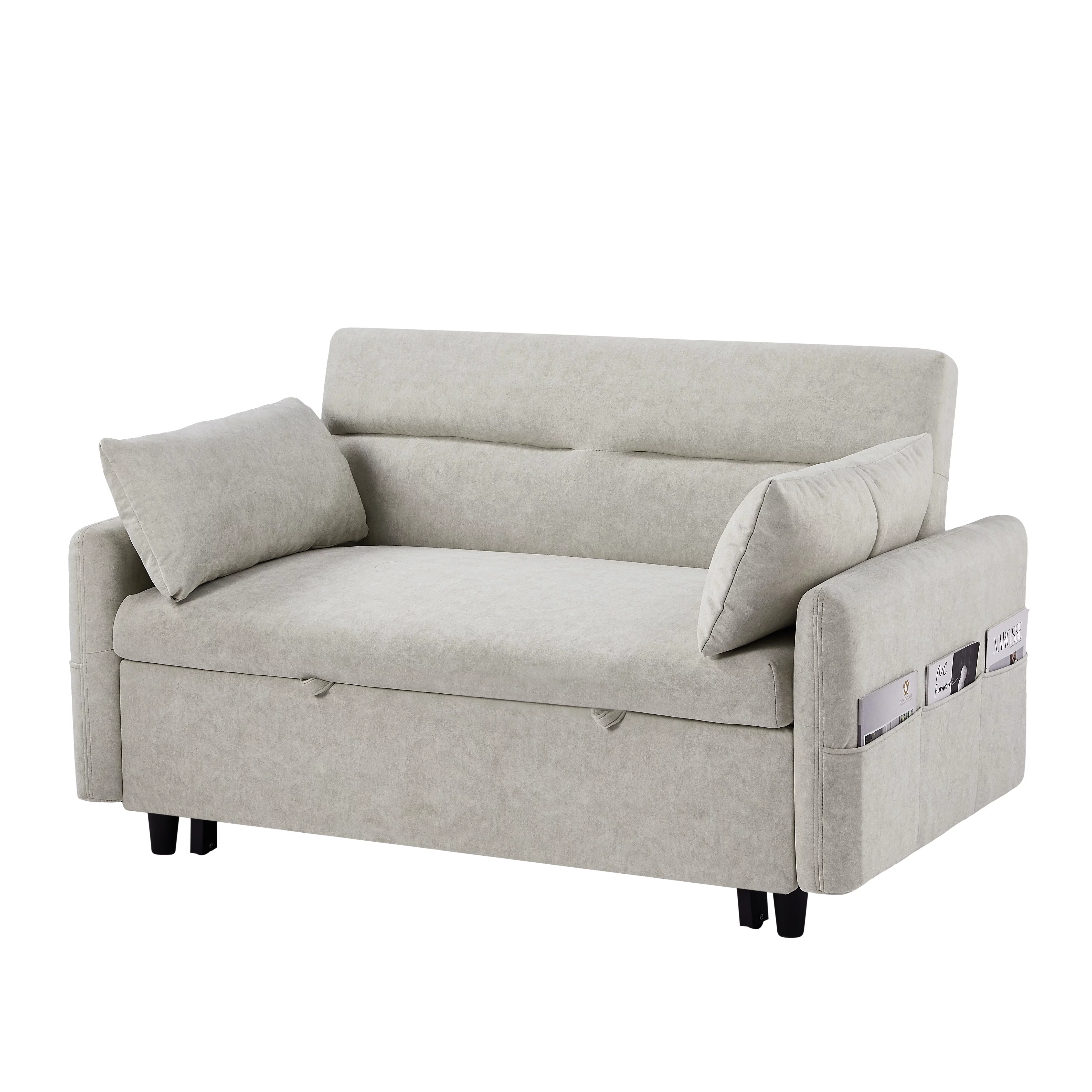 57.5" Pull Out Sofa Bed, Loveseat Sleeper with Twin Size Memory Mattress, Pull Out Couch Bed for Living Room Spaces, Brown