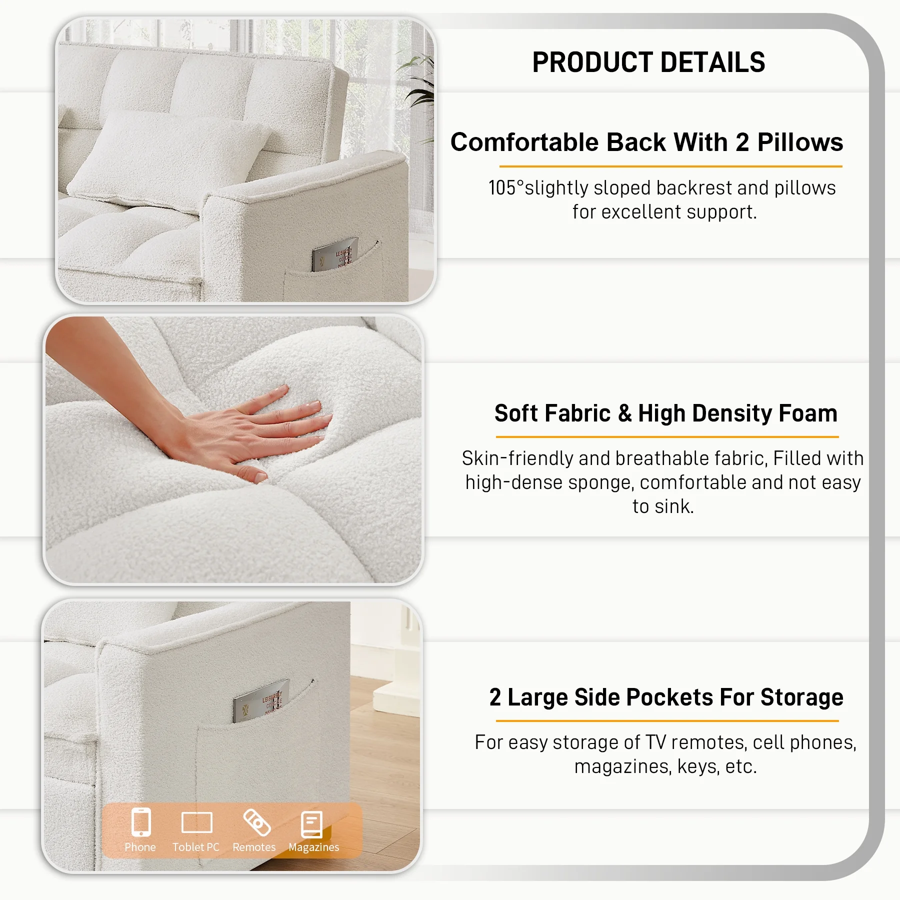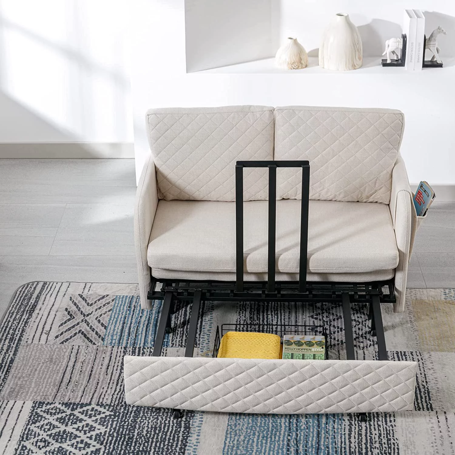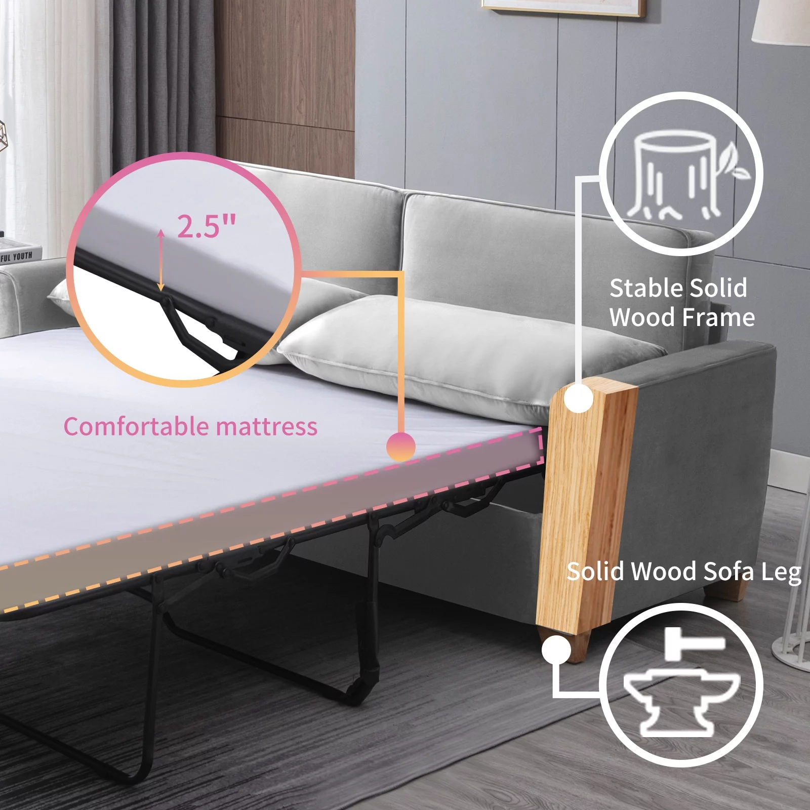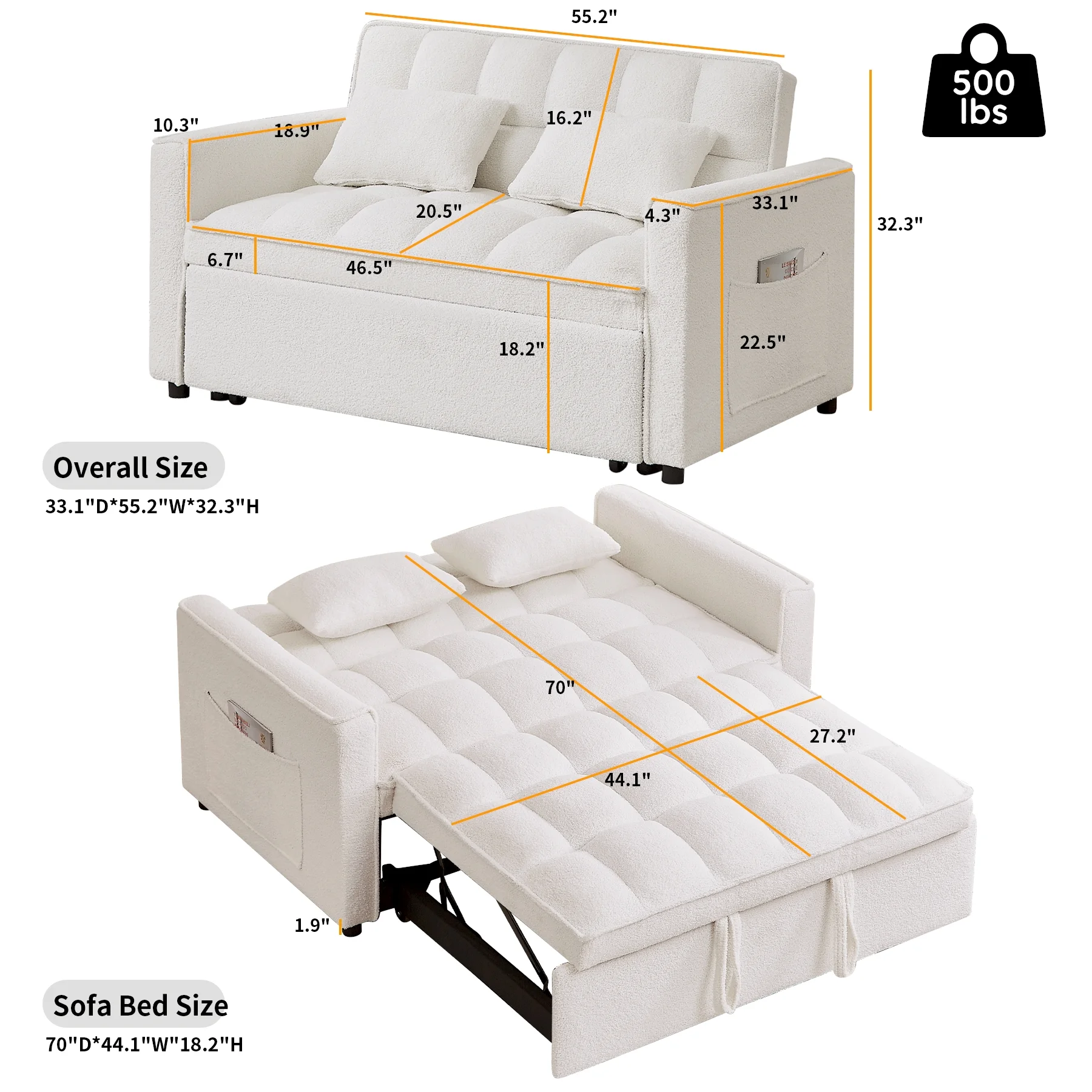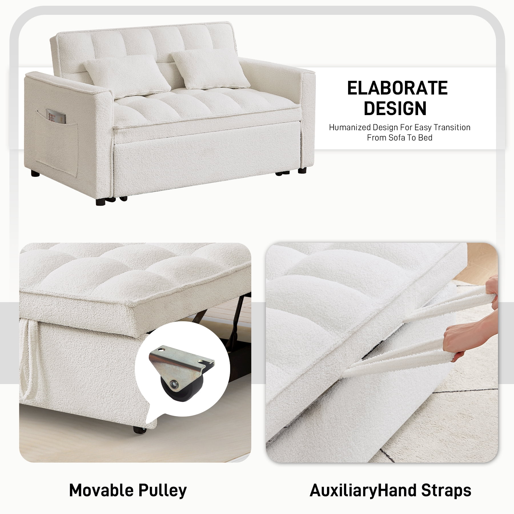 57.5" Pull Out Sofa Bed, Loveseat Sleeper with Twin Size Memory Mattress, Pull Out Couch Bed for Living Room Spaces, Brown