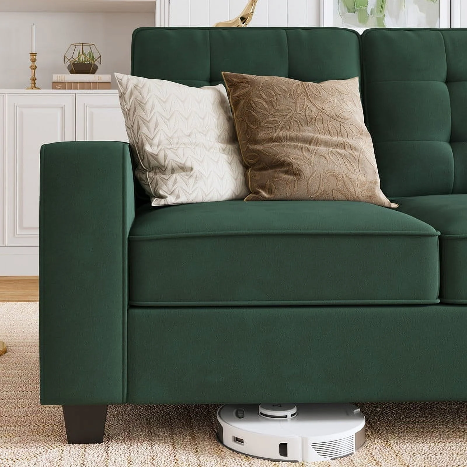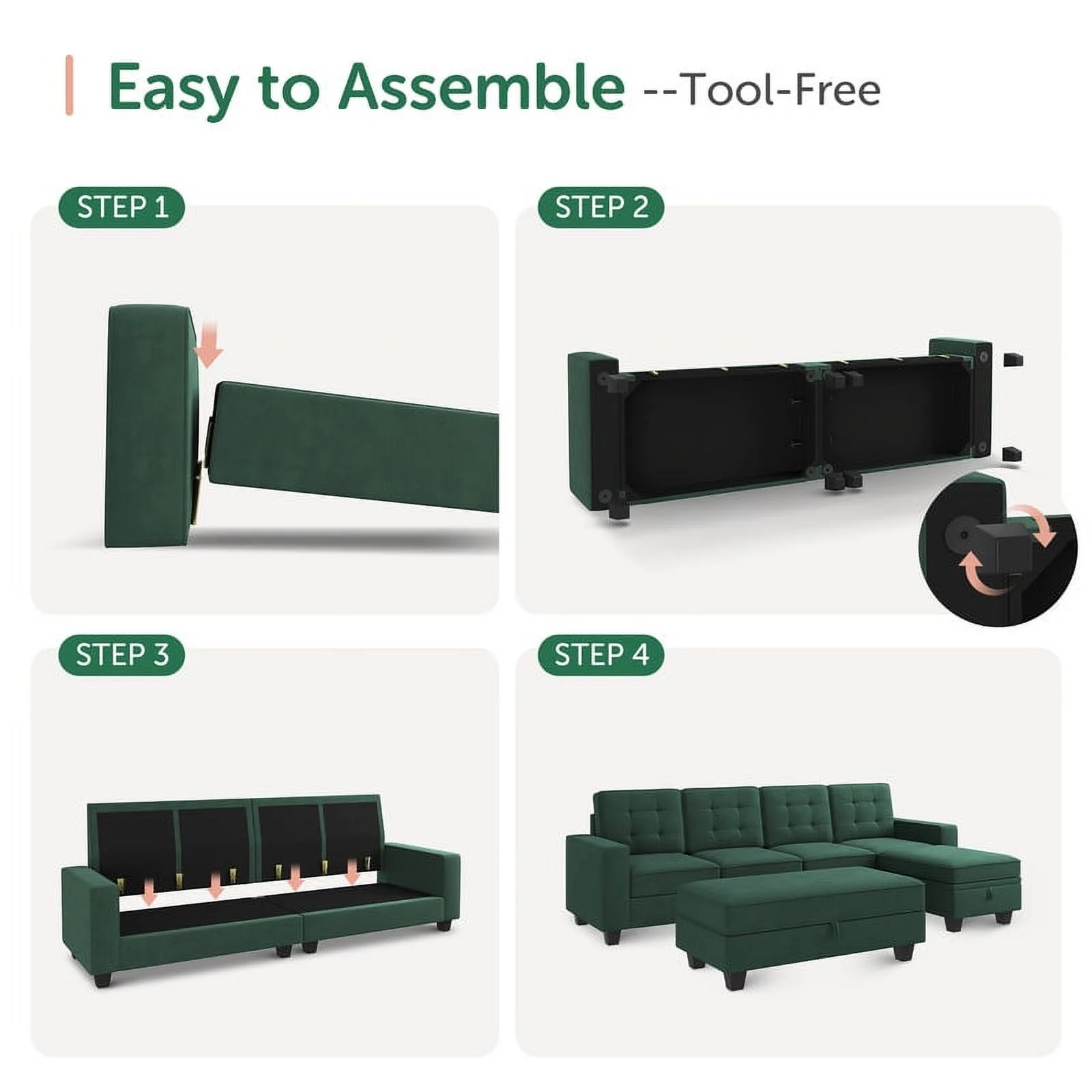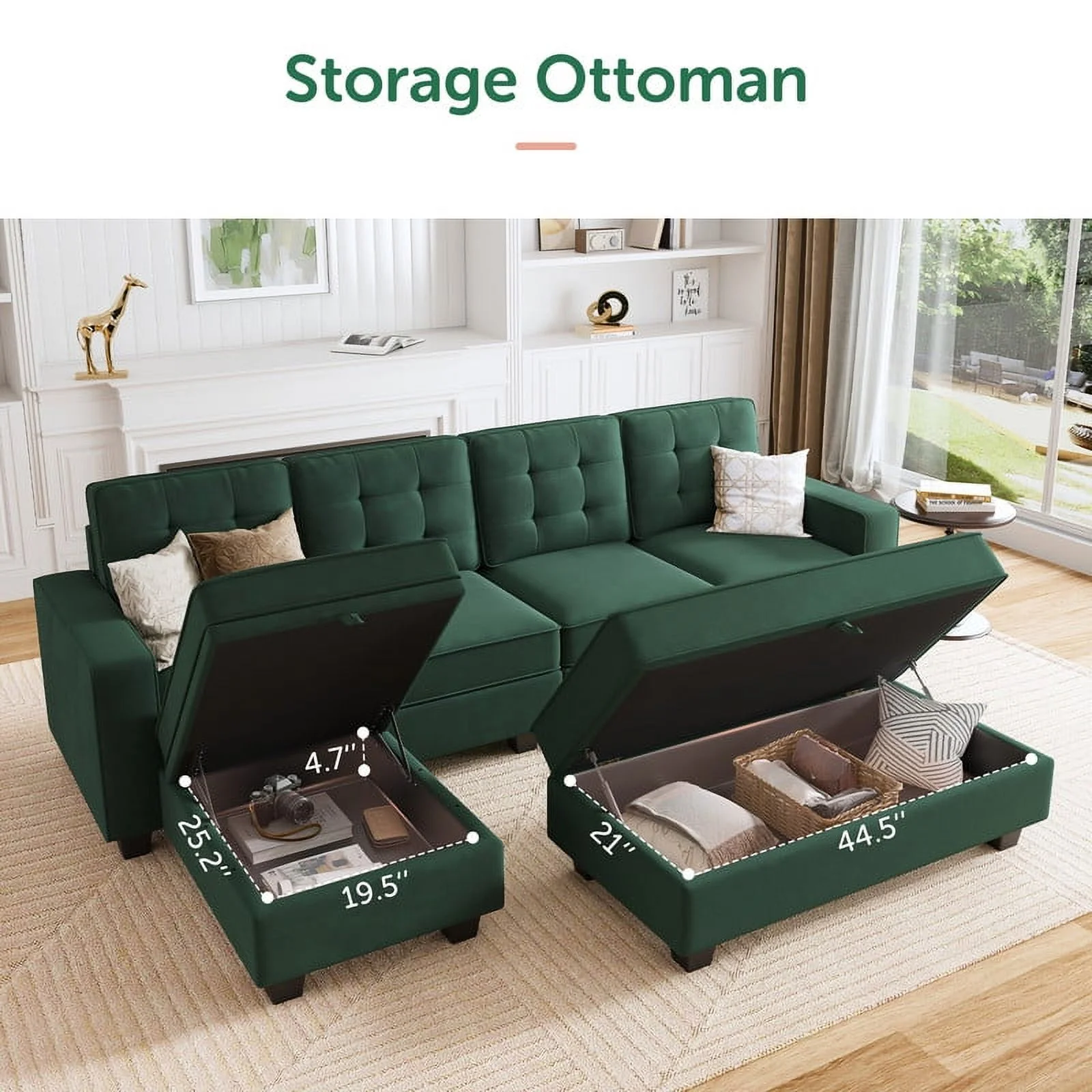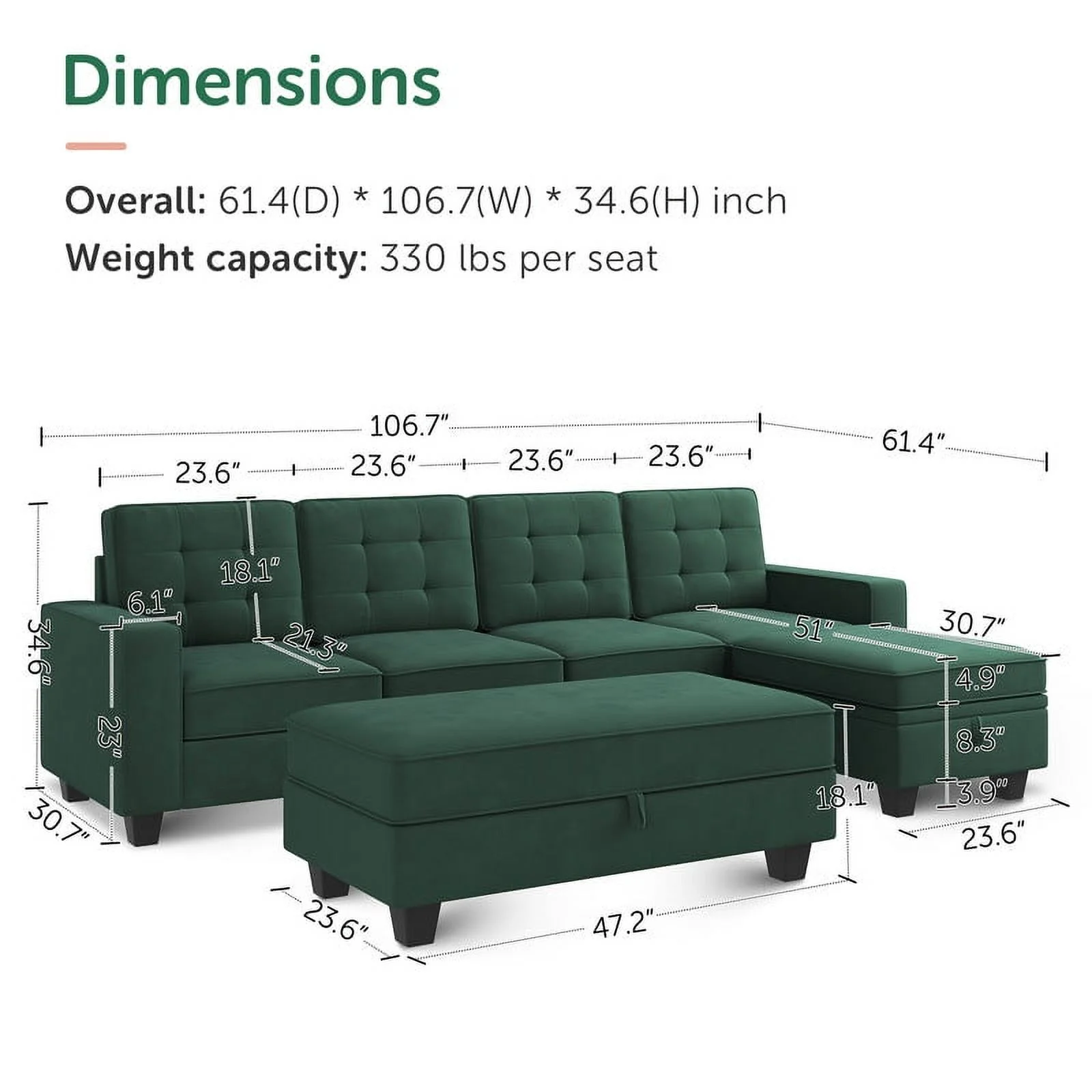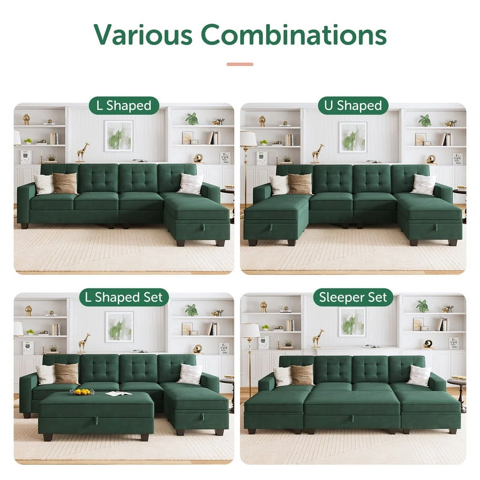 HONBAY Contemporary Plush Sectional Sleeper Sofa Couch with Storage Ottoman, Dark Green
