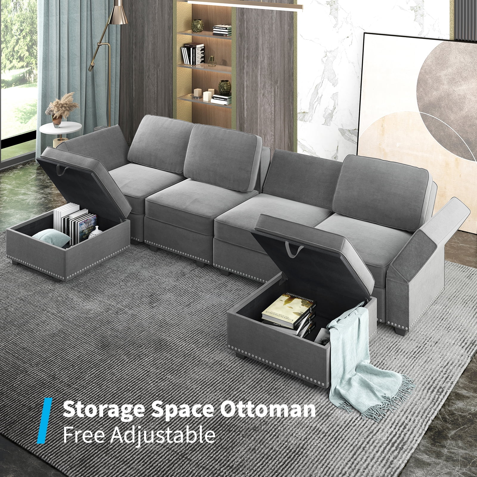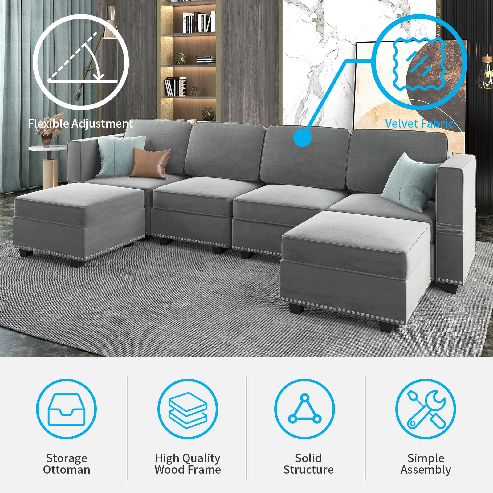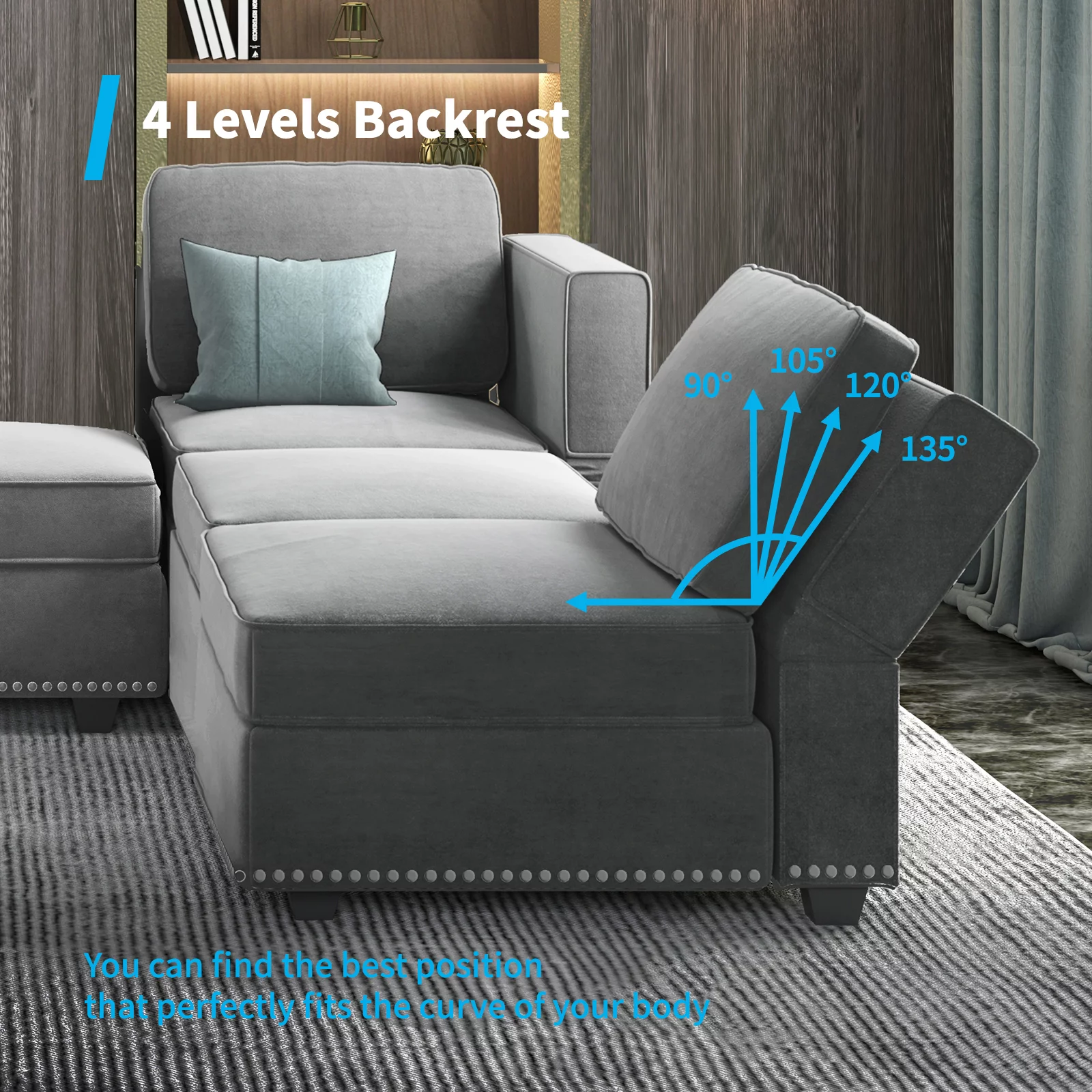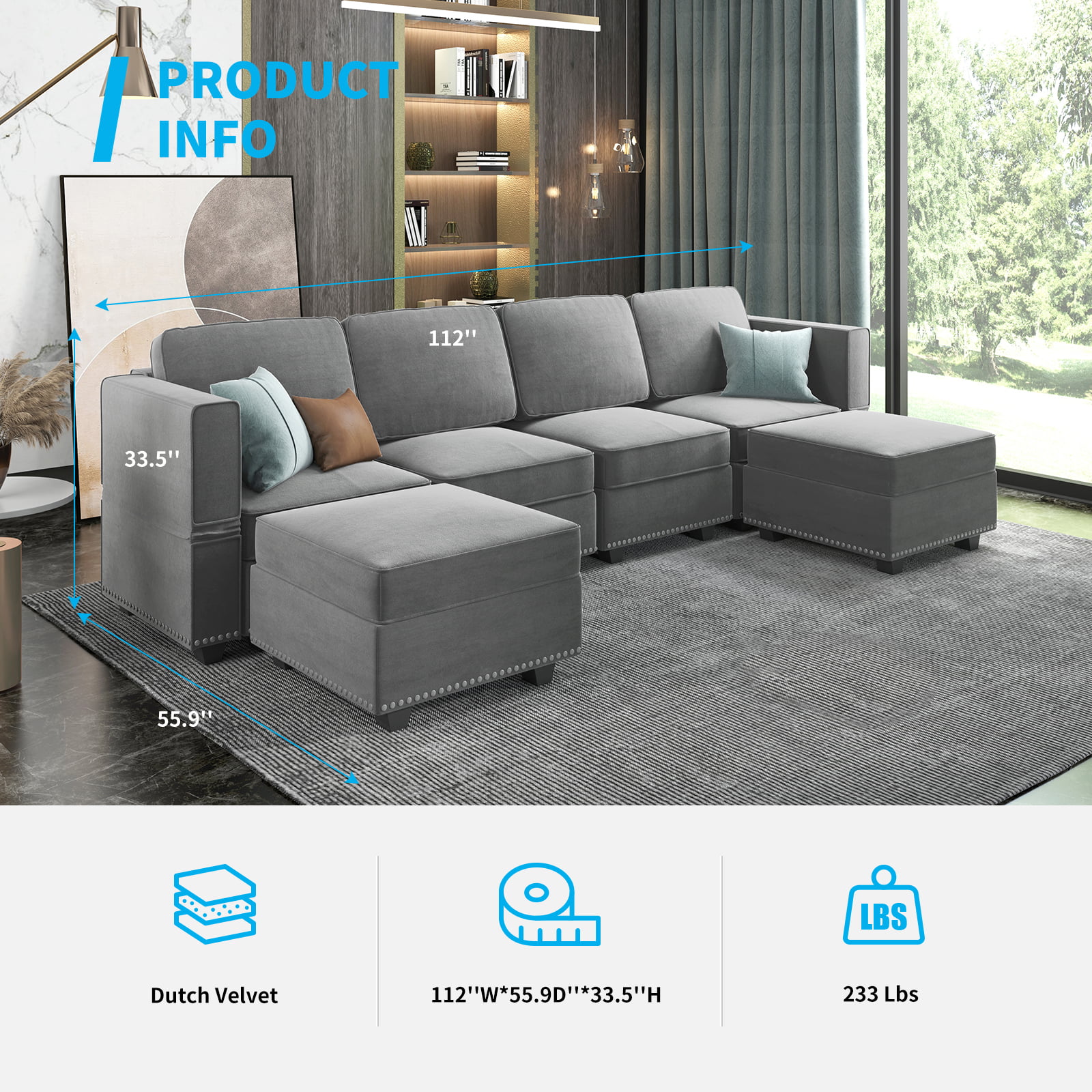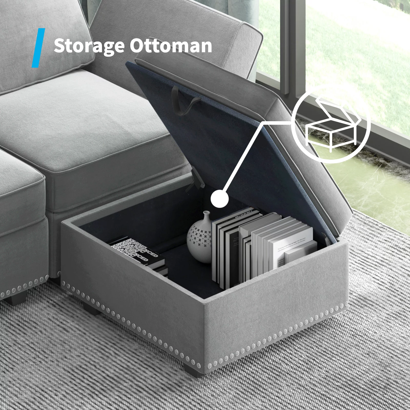 HONBAY Contemporary Plush Sectional Sleeper Sofa Couch with Storage Ottoman, Dark Green