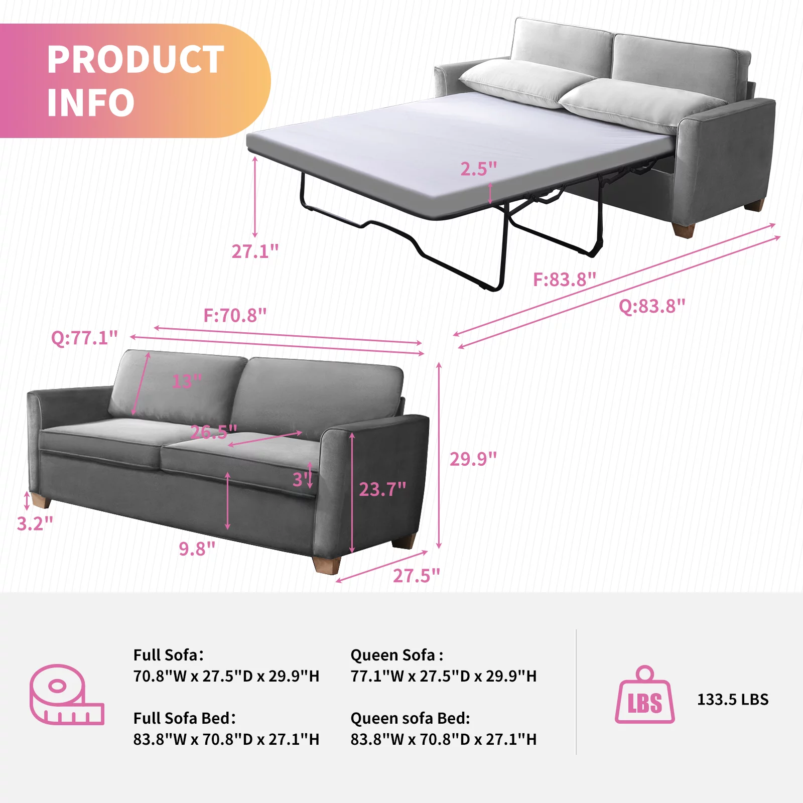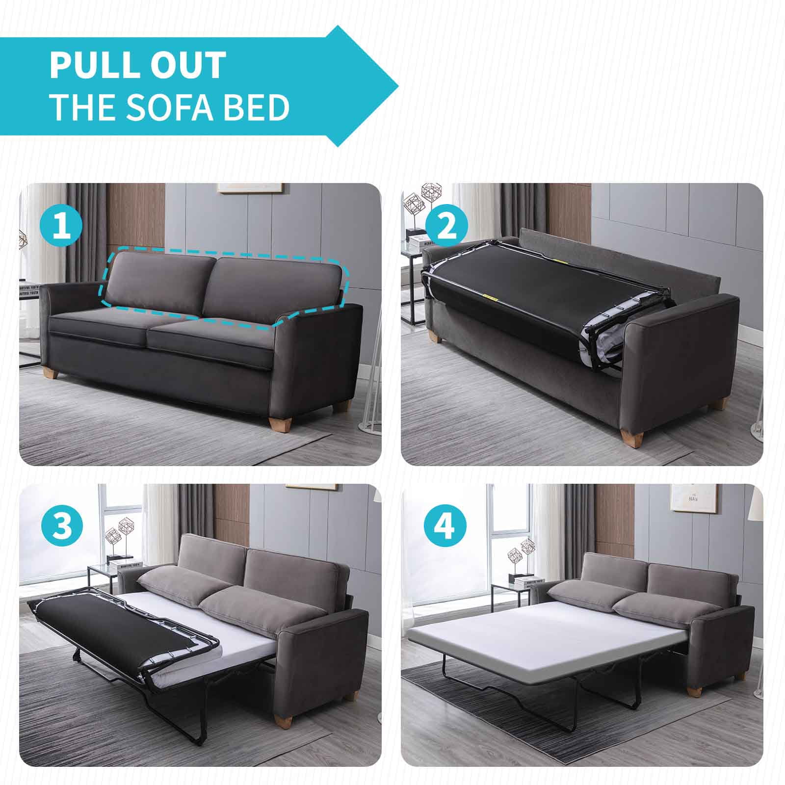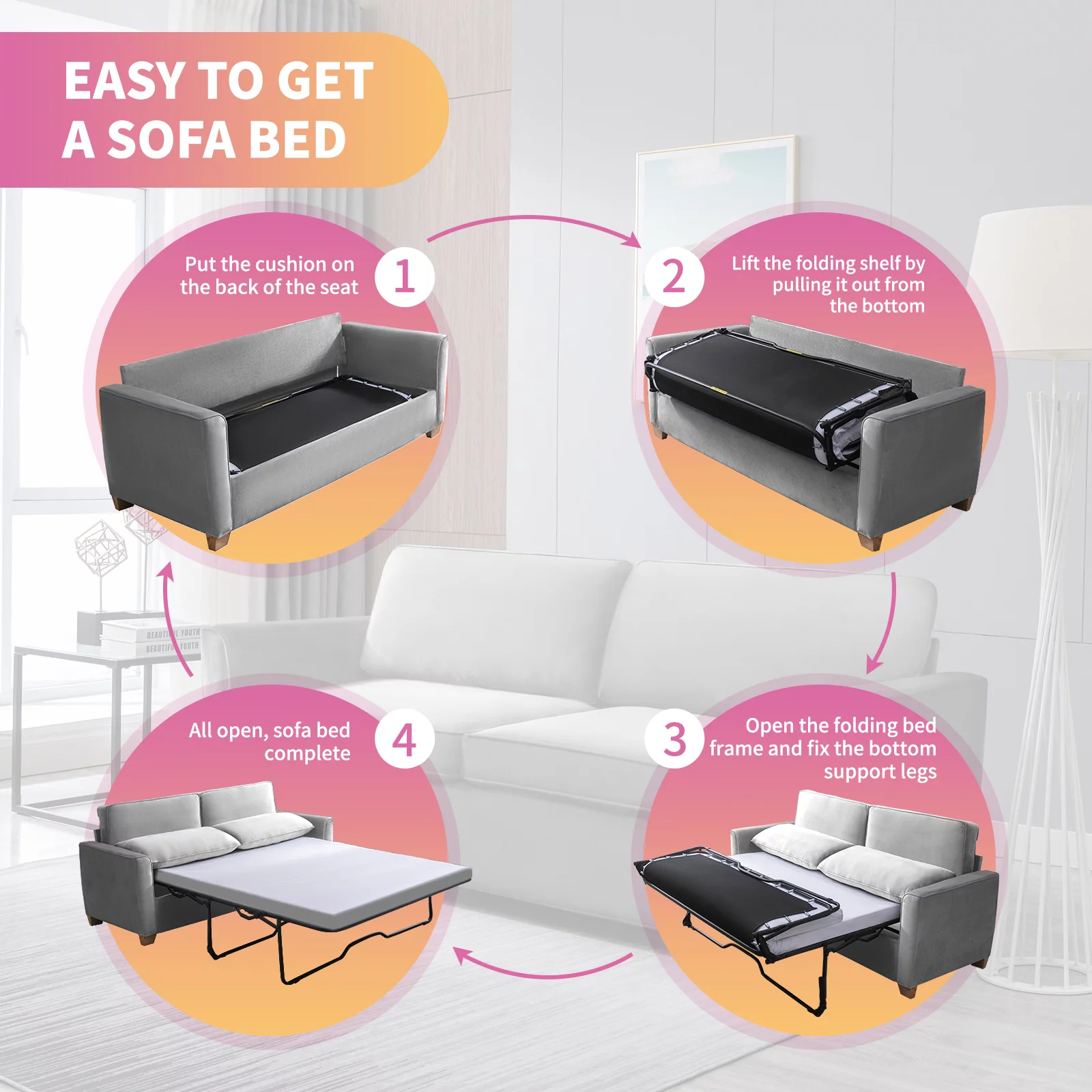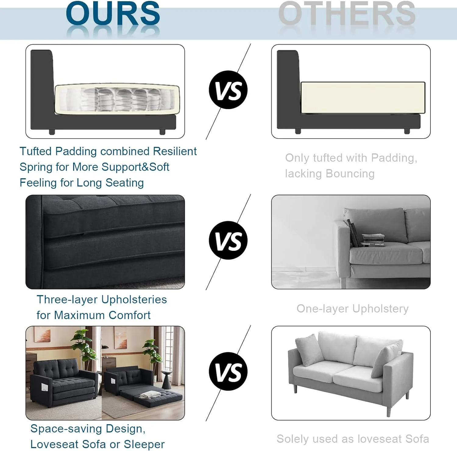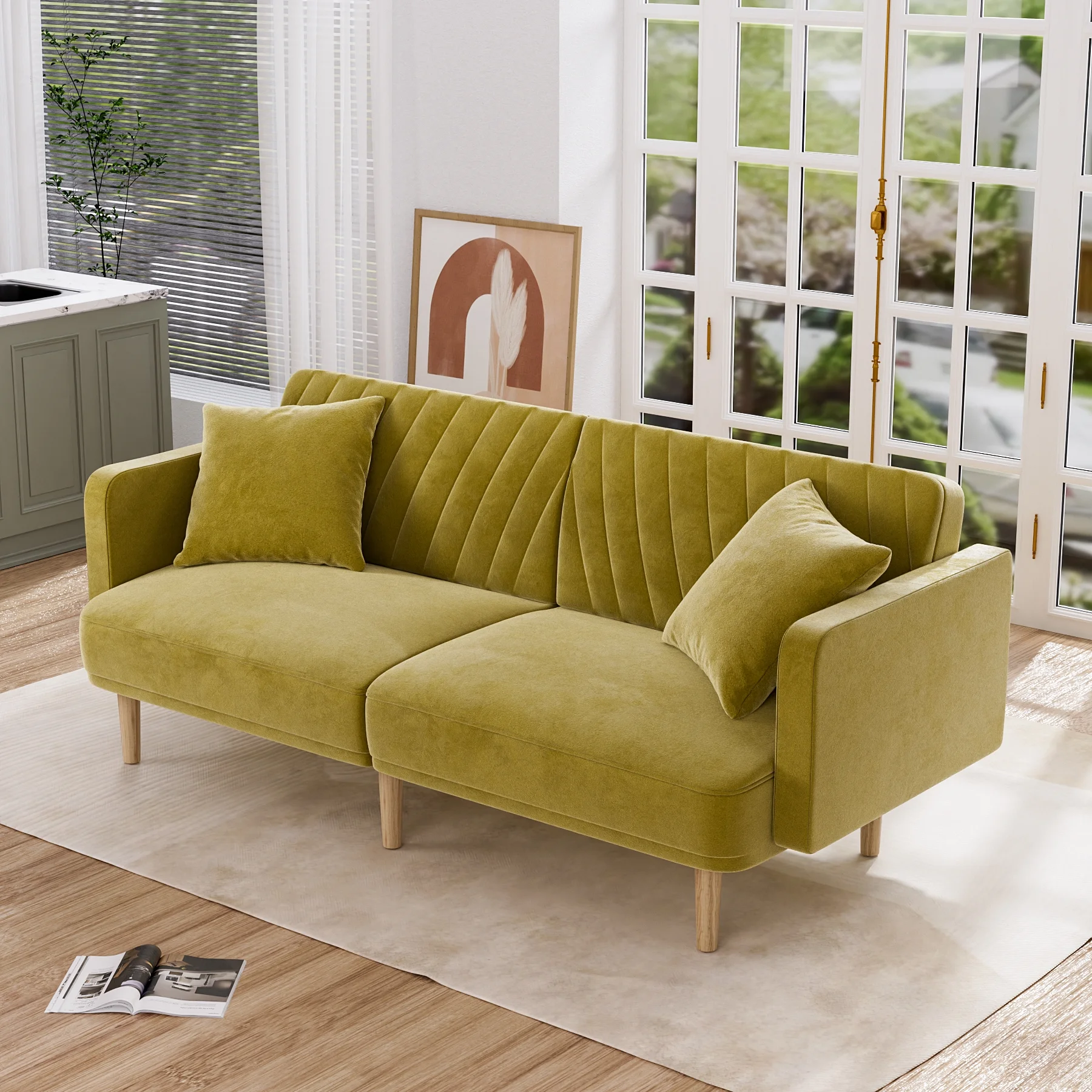 BSHTI Convertible Sofa Bed,Velvet Futon Sofa ,Sleeper Couch with Armrest and 2 Pillows for Living Room,Office( Black)