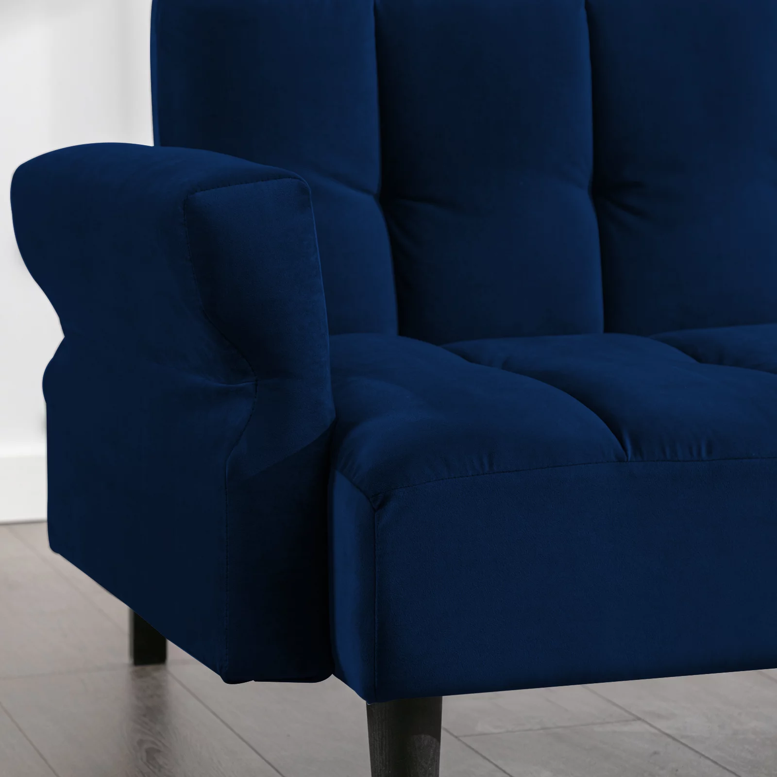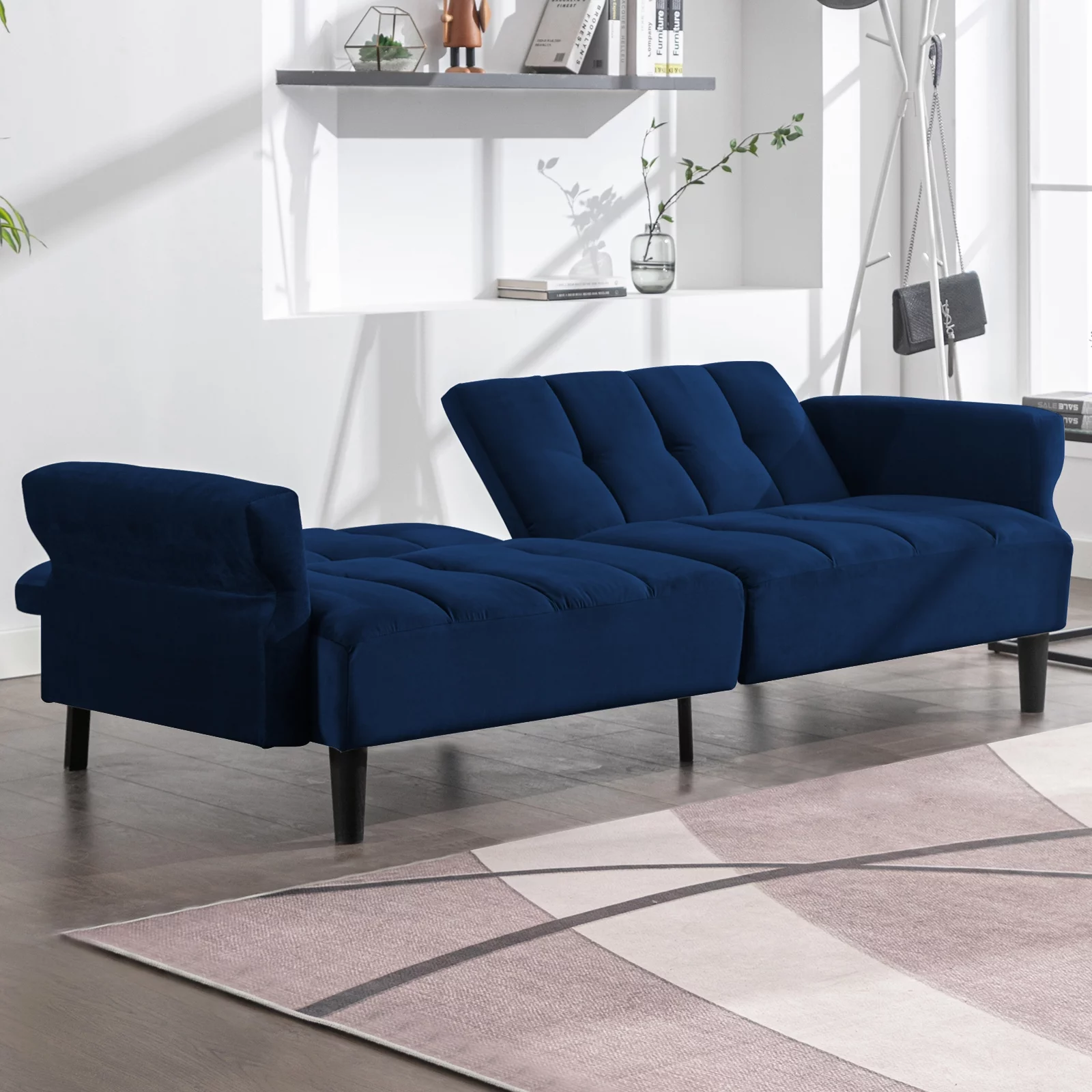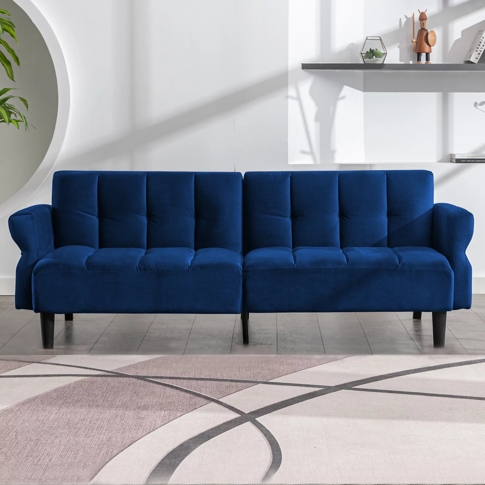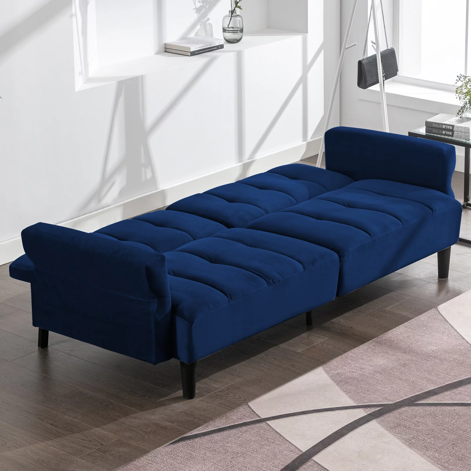 MUZZ 77"W Convertible Futon Loveseat Sleeper Sofa Bed with Adjustable Backrest, Velvet Couch for Living Room (Navy Blue)