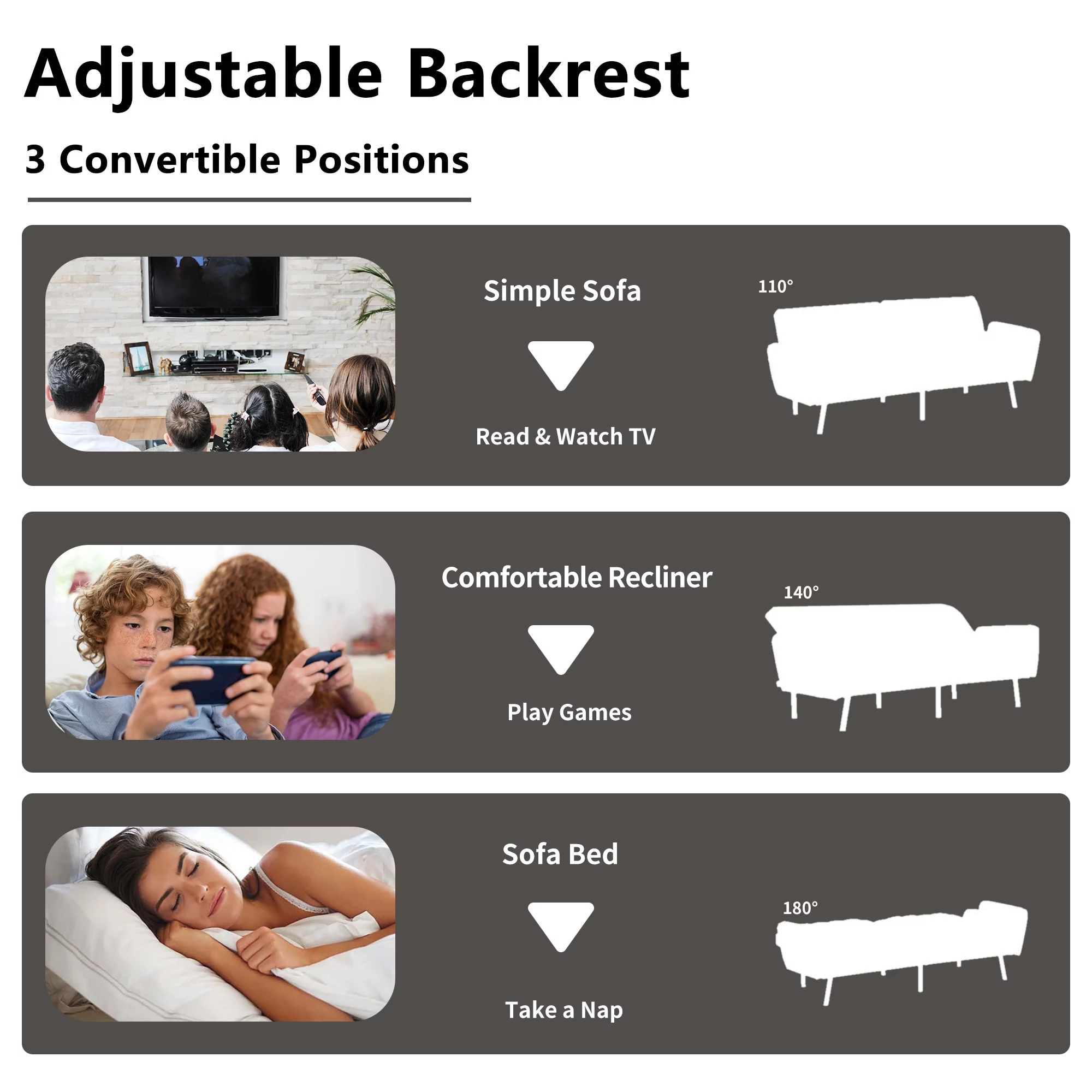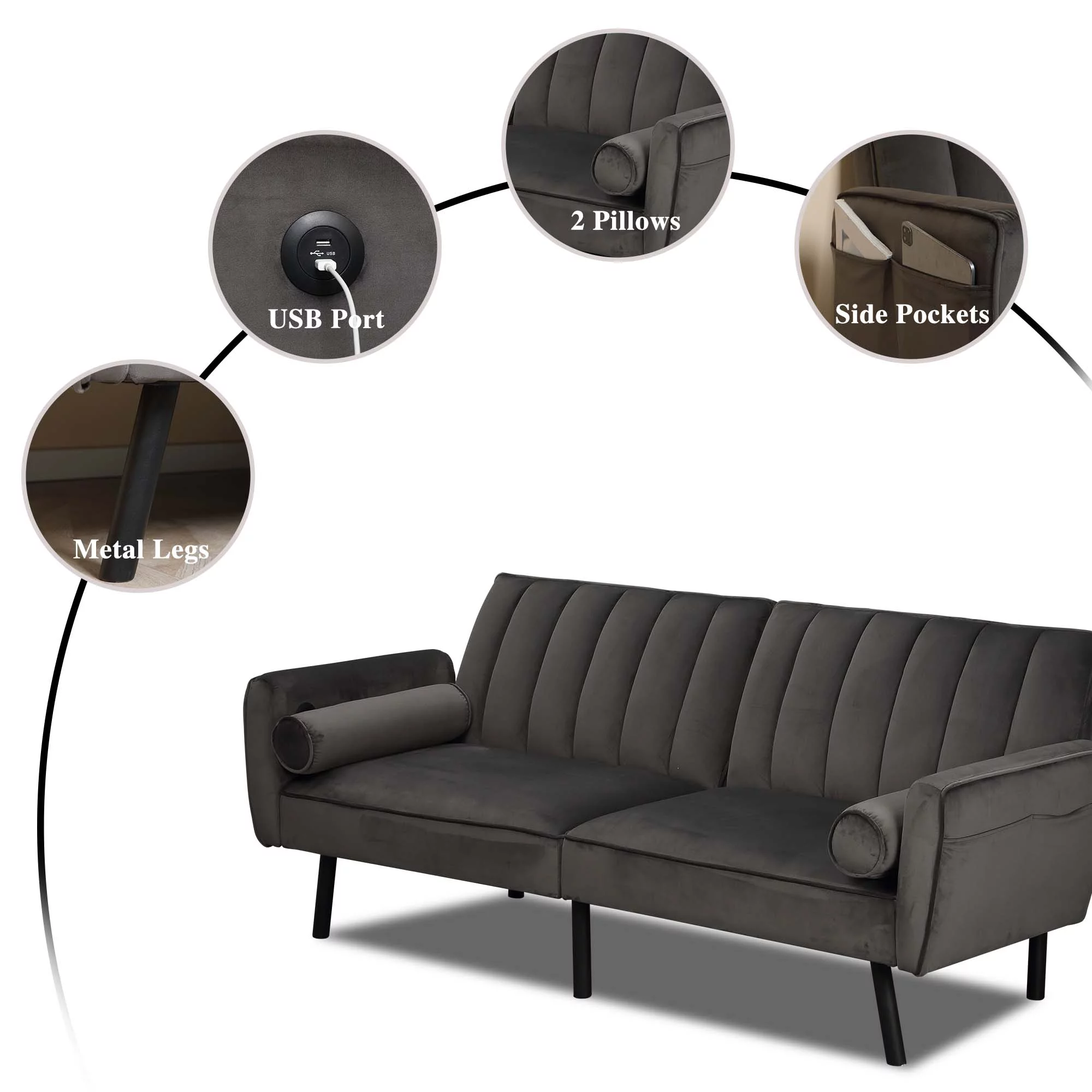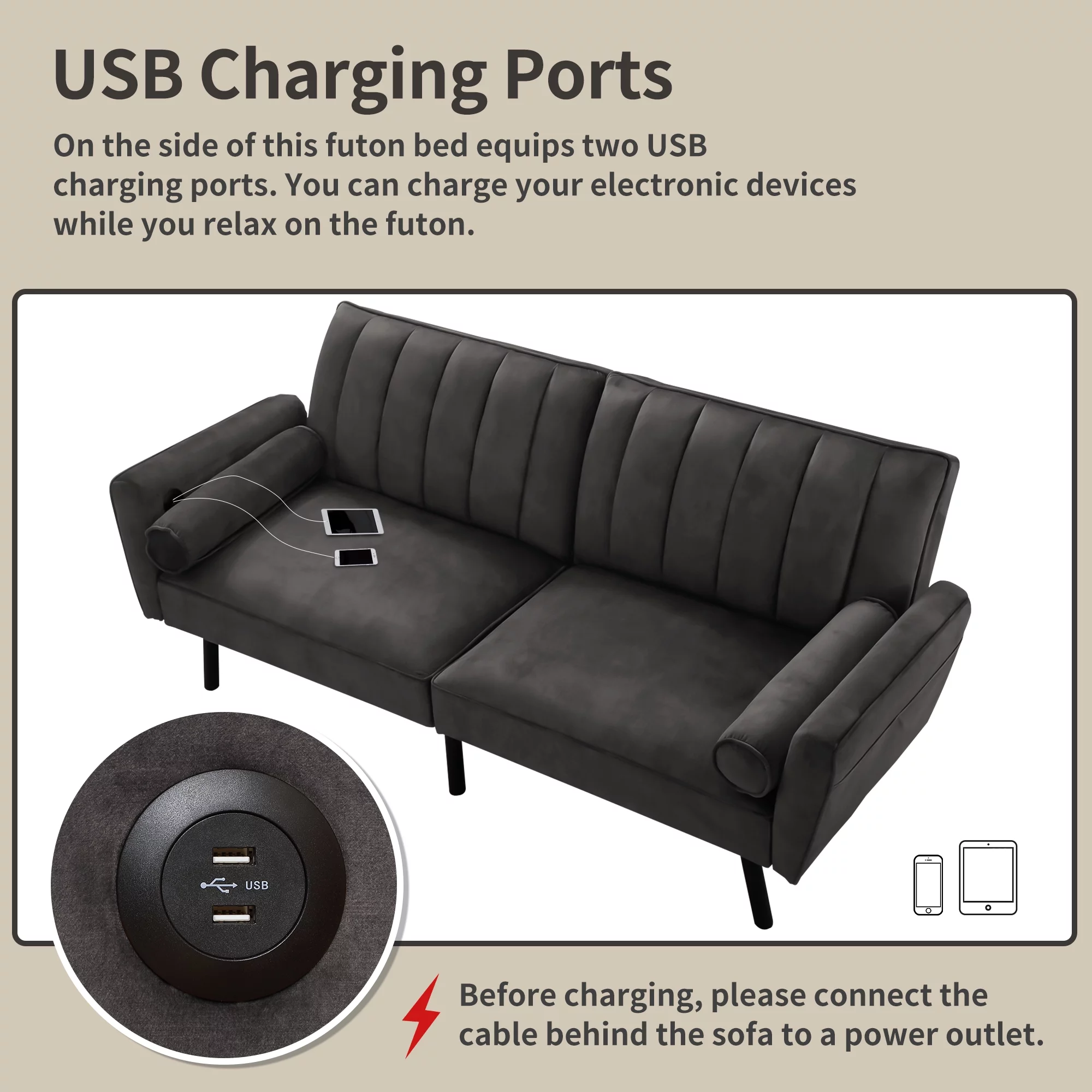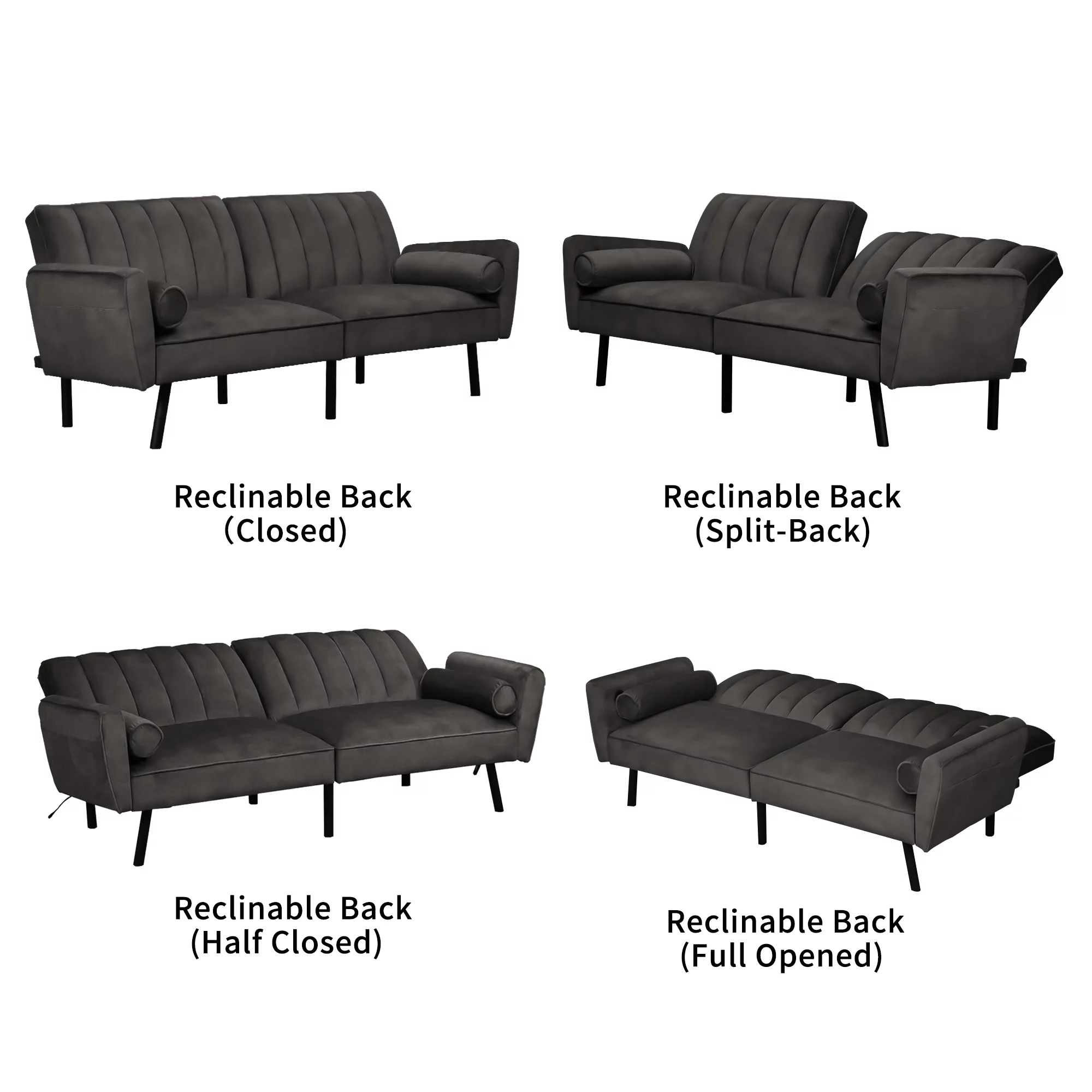 Duraspace Futon Sofa Bed Couch with Usb Side Pocket Adjustable Back for Living room, Charcoal Gray