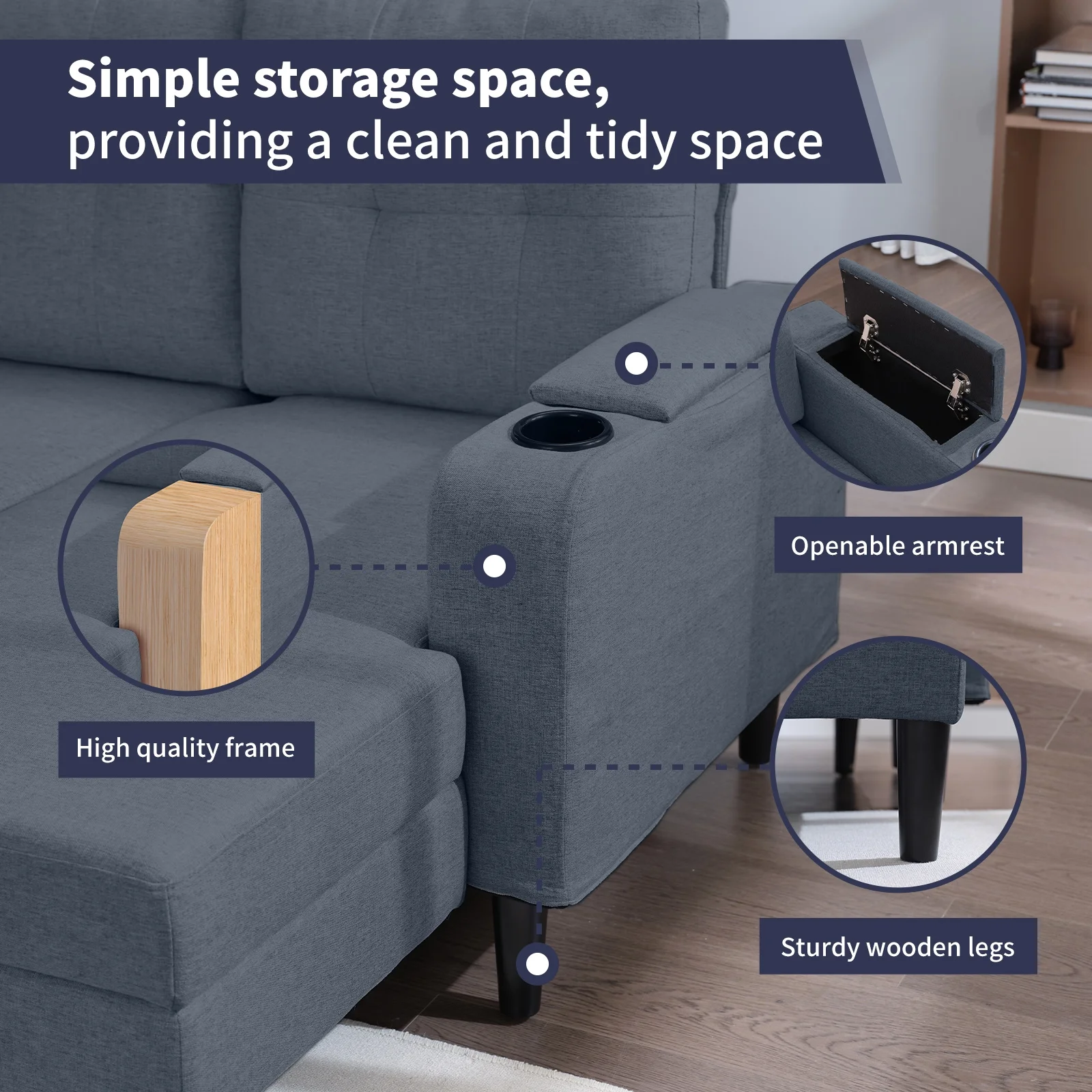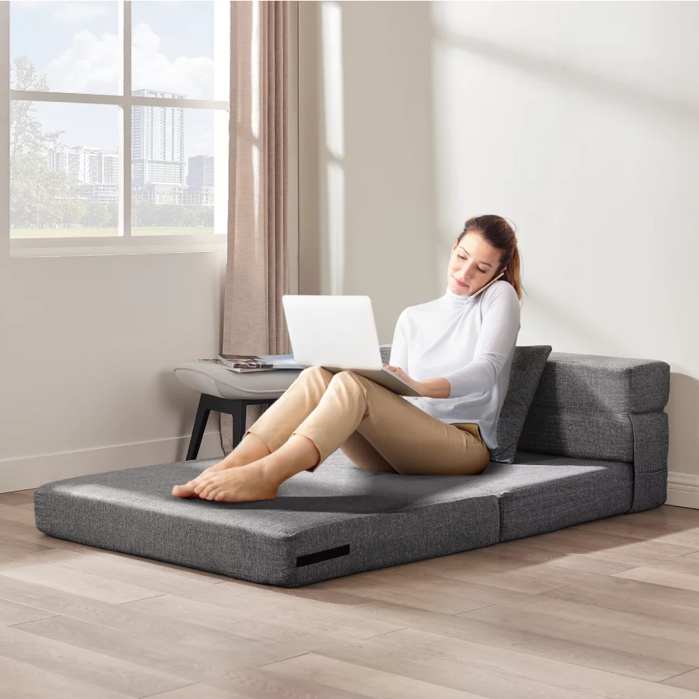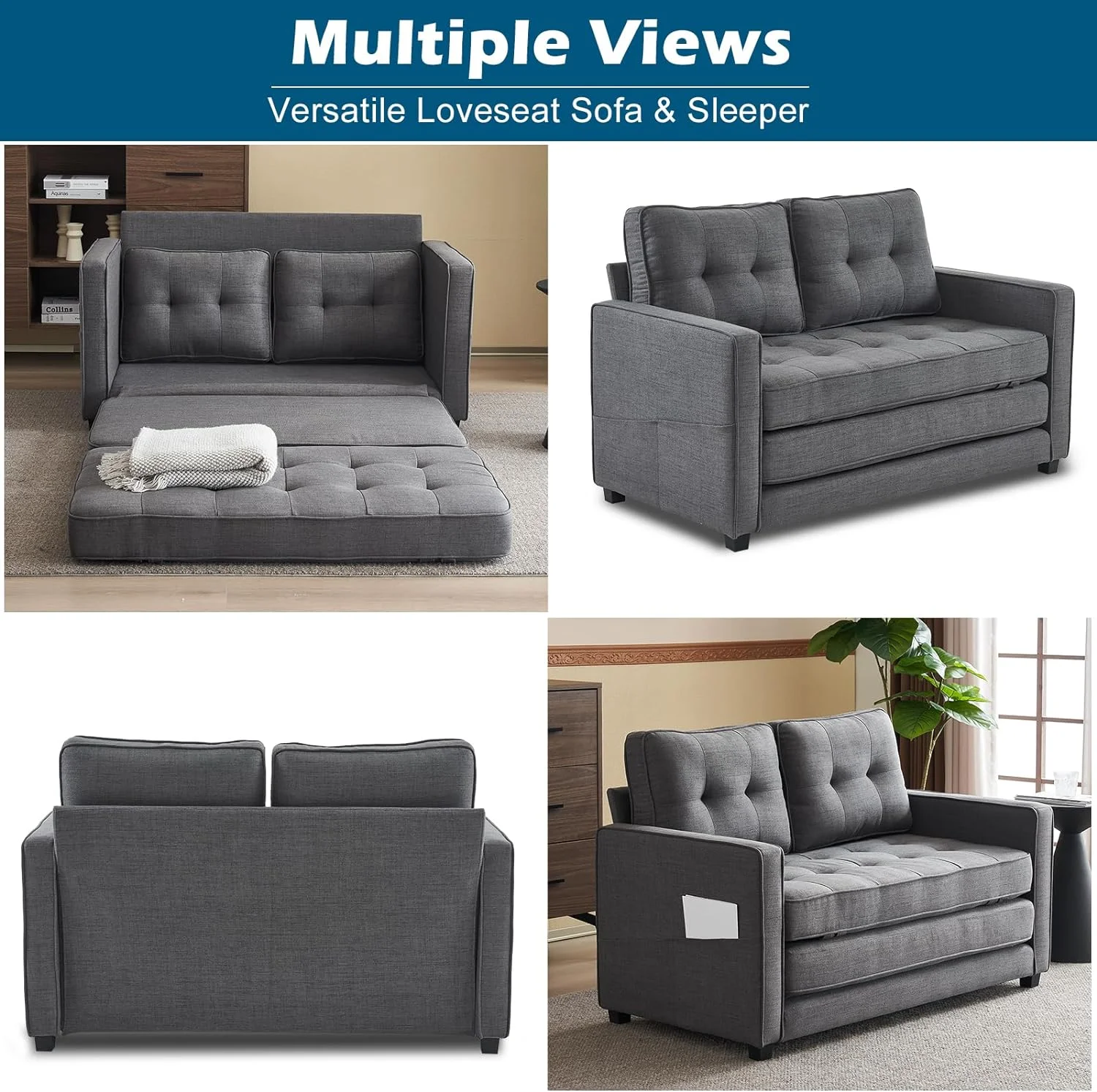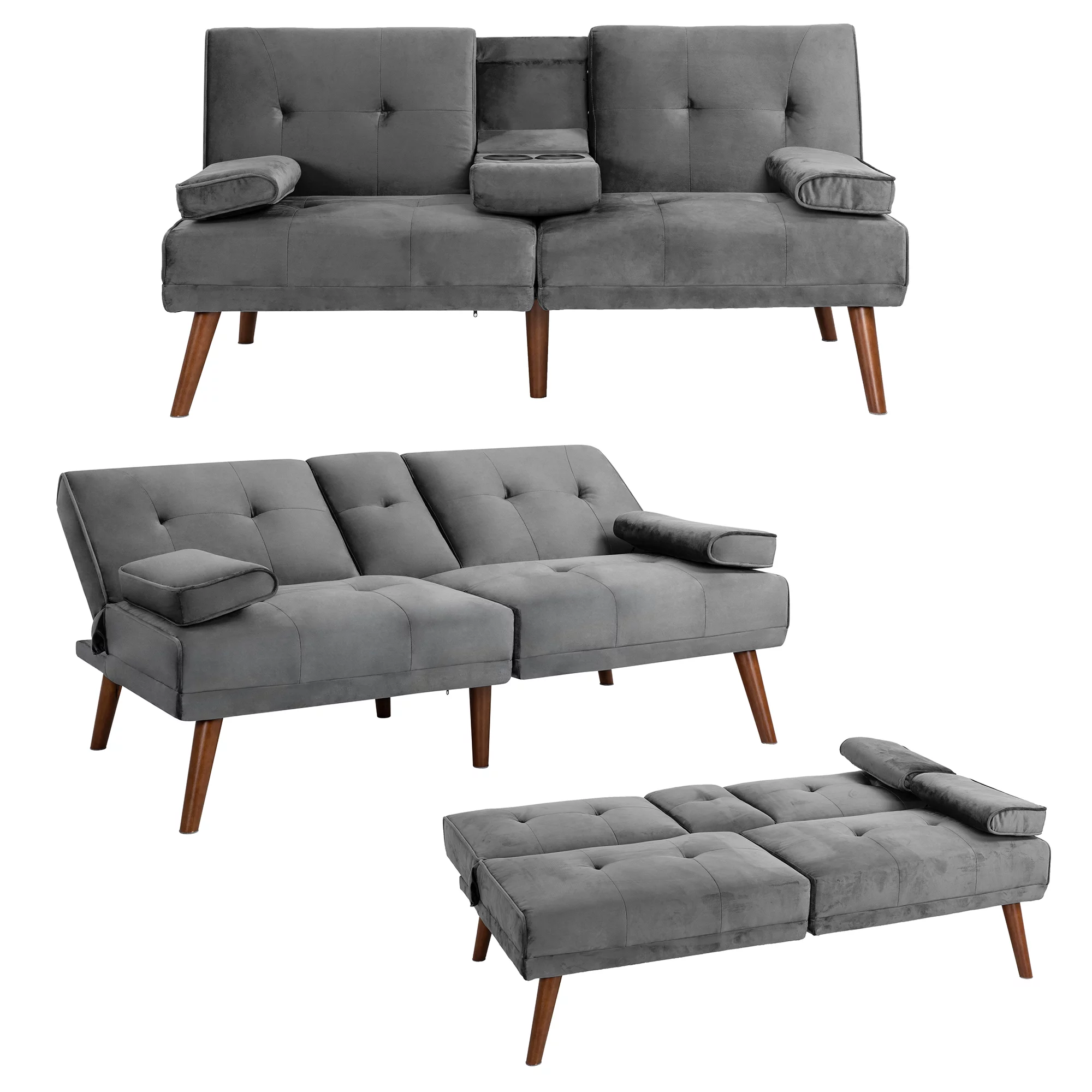 Duraspace Futon Sofa Bed Couch with Usb Side Pocket Adjustable Back for Living room, Charcoal Gray