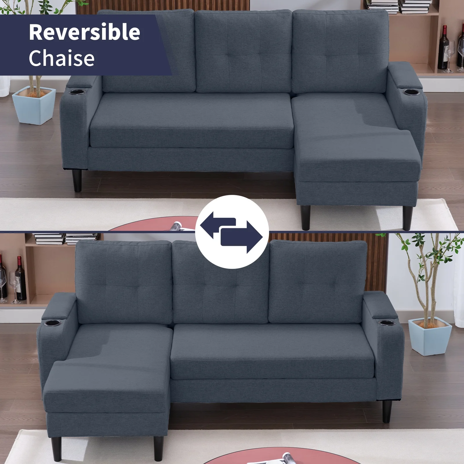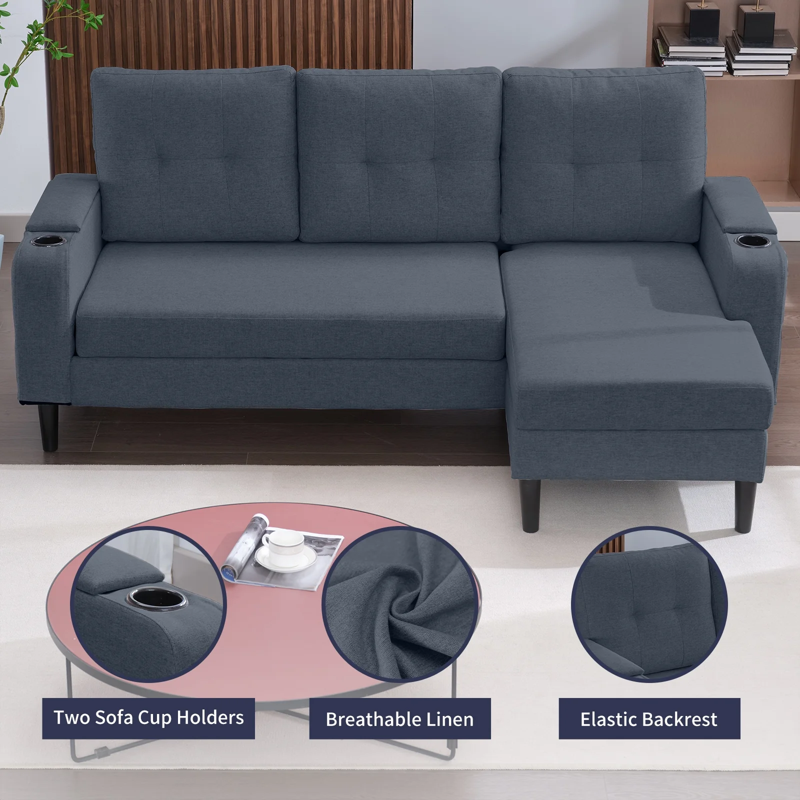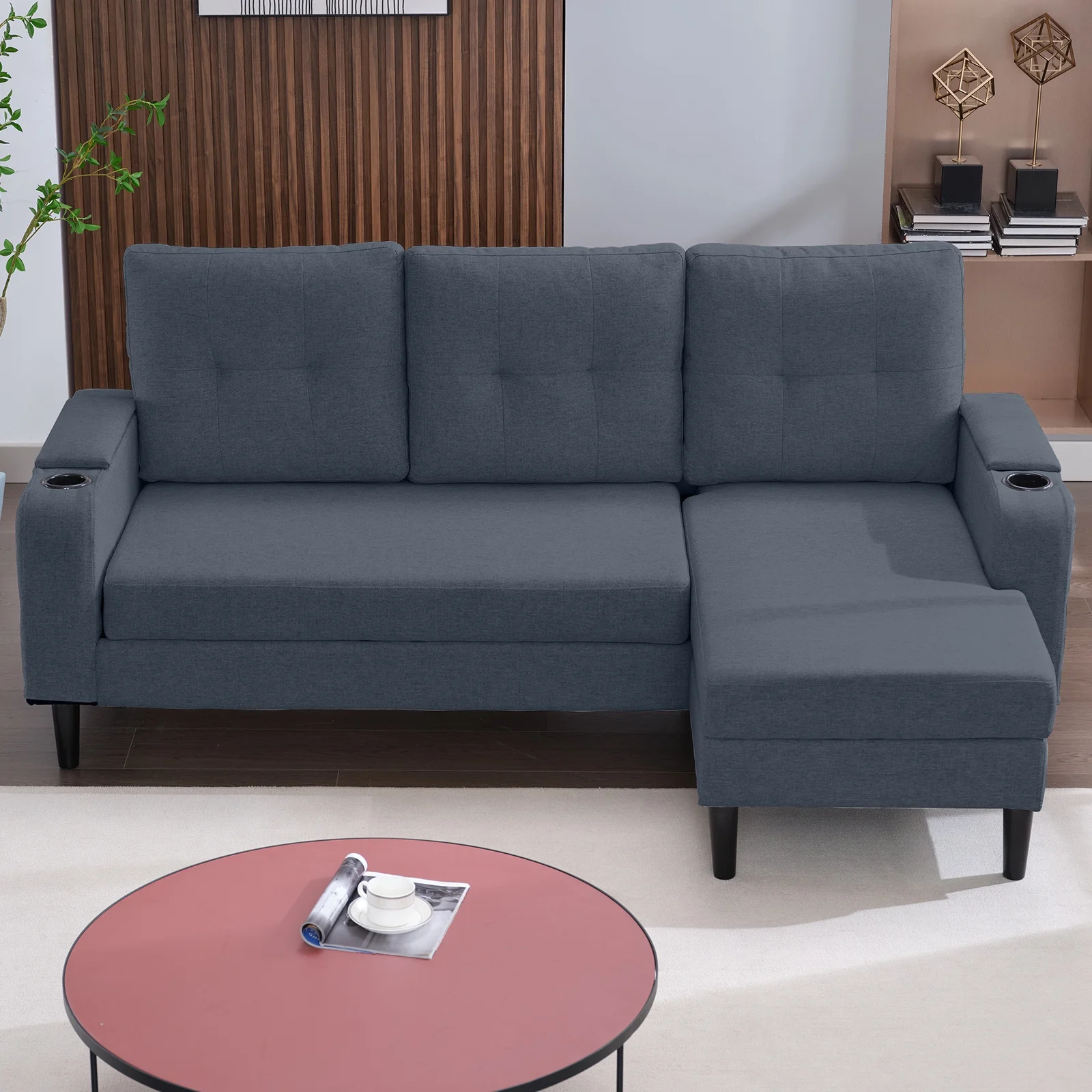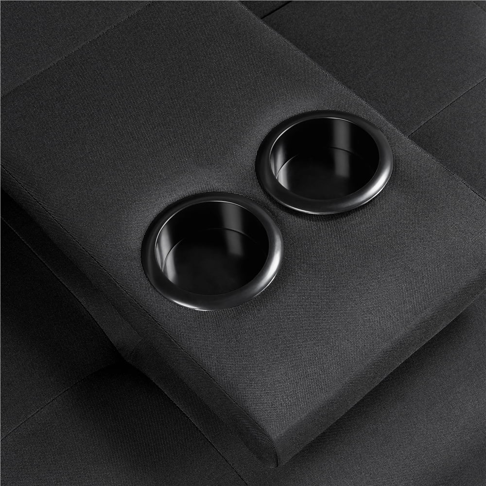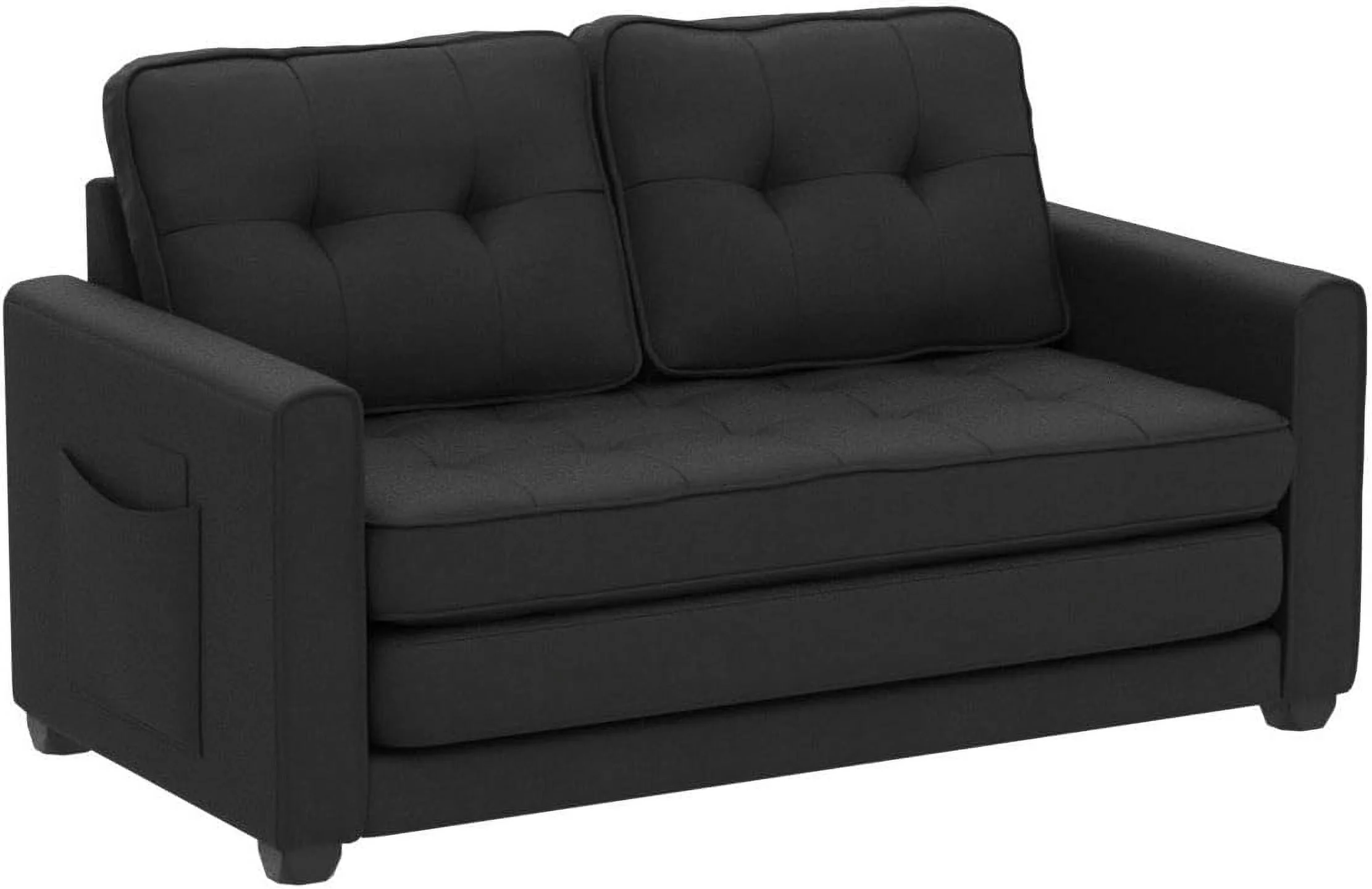 Topeakmart Convertible Futon Sofa Bed Tufted Fabric Futon Couch Bed with 2 Cup Holders, Black