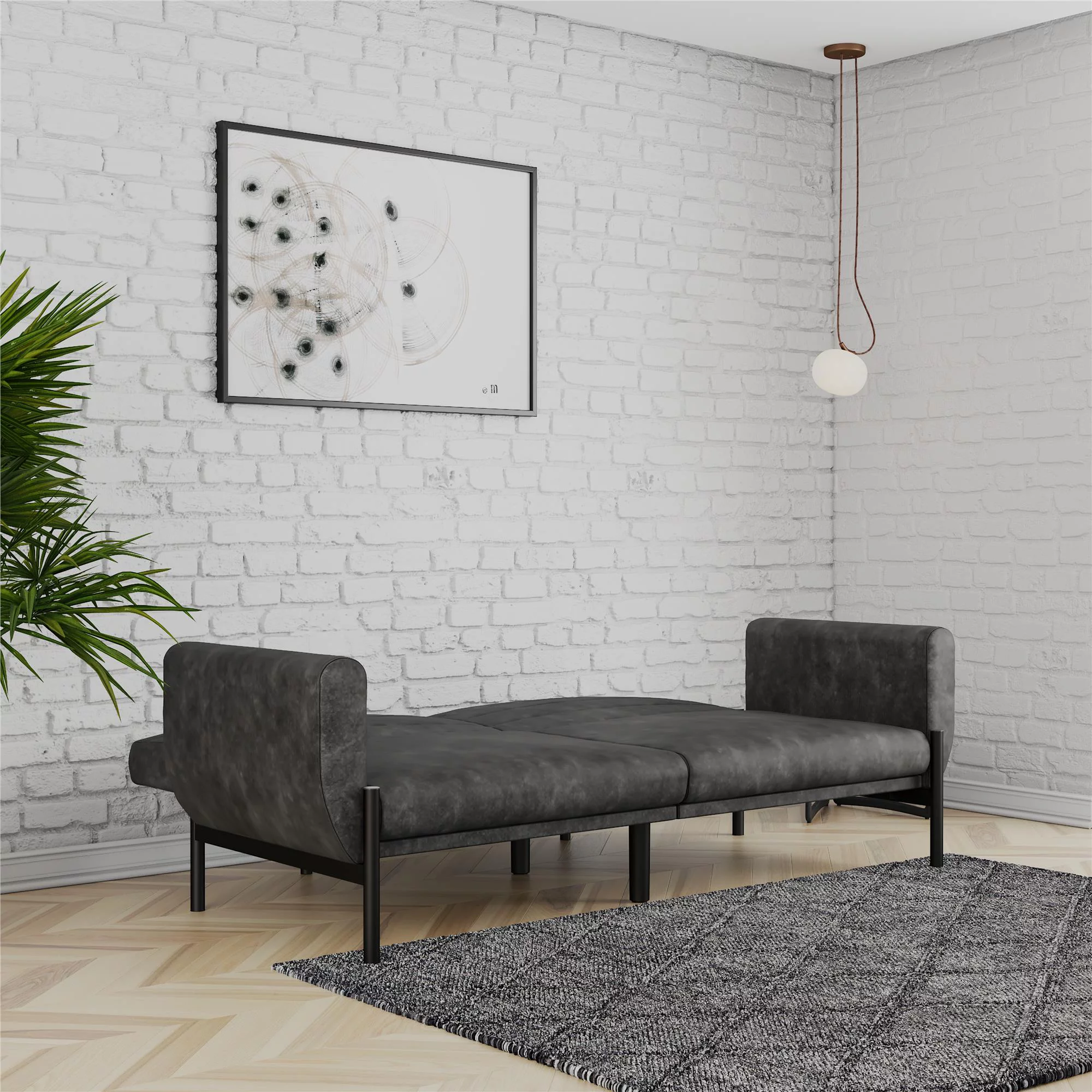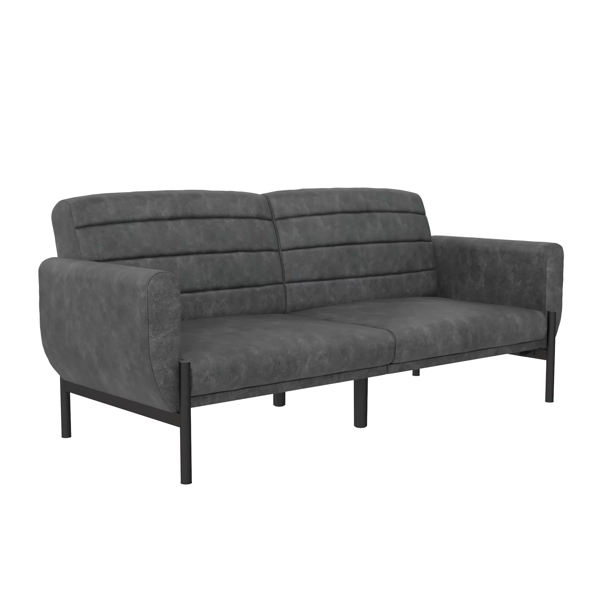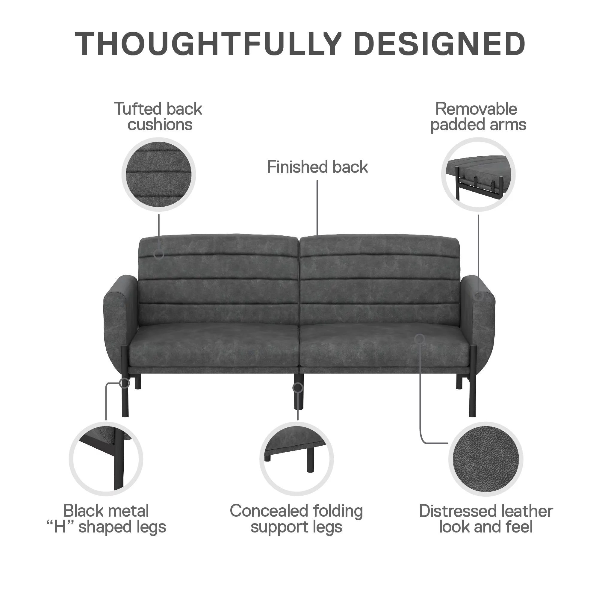 DHP Sadie Futon Sofa Bed and Couch Sleeper, Distressed Charcoal Black Faux Leather