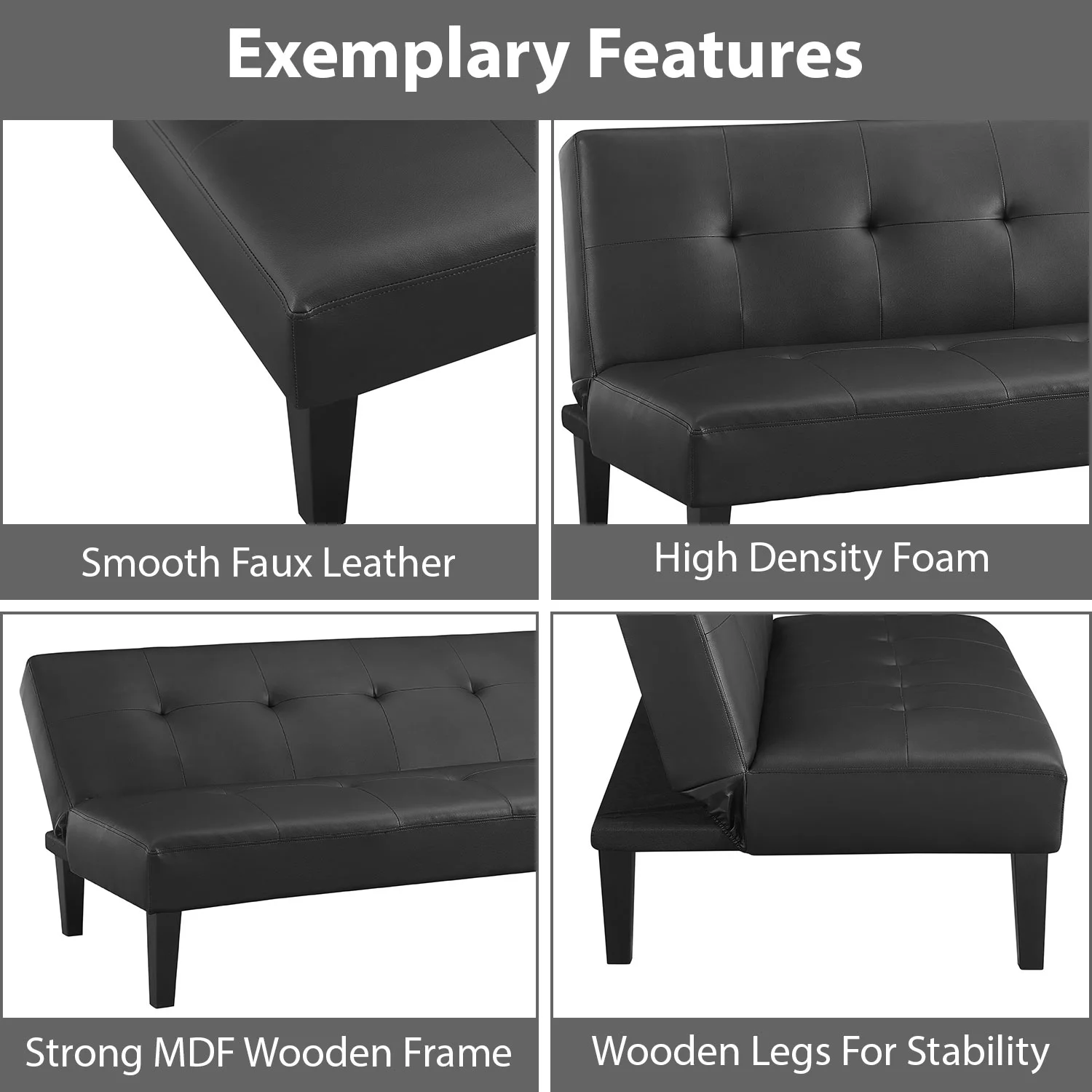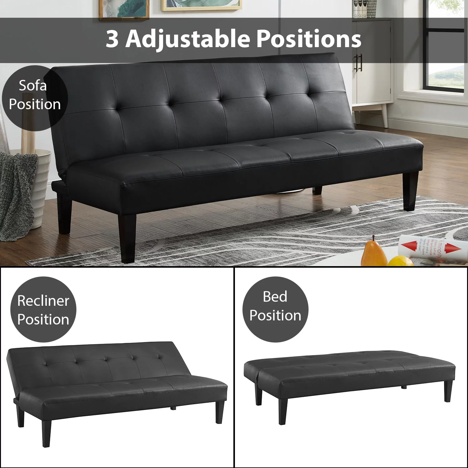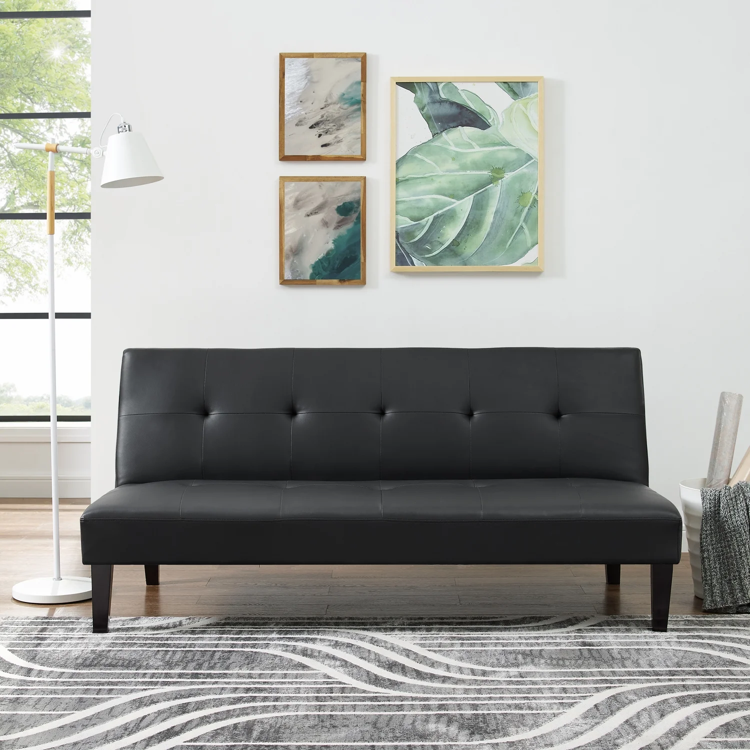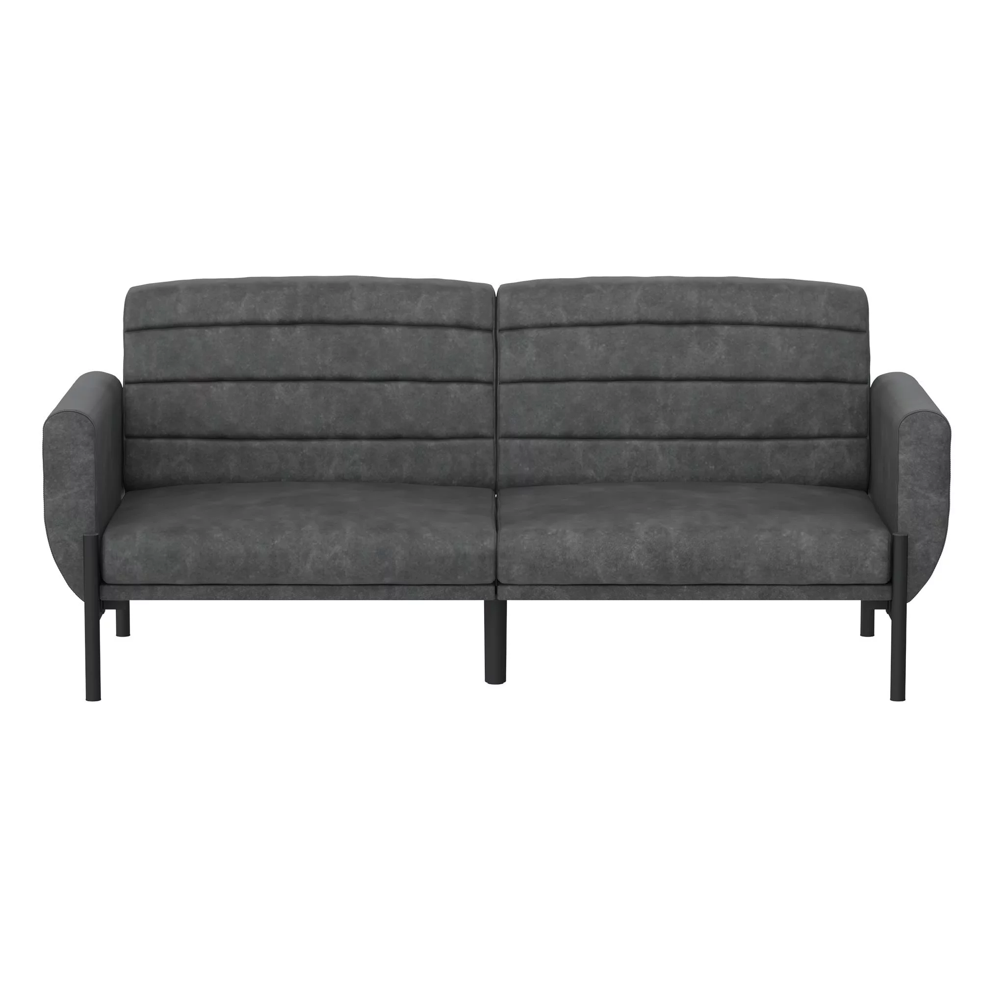 DHP Sadie Futon Sofa Bed and Couch Sleeper, Distressed Charcoal Black Faux Leather