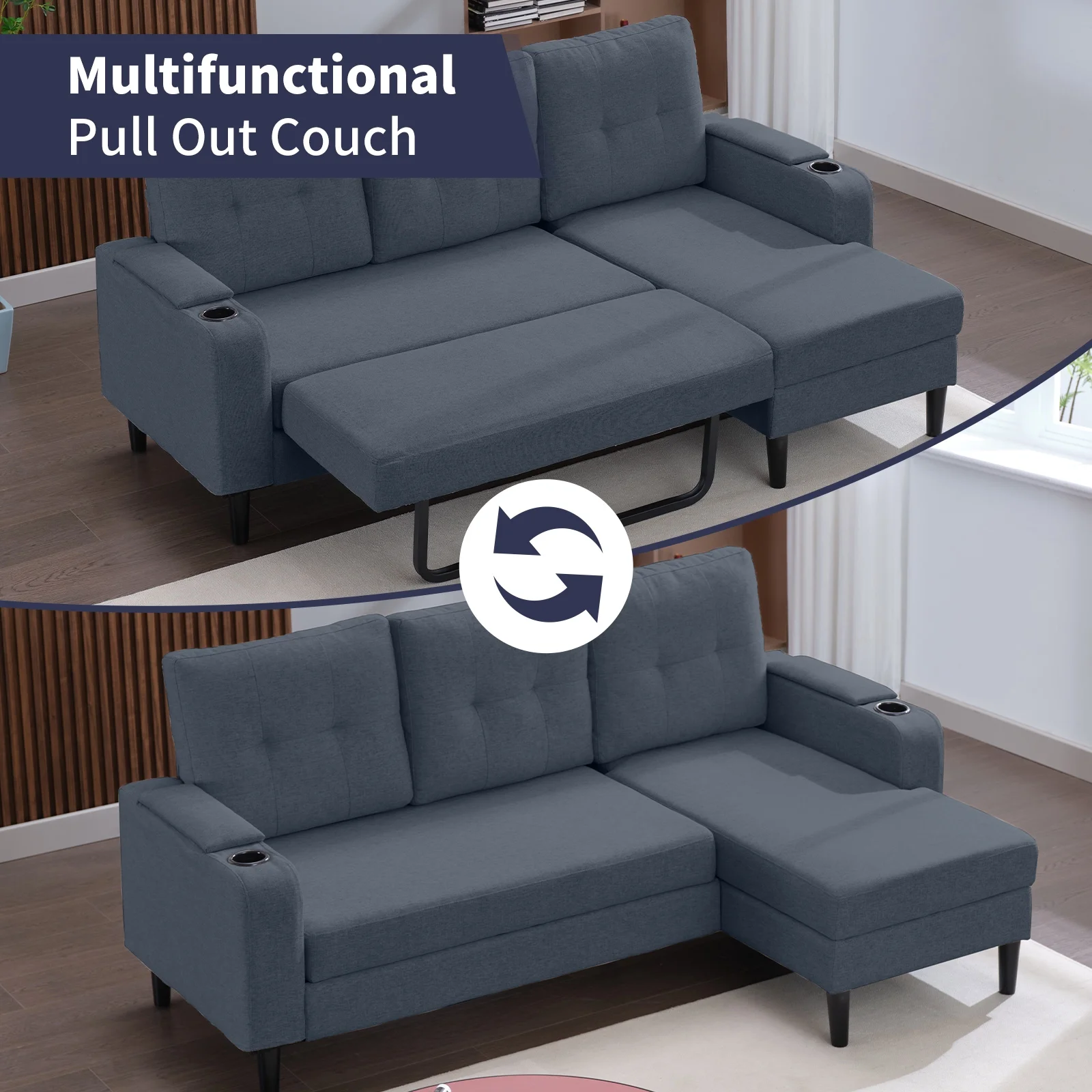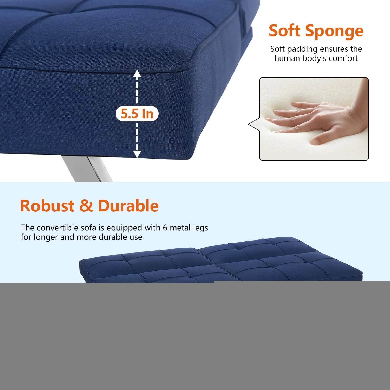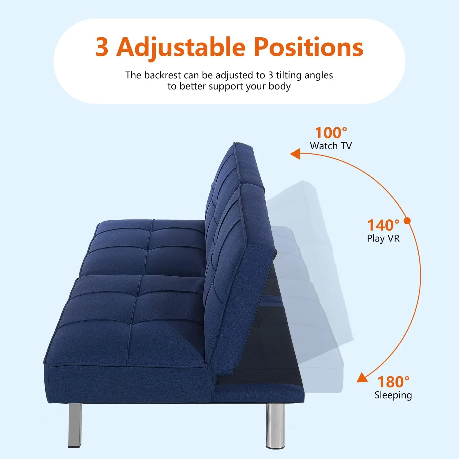 Dkelincs Futon Couch Bed Convertible Sofa Bed Twin Size with 3 Adjustable Position Sleeper Couch for Living Room, Blue