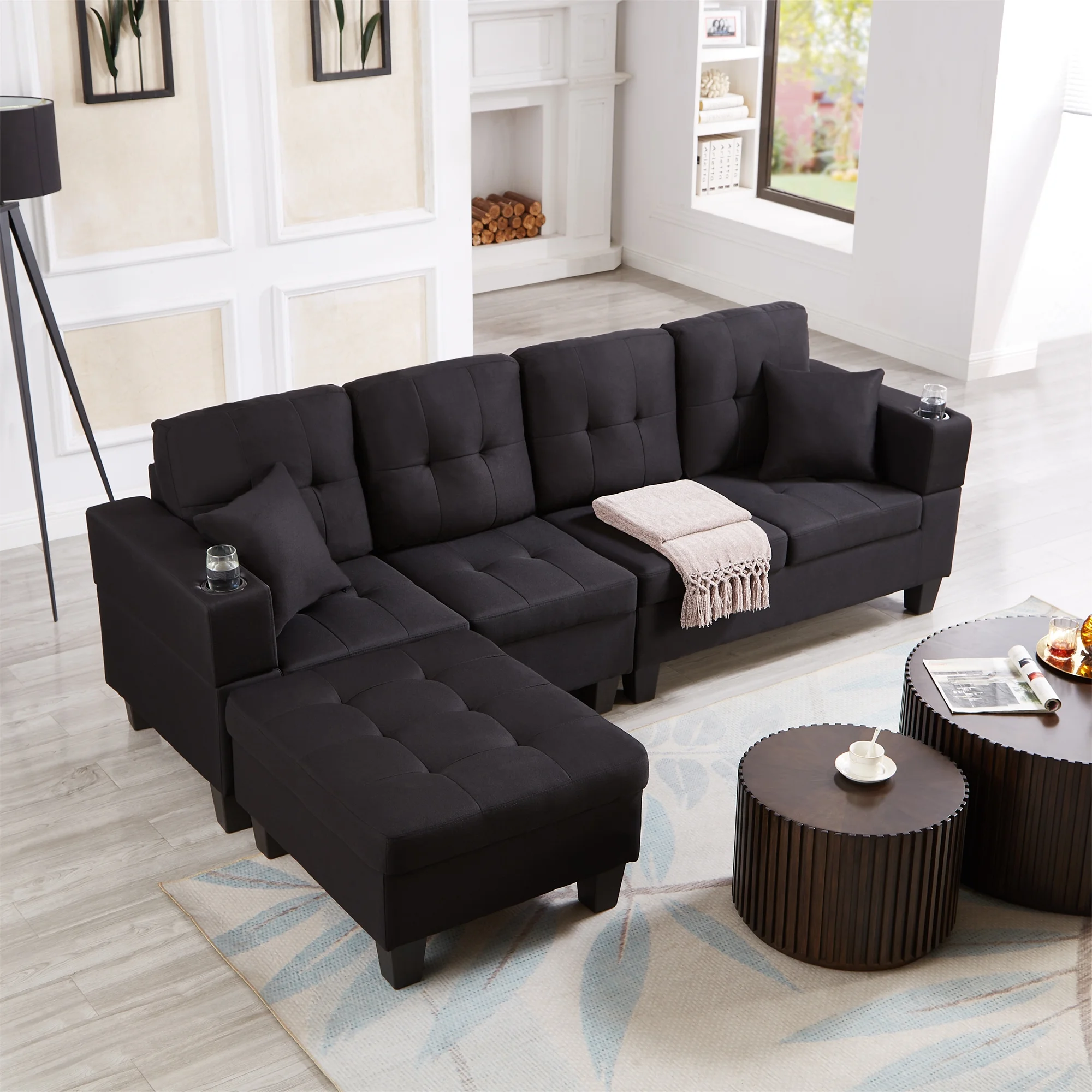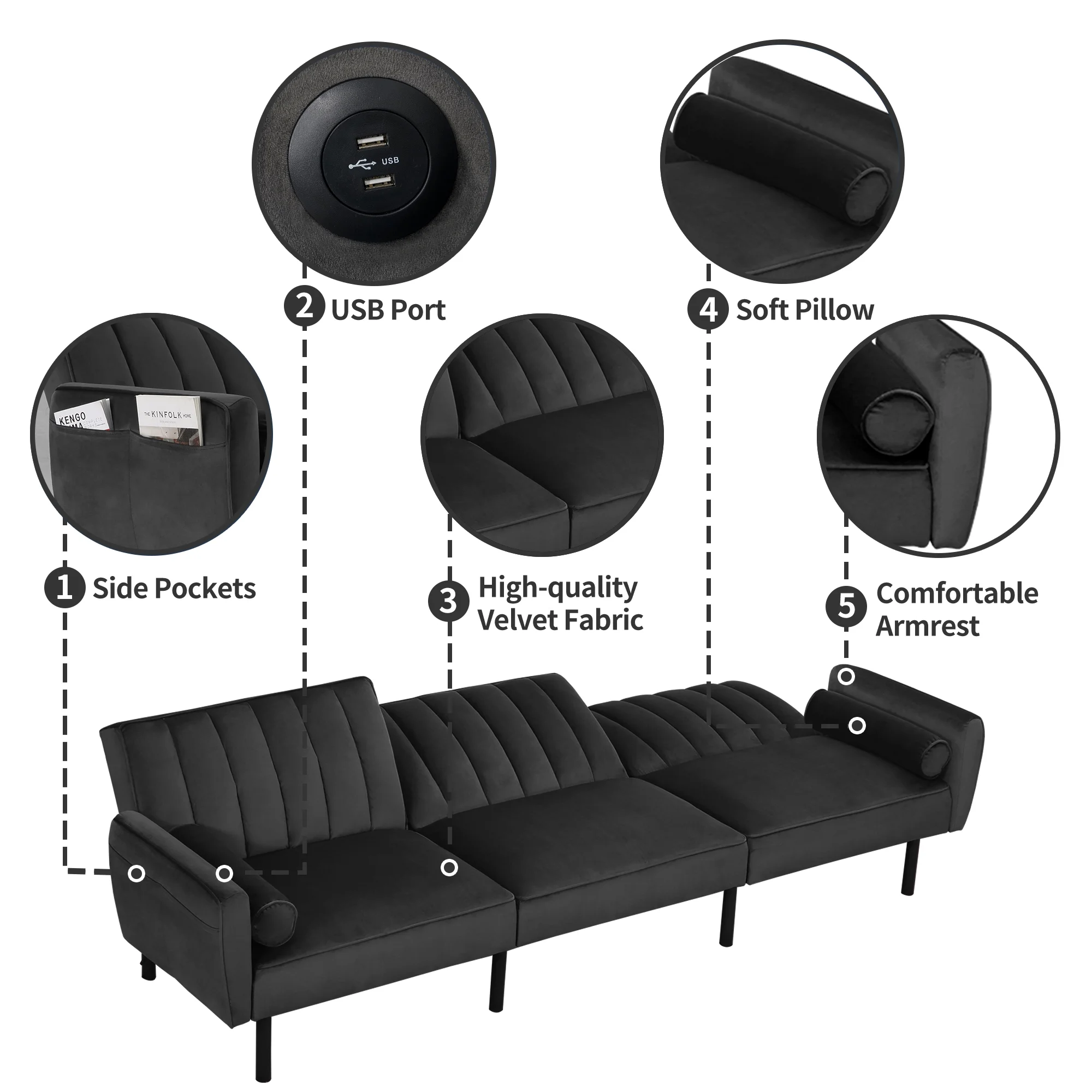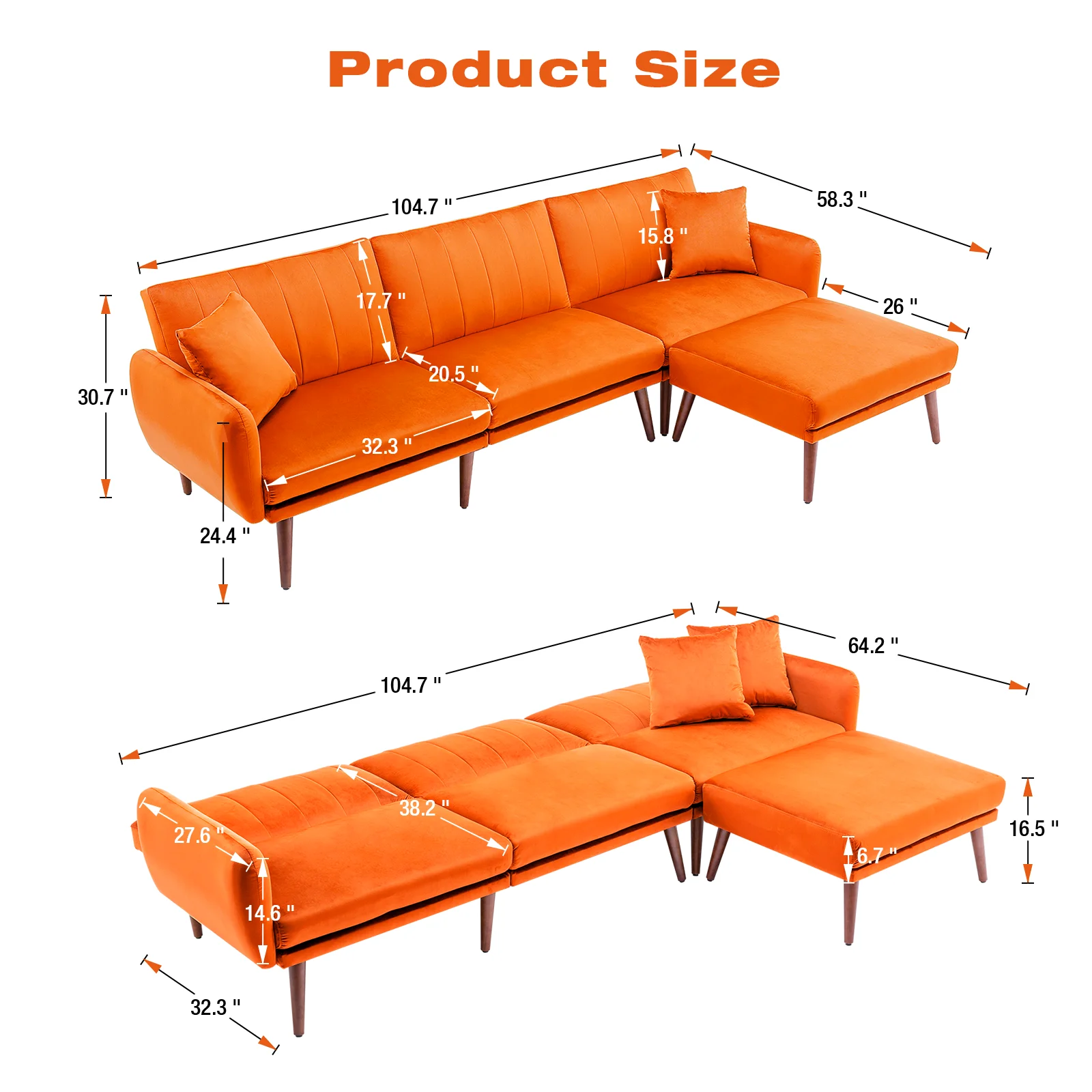 JOMEED Convertible Sectional Sofa Couch, Modern Oversized Velvet Fabric Couch Sofa Bed for Living Room, Apartment