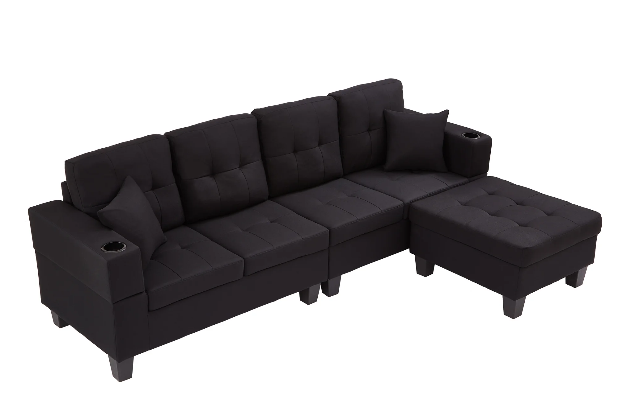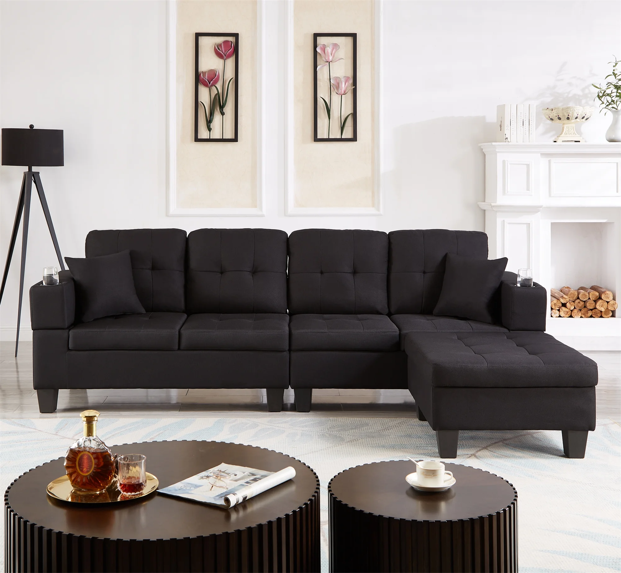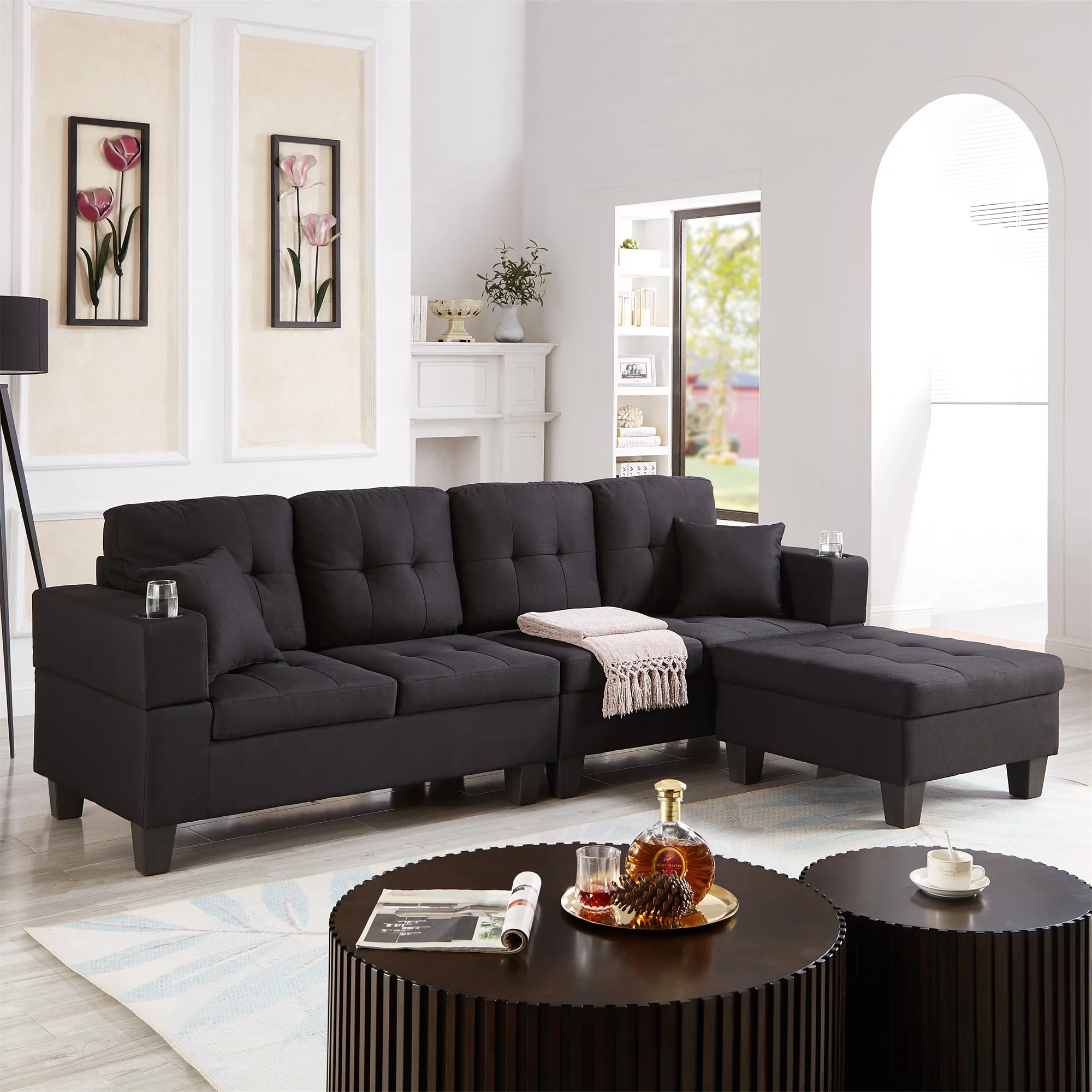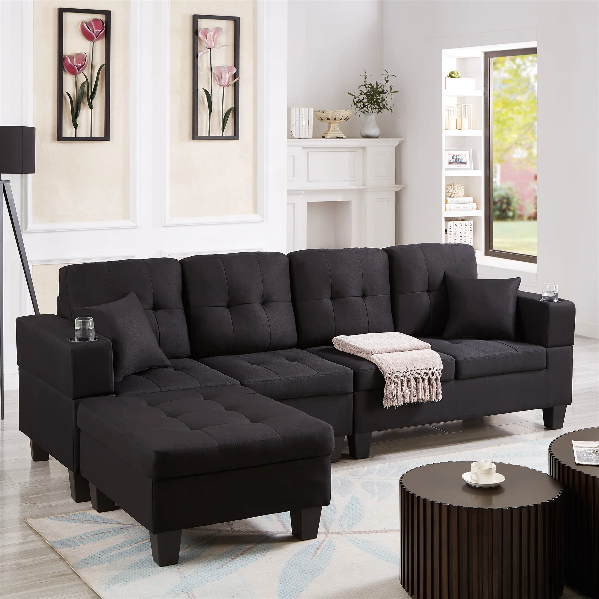 JOMEED Convertible Sectional Sofa Couch, Modern Oversized Velvet Fabric Couch Sofa Bed for Living Room, Apartment