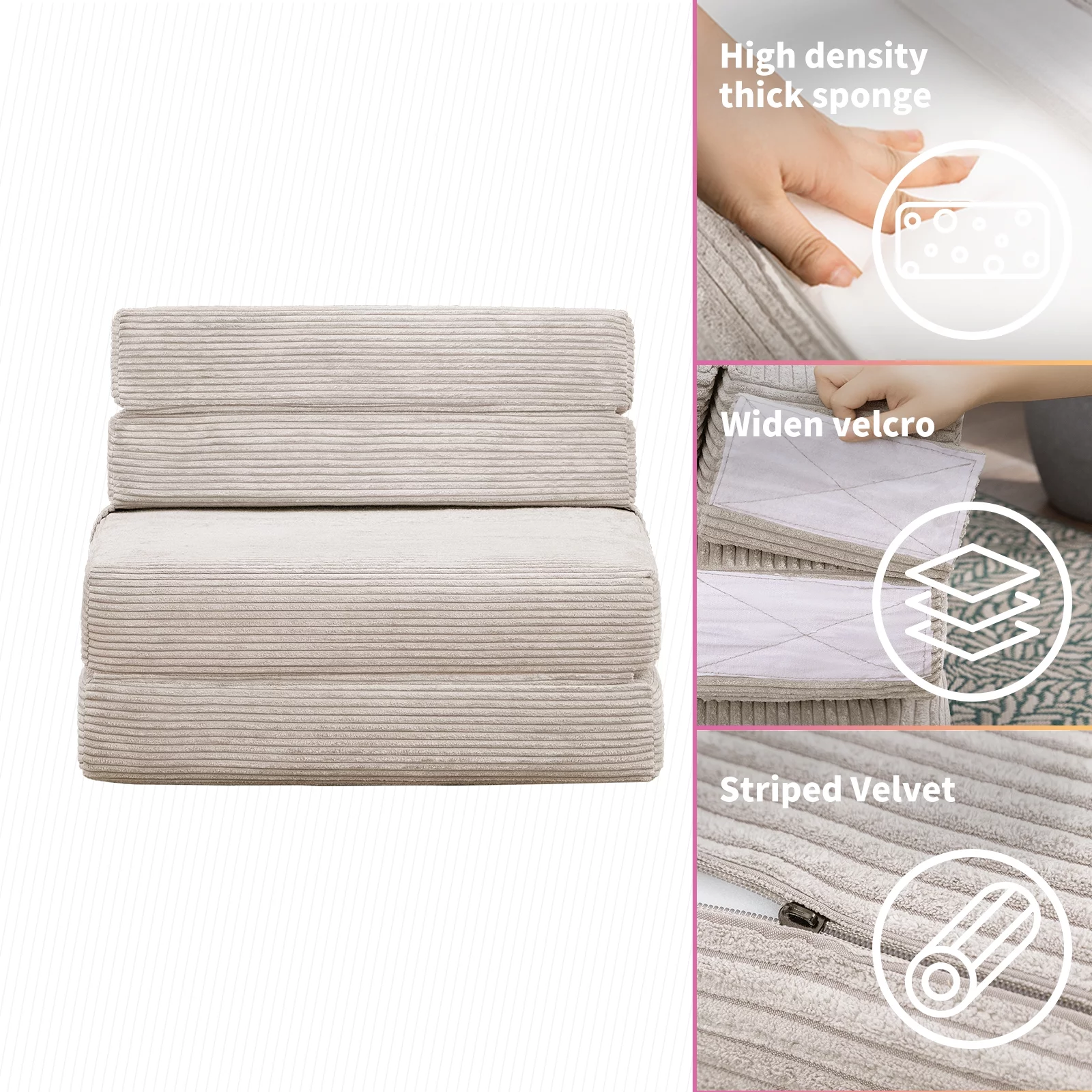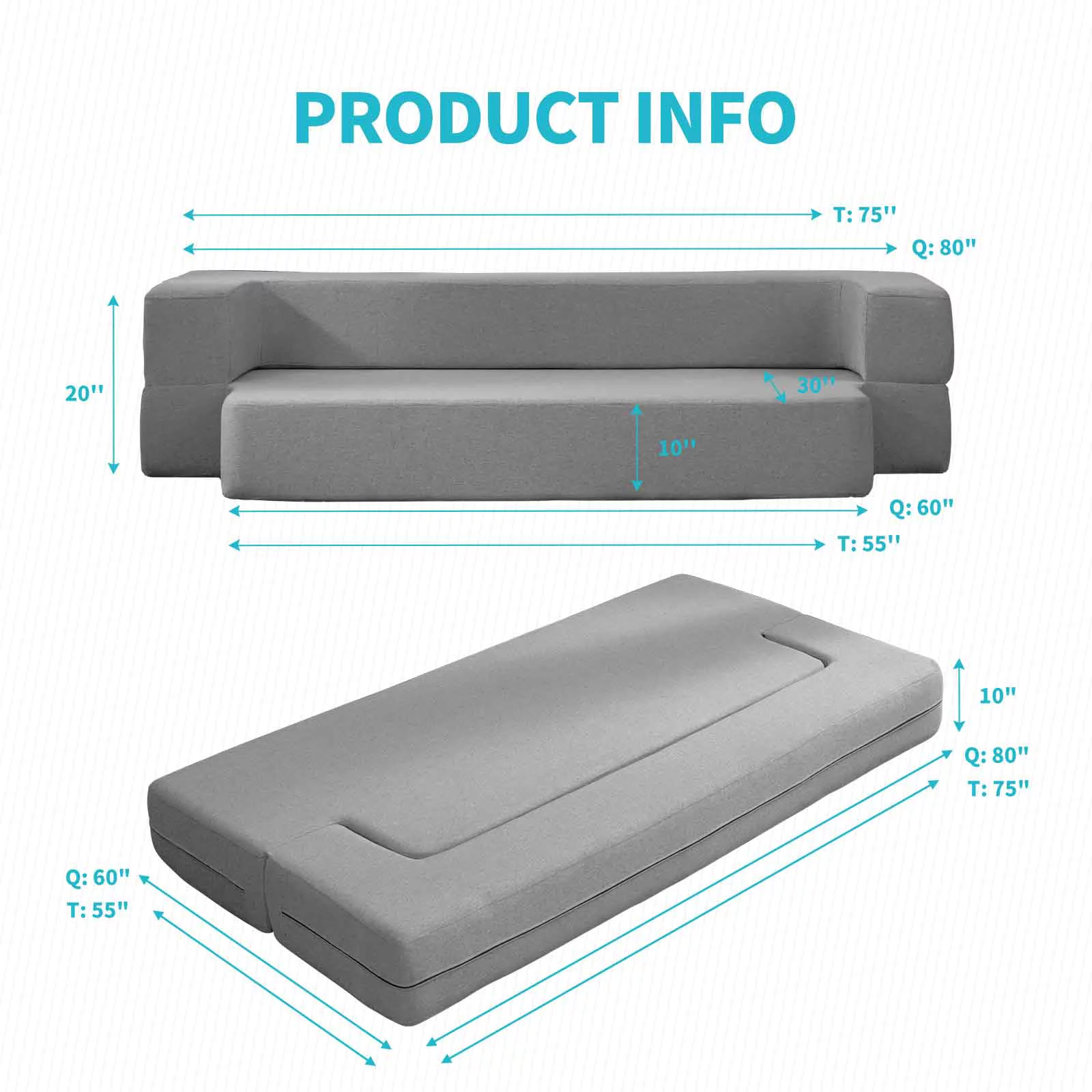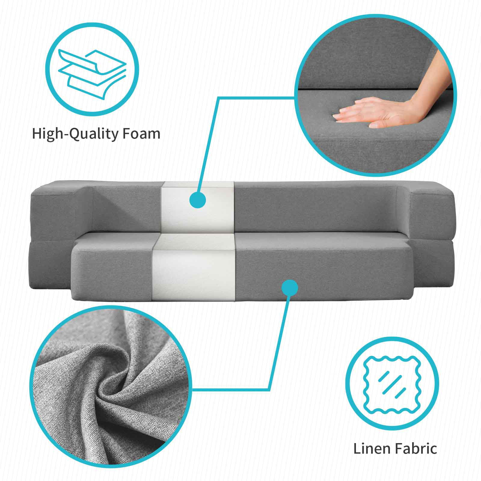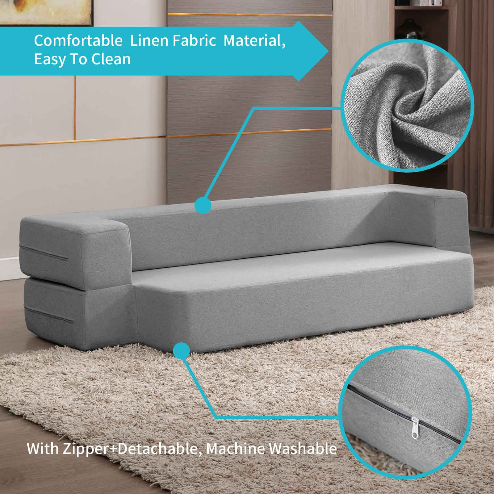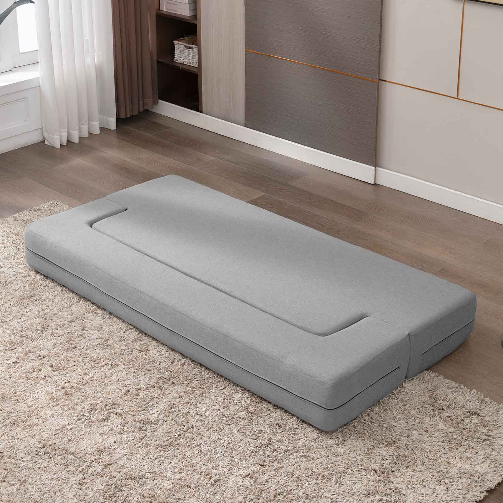 CECER Twin Size Folding Sofa Bed, Linen Floor Couch Bed with 10" Mattress, Fold Out Futon Sofa Bed,Light Grey