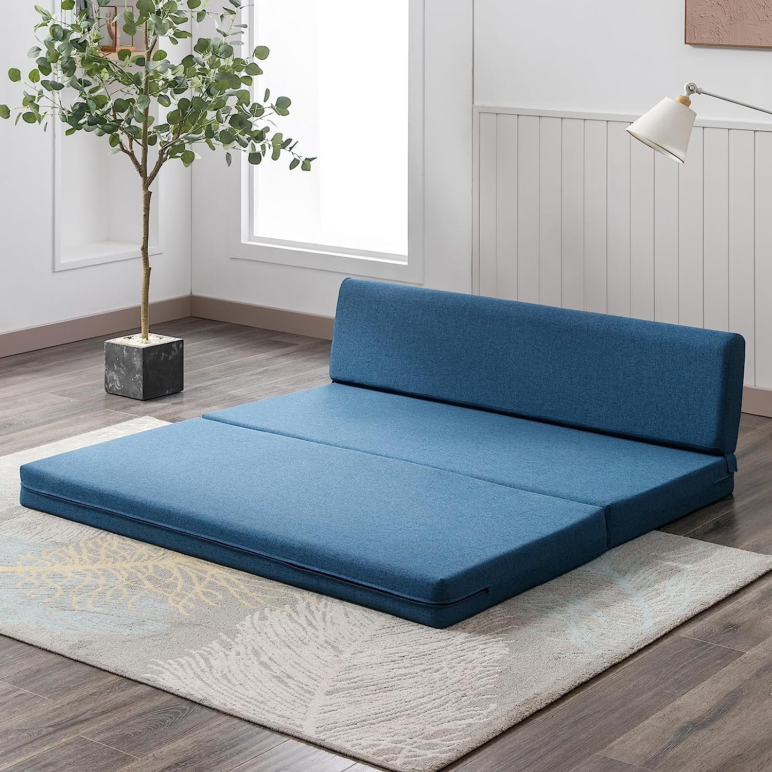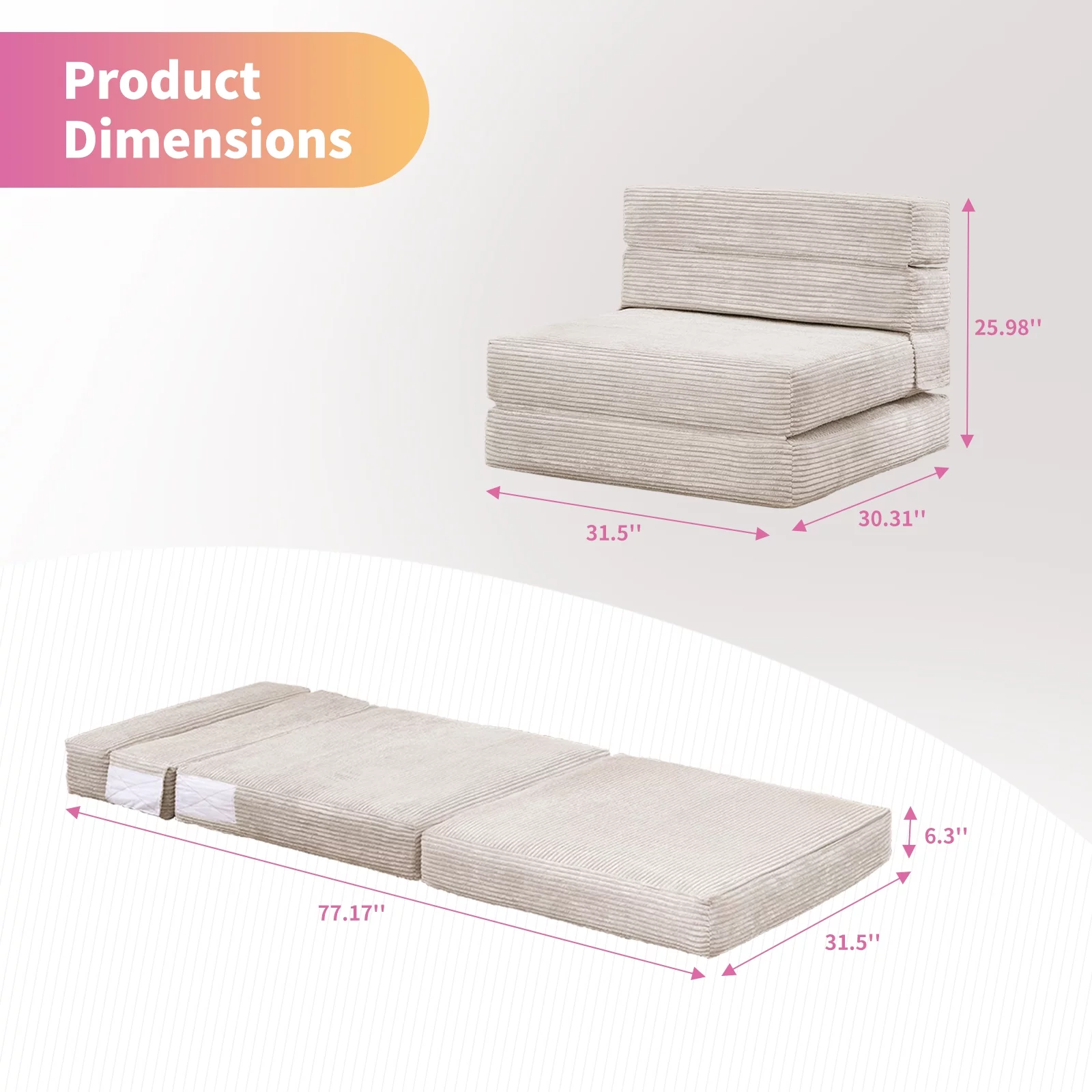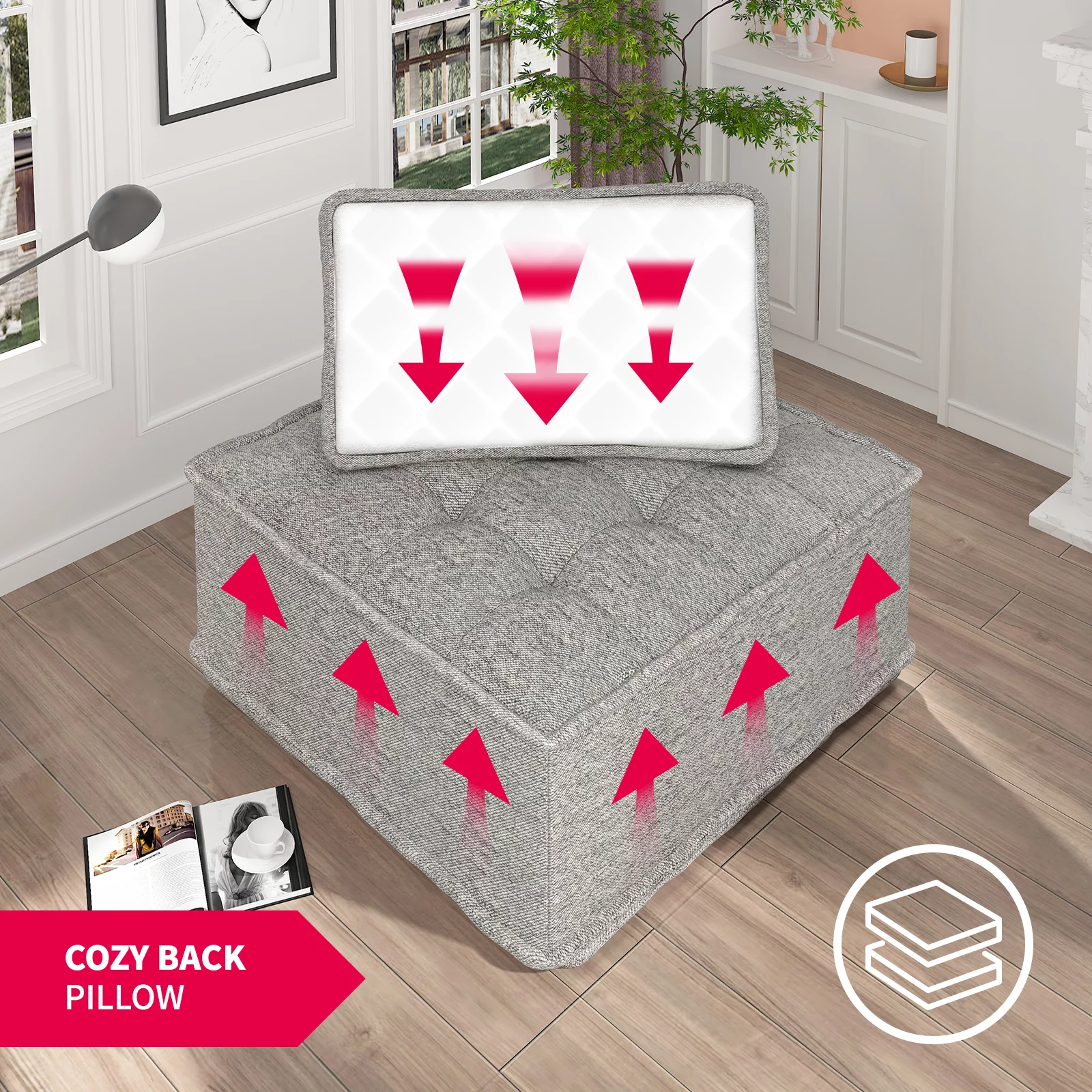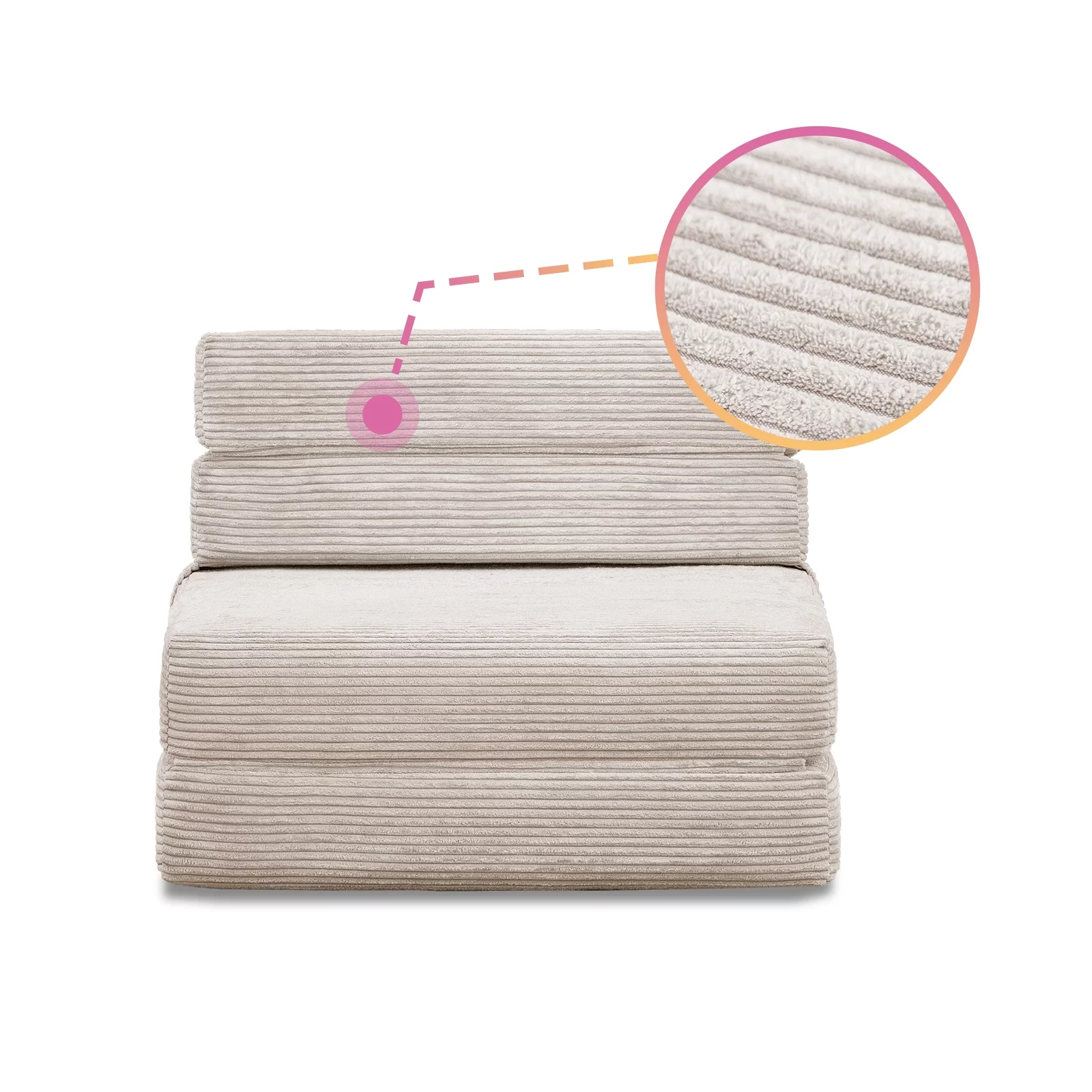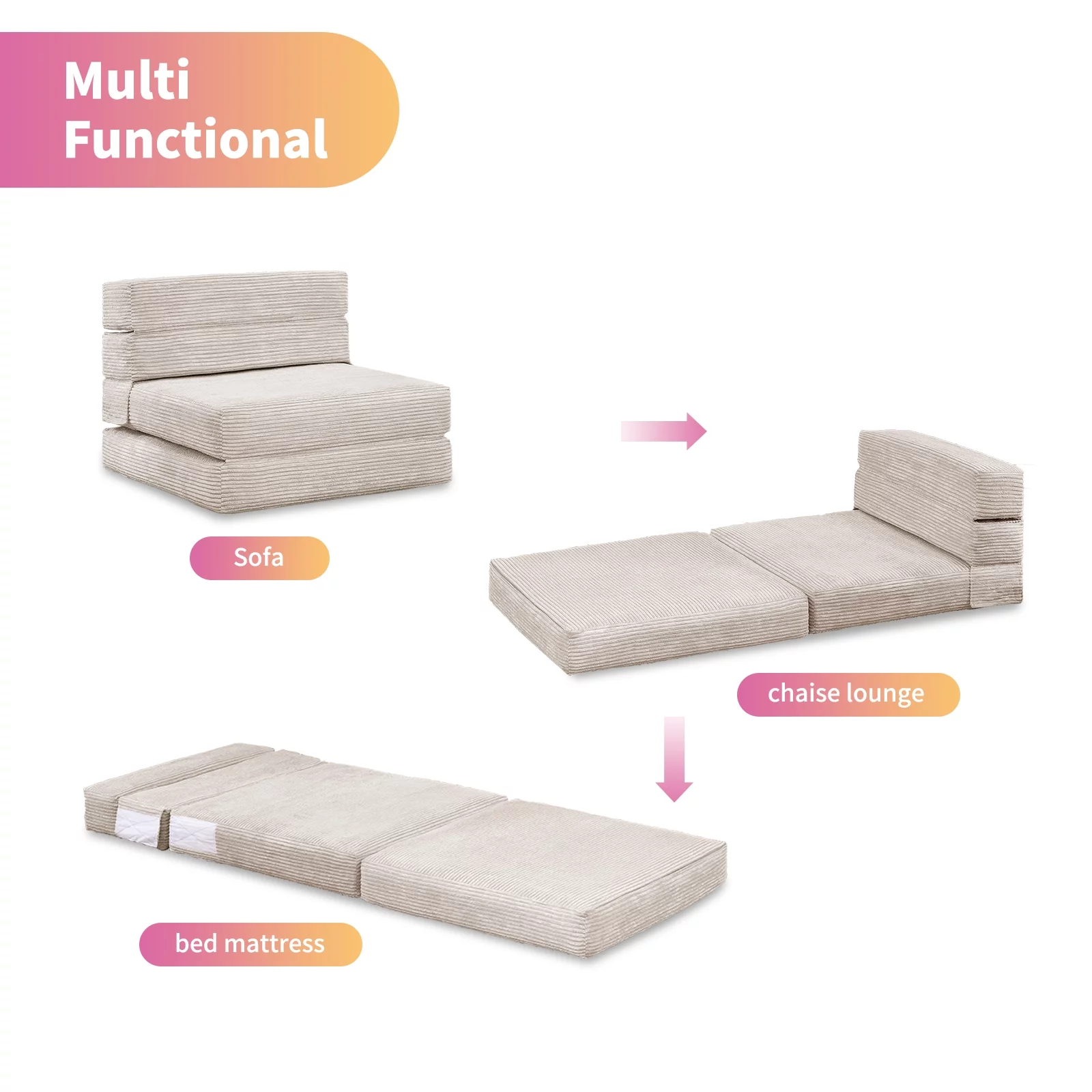 CECER Twin Size Folding Sofa Bed, Linen Floor Couch Bed with 10" Mattress, Fold Out Futon Sofa Bed,Light Grey