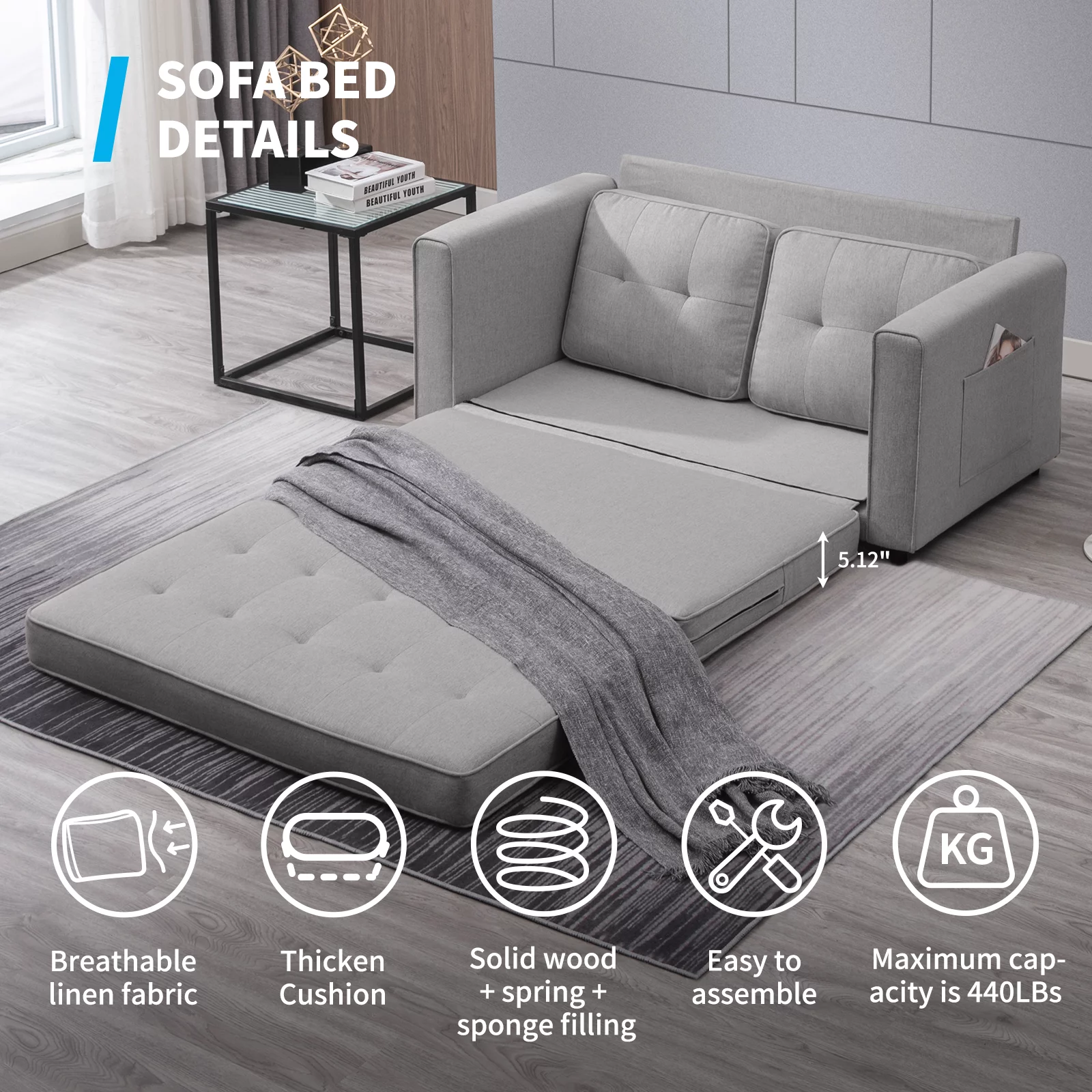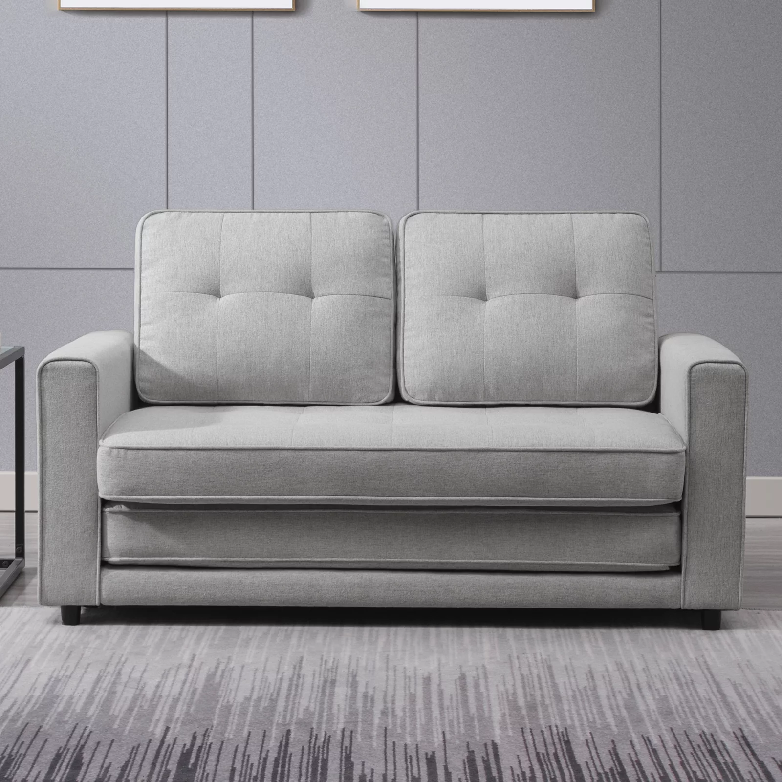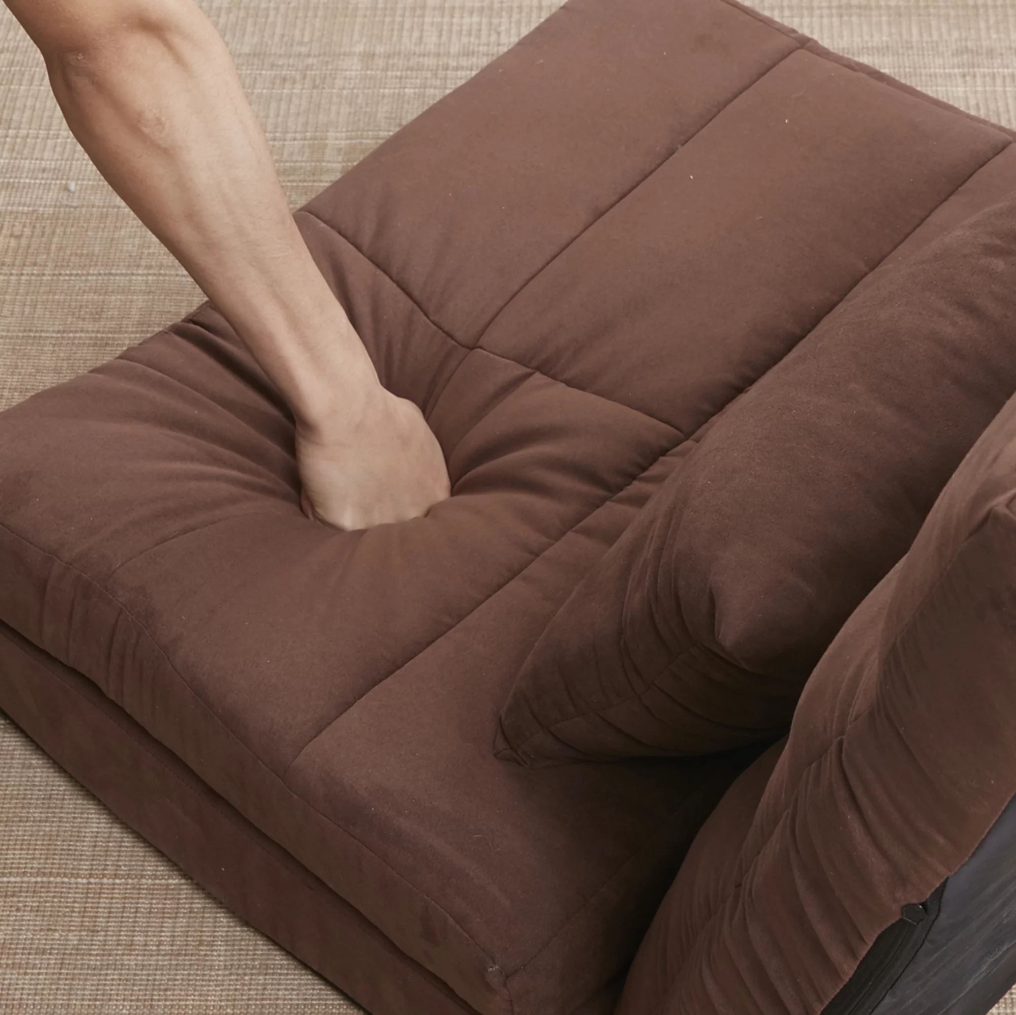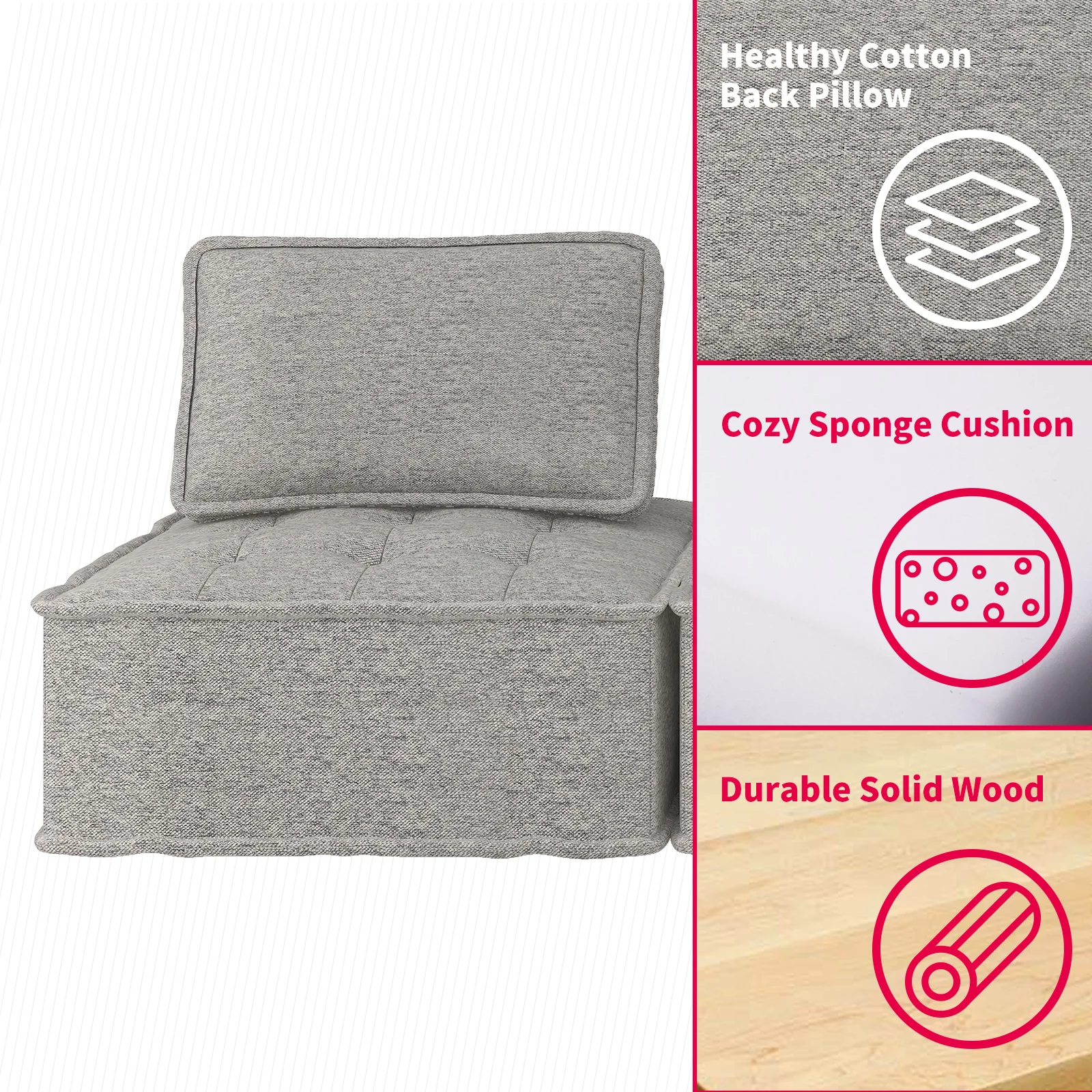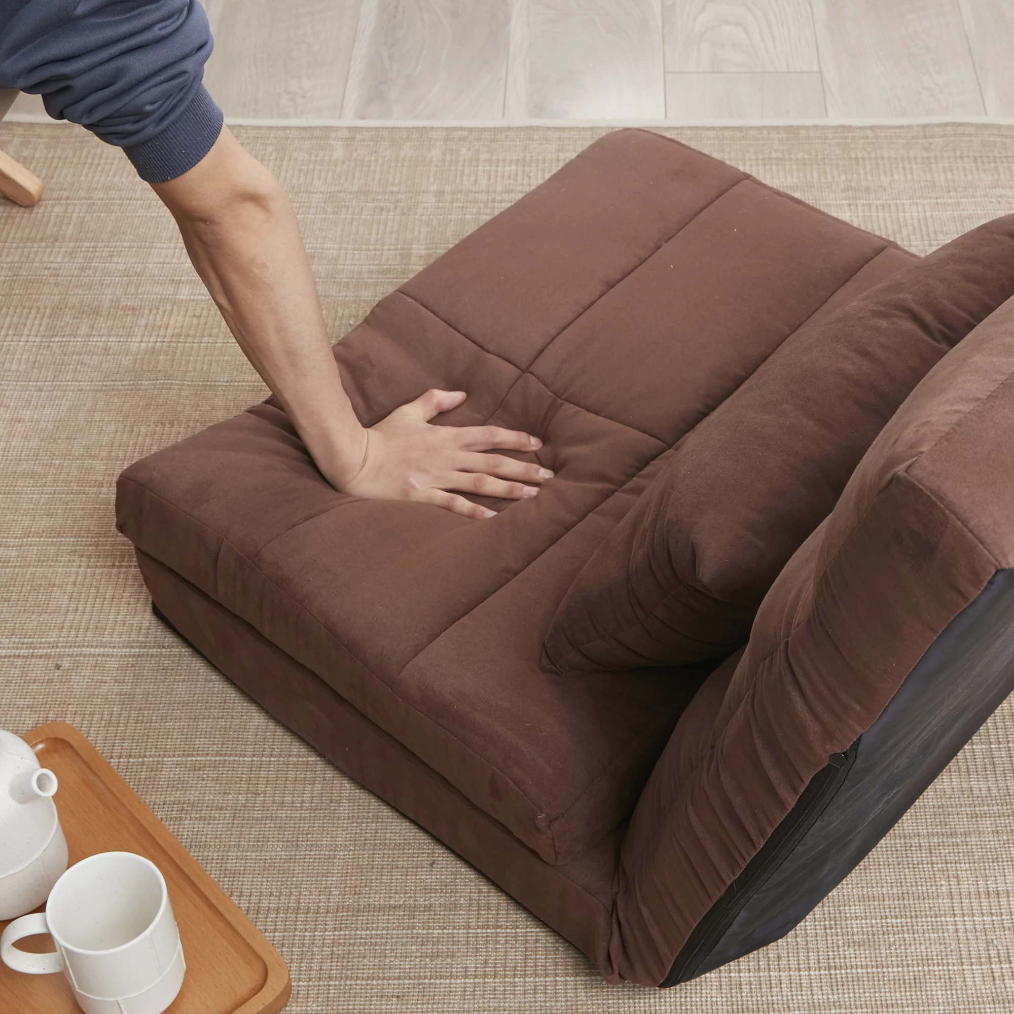 CECER Twin Size Folding Sofa Bed, Linen Floor Couch Bed with 10" Mattress, Fold Out Futon Sofa Bed,Light Grey